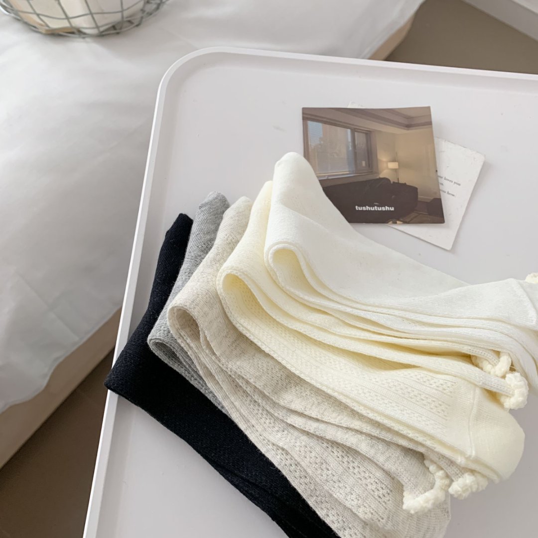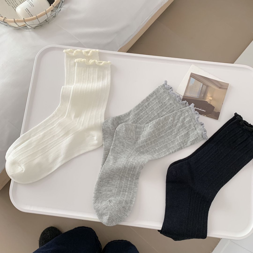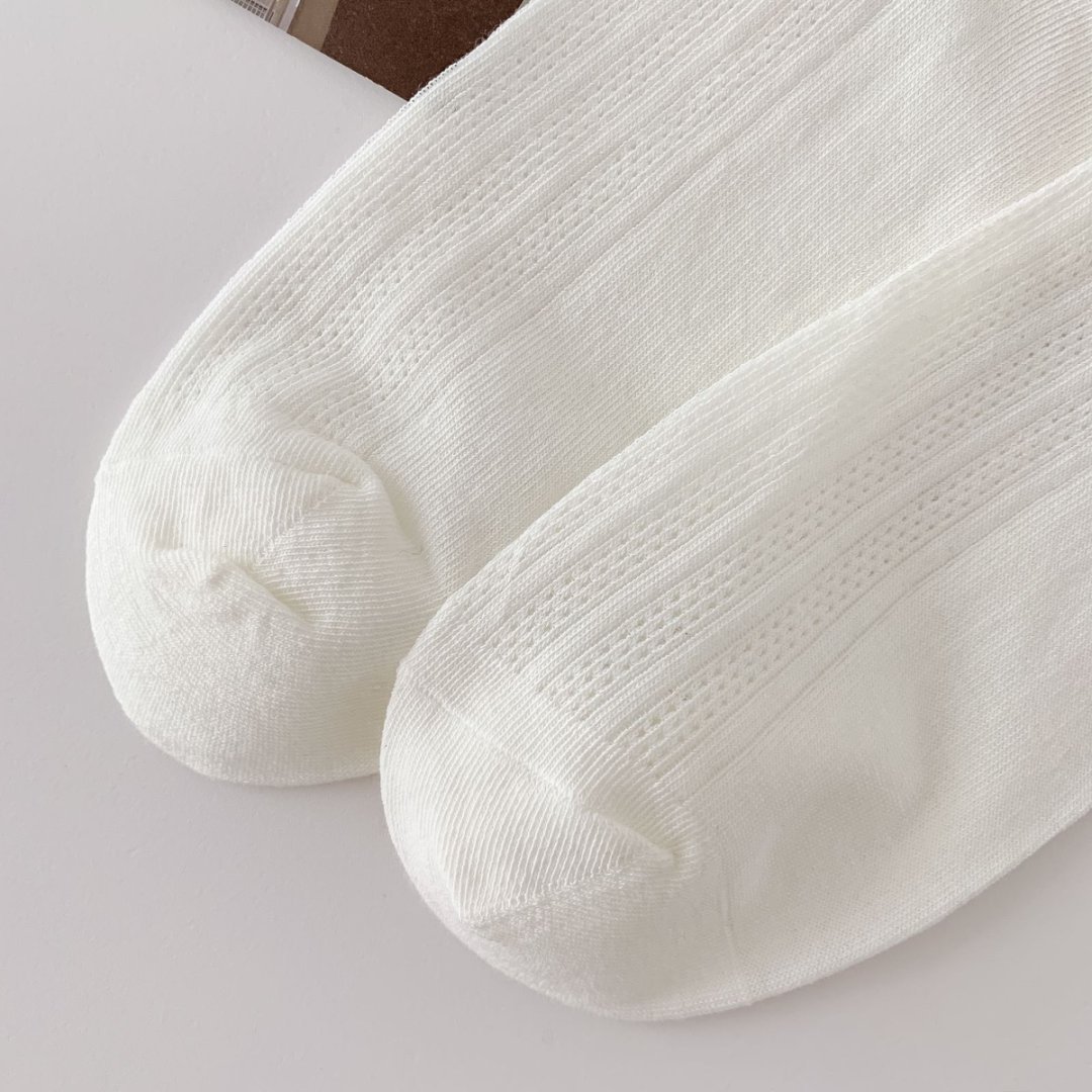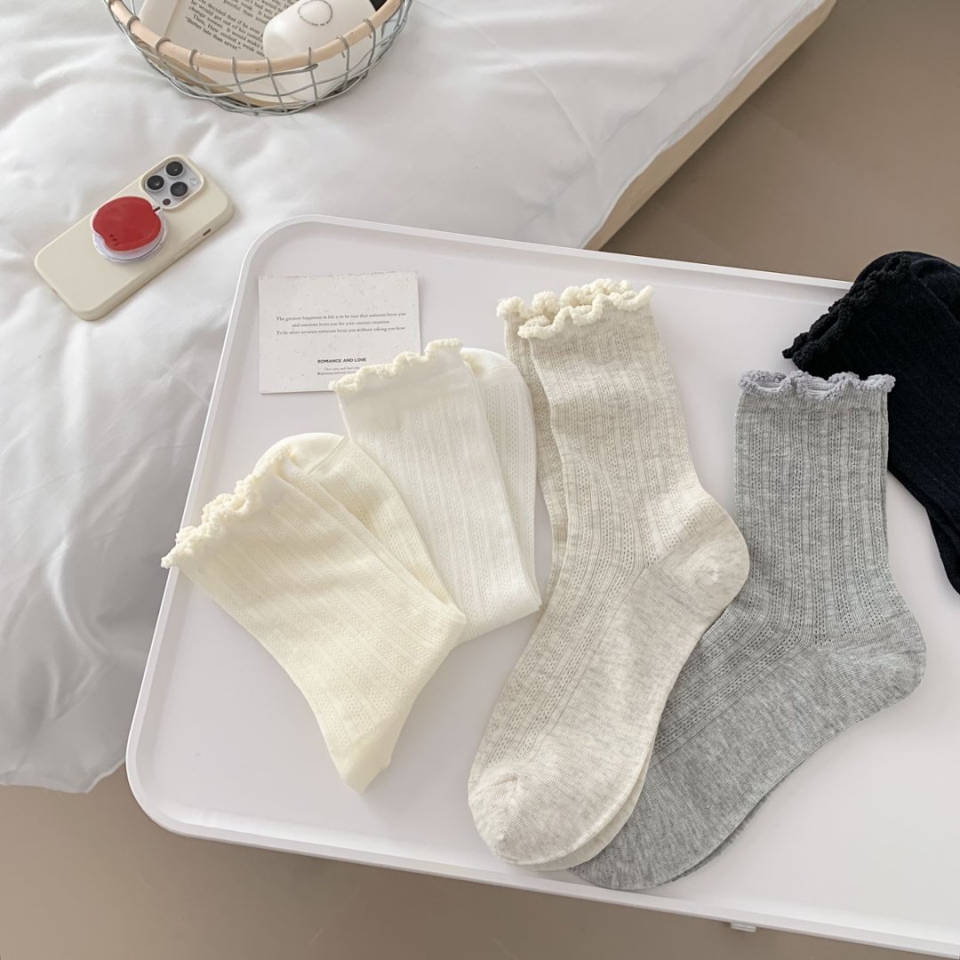【39元5双,下单拍5】袜子女春夏季薄款中筒袜纯色网眼透气防臭木耳边学院风堆堆袜ZXFX2026