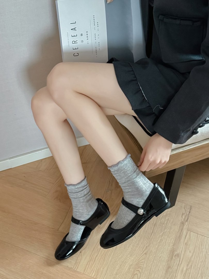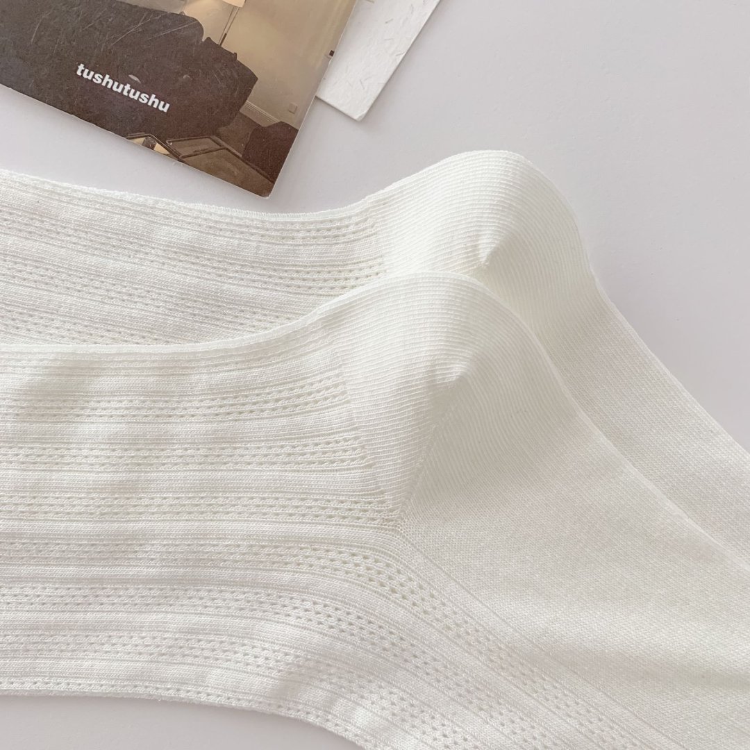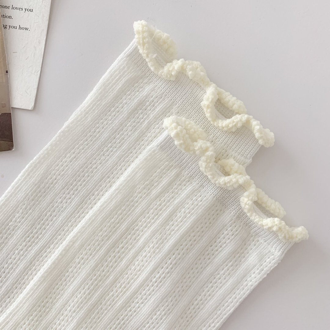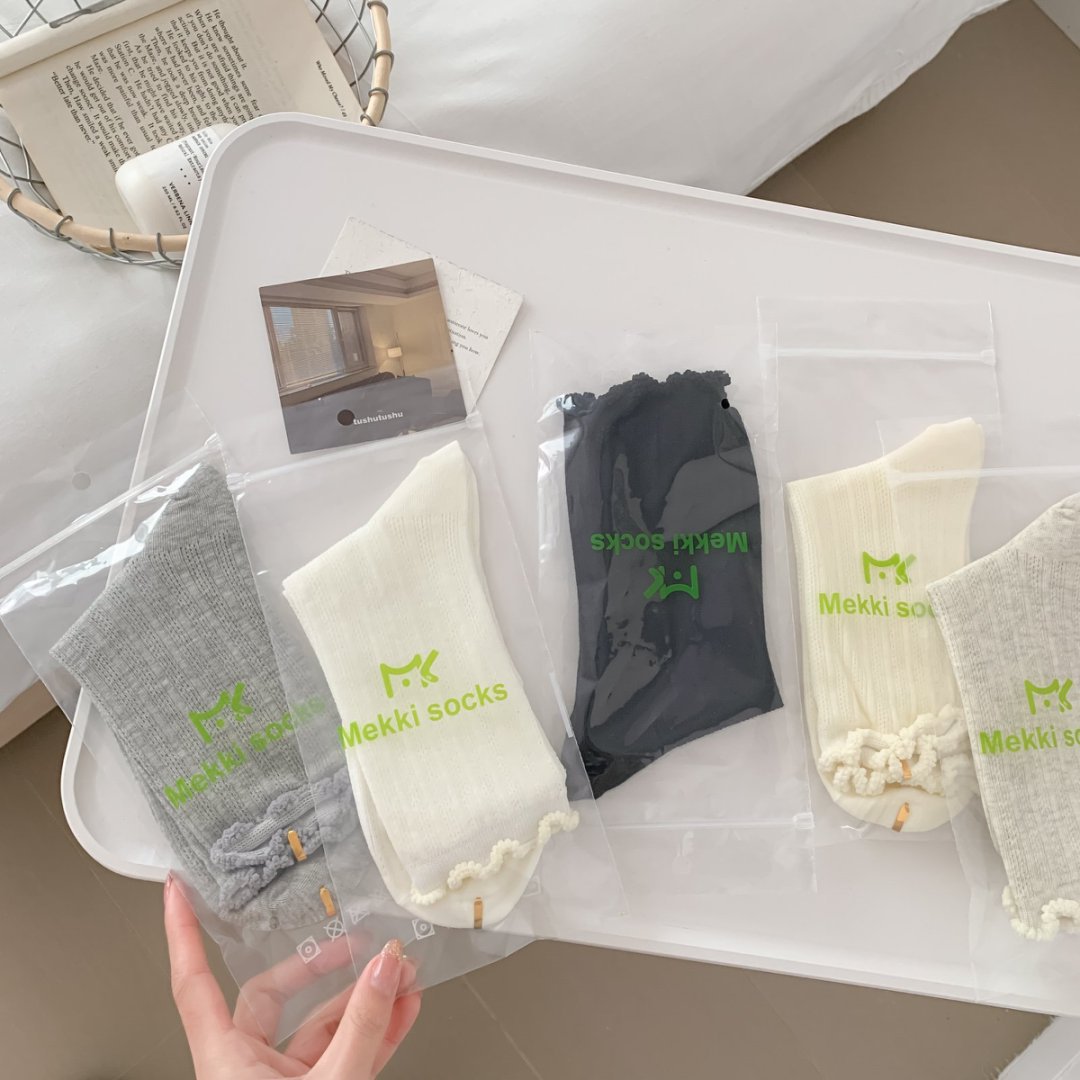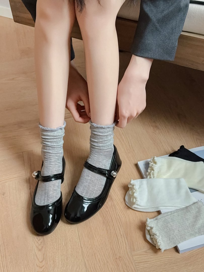 【39元5双,下单拍5】袜子女春夏季薄款中筒袜纯色网眼透气防臭木耳边学院风堆堆袜ZXFX2026