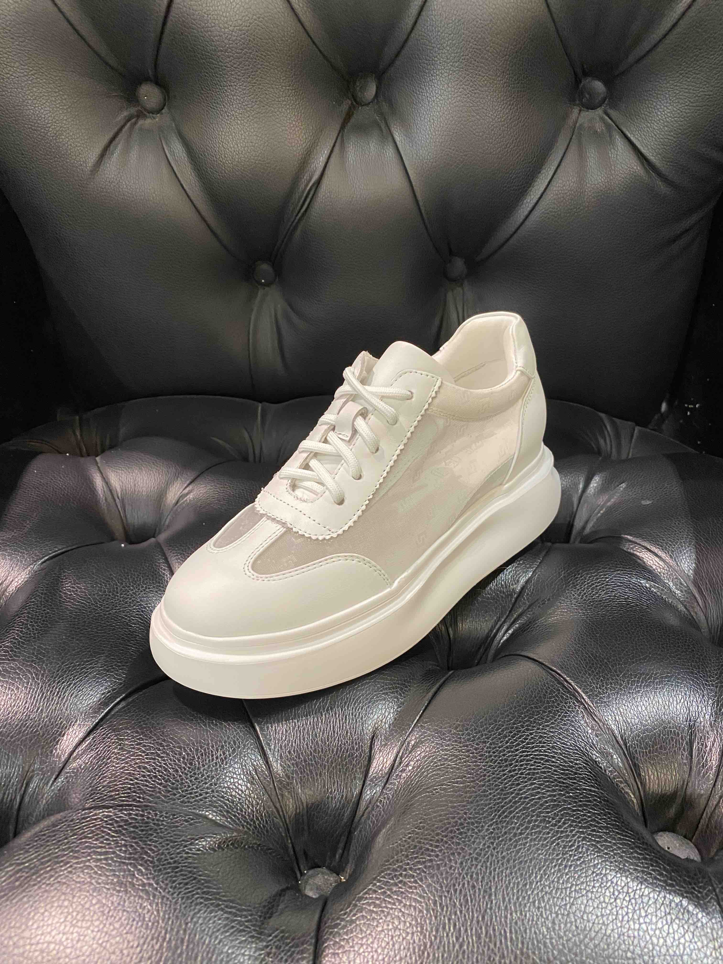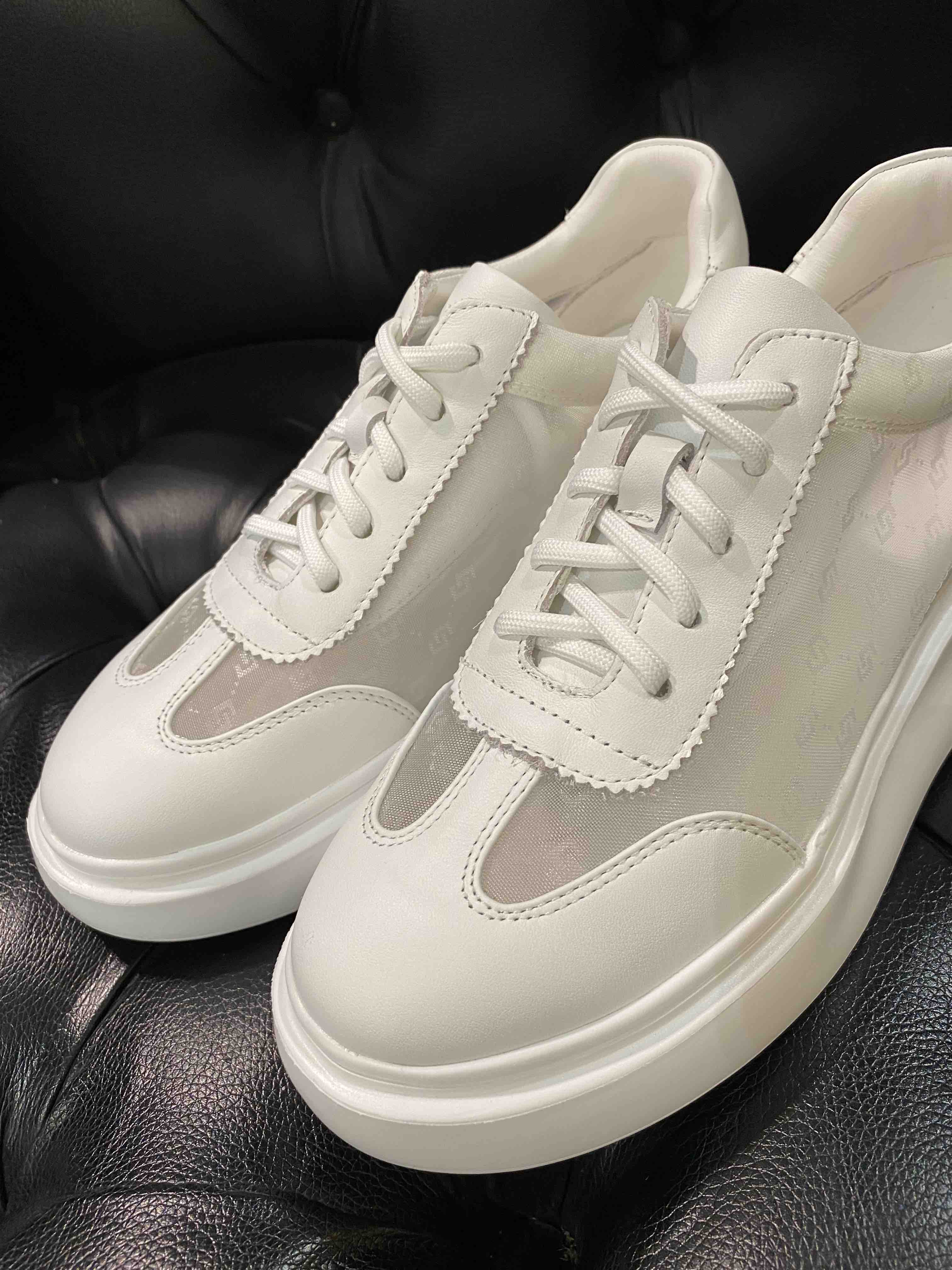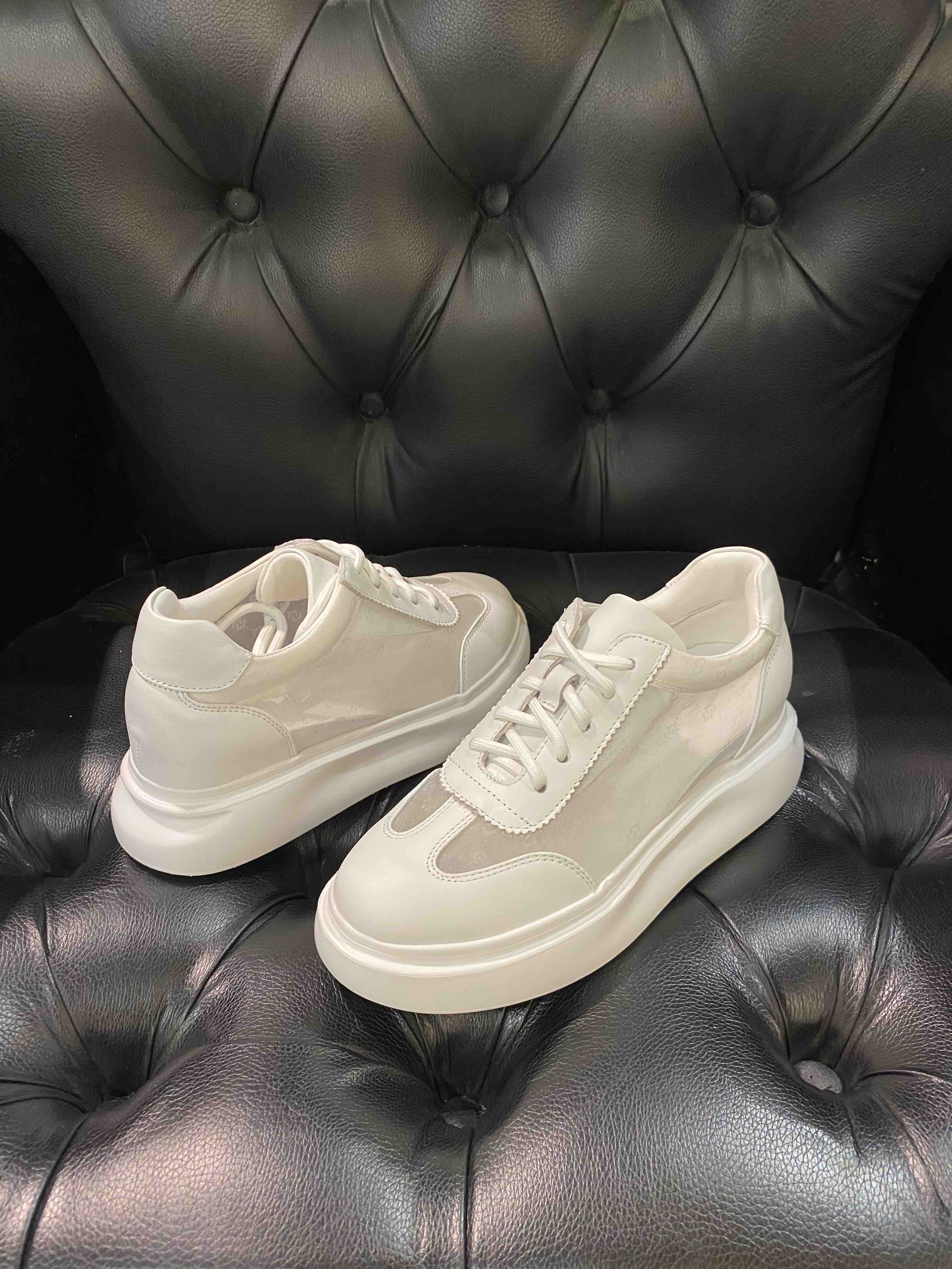 LFGJ 2279 牛皮搭网纱圆头简约镂空系带松糕底舒适时尚休闲鞋