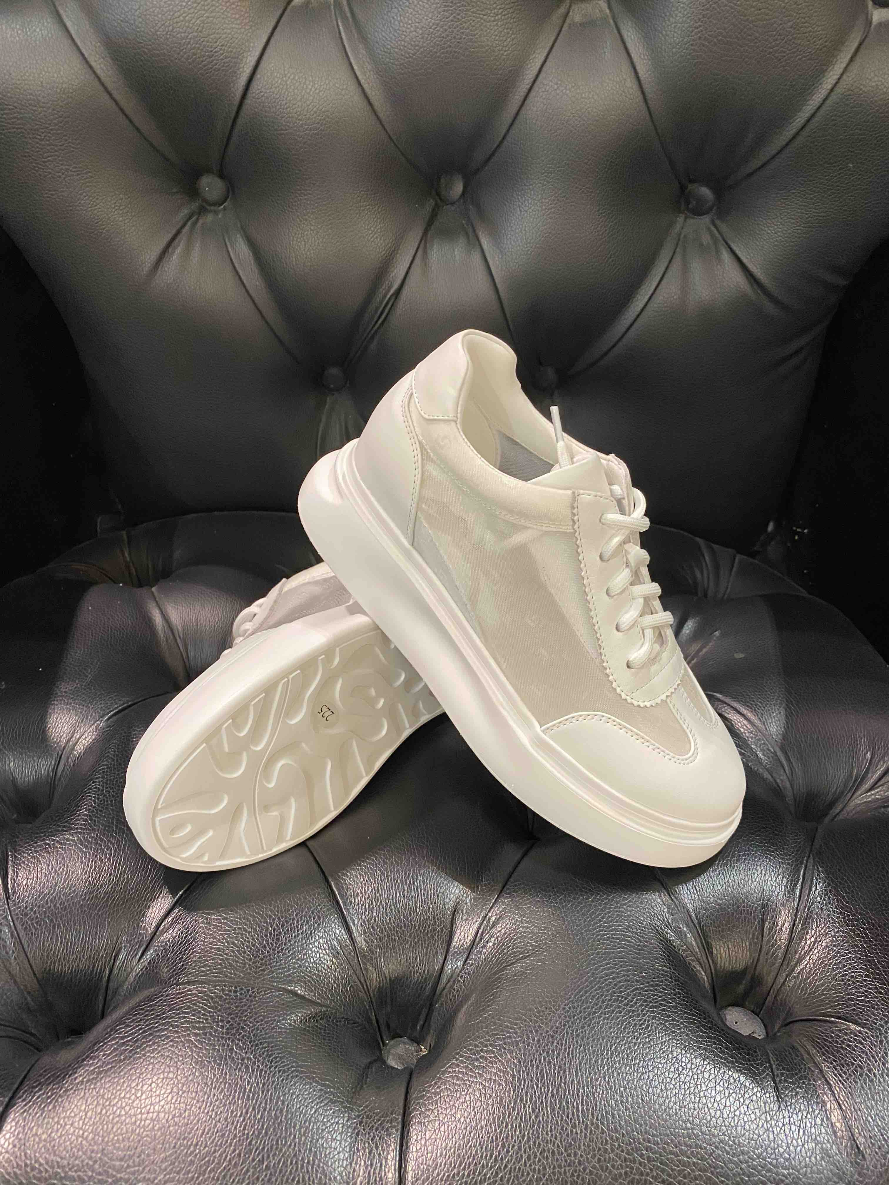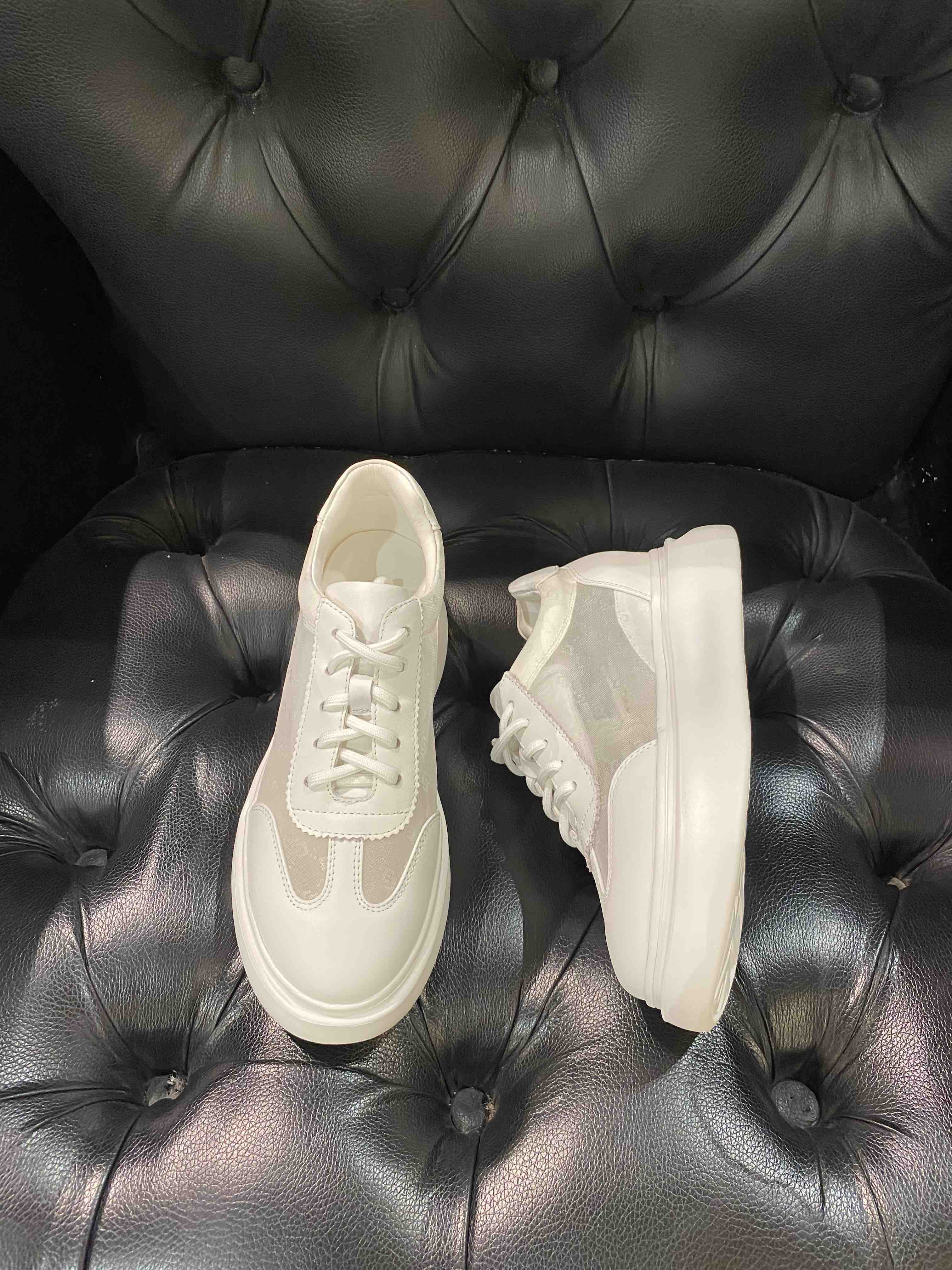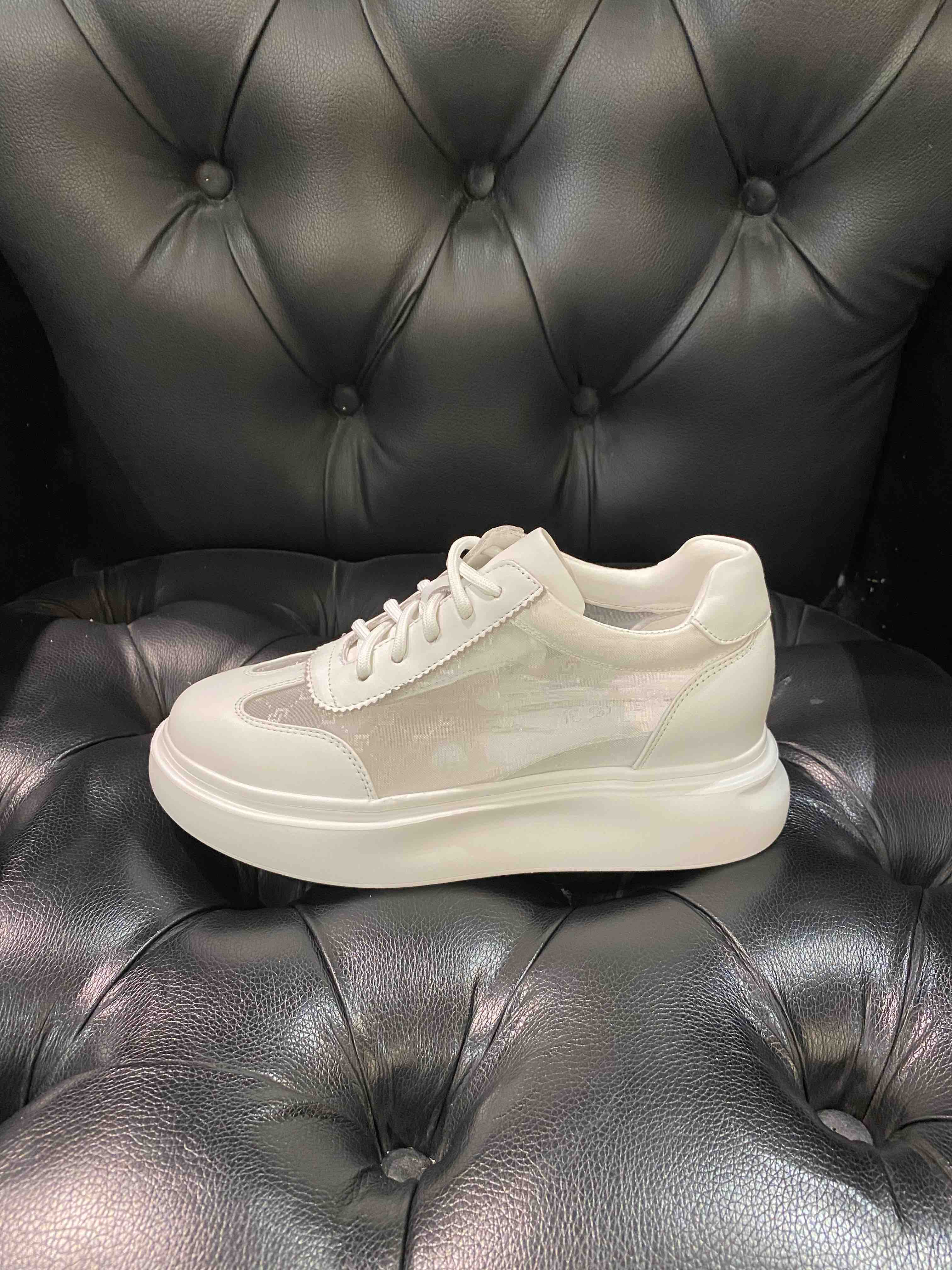 LFGJ 2279 牛皮搭网纱圆头简约镂空系带松糕底舒适时尚休闲鞋