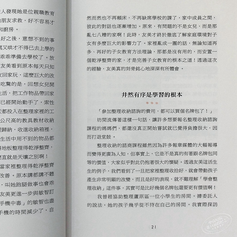 想要培養子女成為會念書的孩子嗎?那請先培養他們成為懂得整理收納的孩子吧!希望子女能成為受到同儕或是老師們歡迎的孩子嗎?那麼他得具備懂得利用整理收納的基本條件,才不會使自己造成別人困擾的人。整理能力並不是一個可有可無的能力,它是必要的能力之一,不僅僅是在家庭生活或是學校生活,即使隨著年紀的增長,整理能力在社會生活及婚後的生活,都是必備的重要核心能力之一。