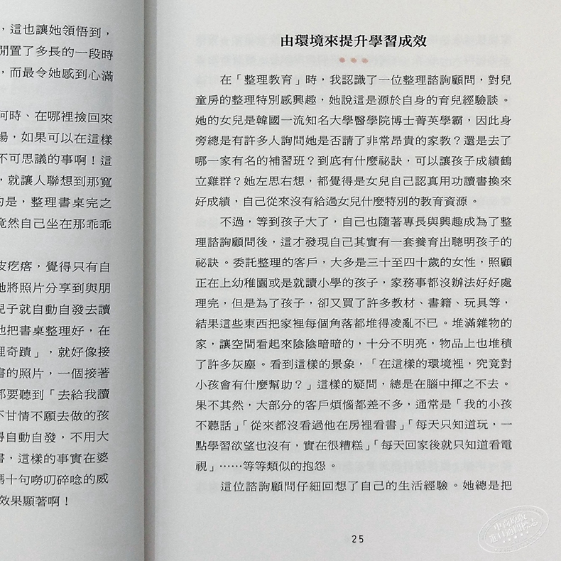 本書從整理收納的基本理論與概念循序漸進,告訴父母如何養成小孩整理的習慣、養成整理的習慣之後小孩的學業方面會有什麼變化,再搭配實際案例說明如何活用觀念;清楚的步驟,協助孩子和父母透過遊戲的方式,不僅能學習到系統化的整理收納方法,也讓整理從此變成孩子的習慣,進而提高孩子的學習能力及生活競爭力。