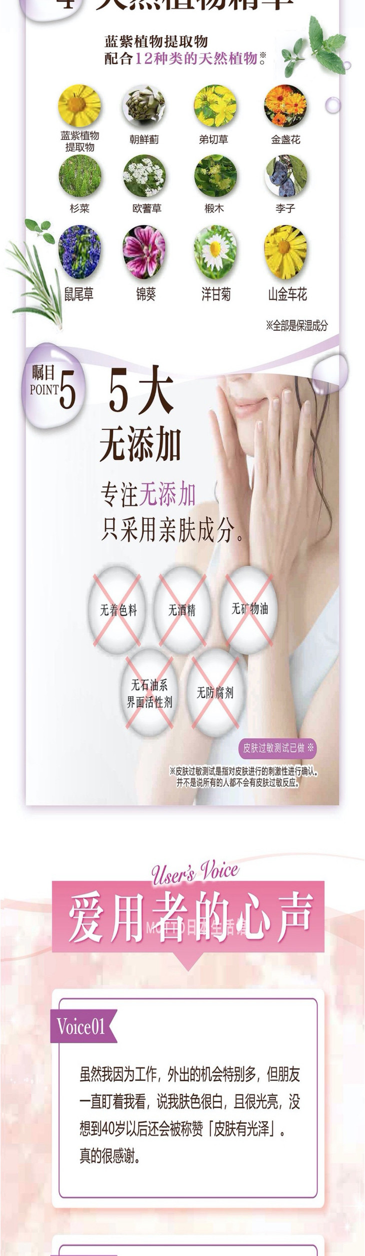 它的颜色是淡淡的紫色,质地就像是我们的水凝膜一样是透明的果冻状,它是以紫根萃取物为主要成分,还包含透明质酸,胎盘素,多种植物萃取精华以及骨原胶。促进新细胞再生,对于肌肤的干燥暗沉细纹,有一定的作用,秋冬用,再合适不过了。