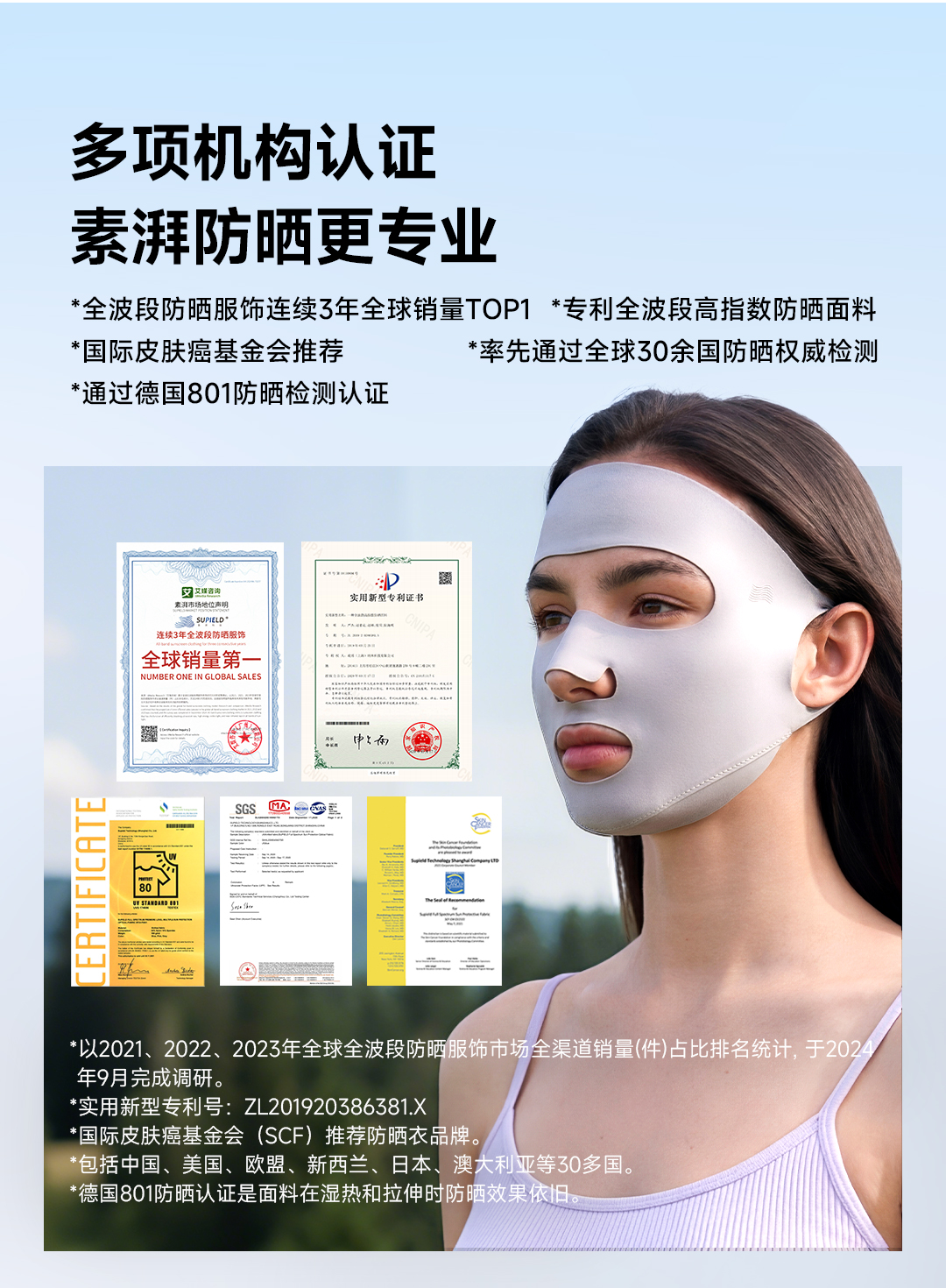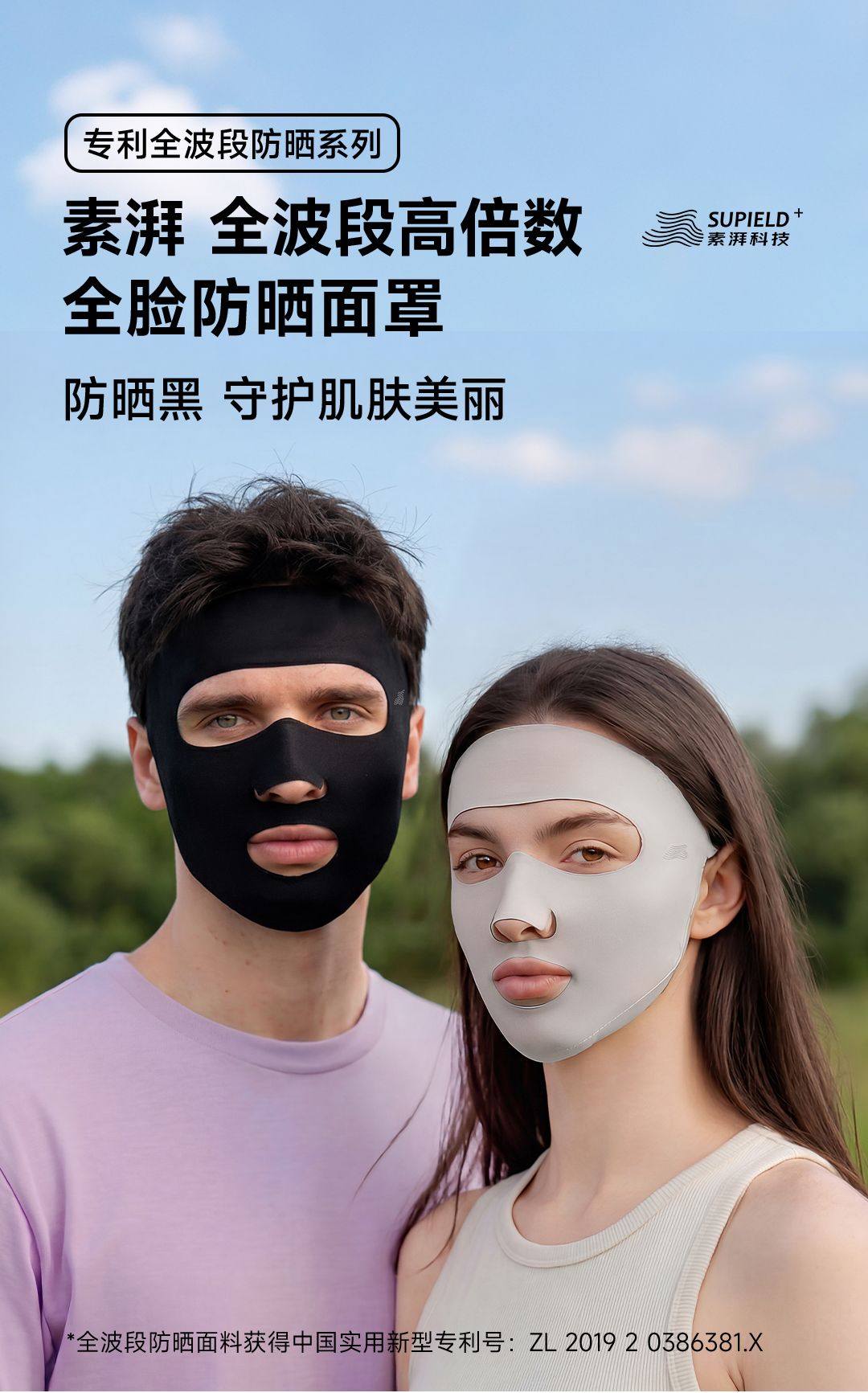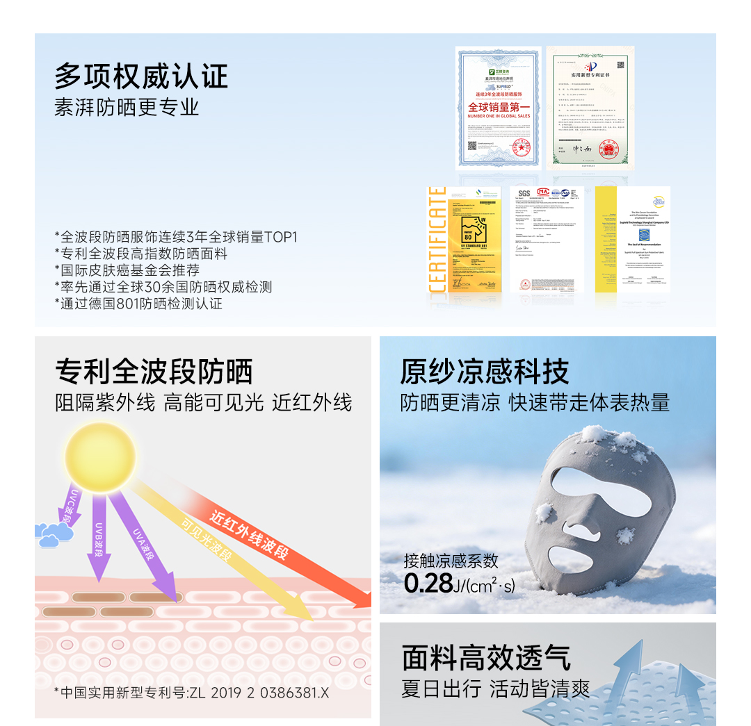 素湃Supield面膜防晒口罩全波段防紫外线立体遮阳脸基尼凉感面罩