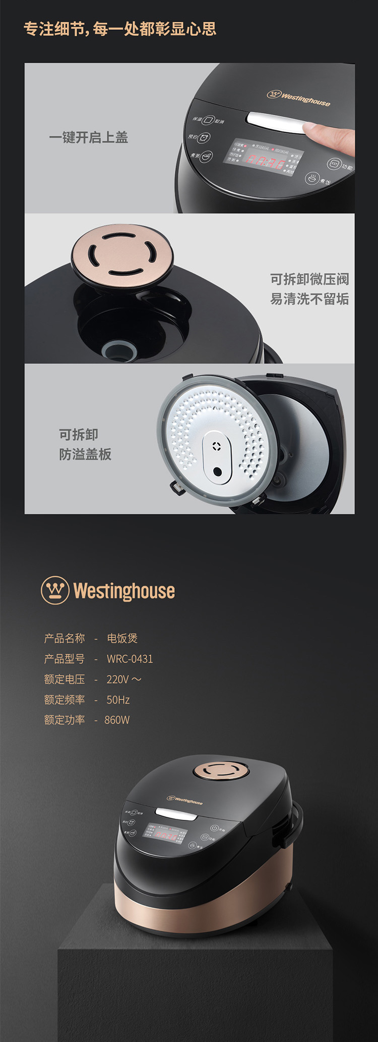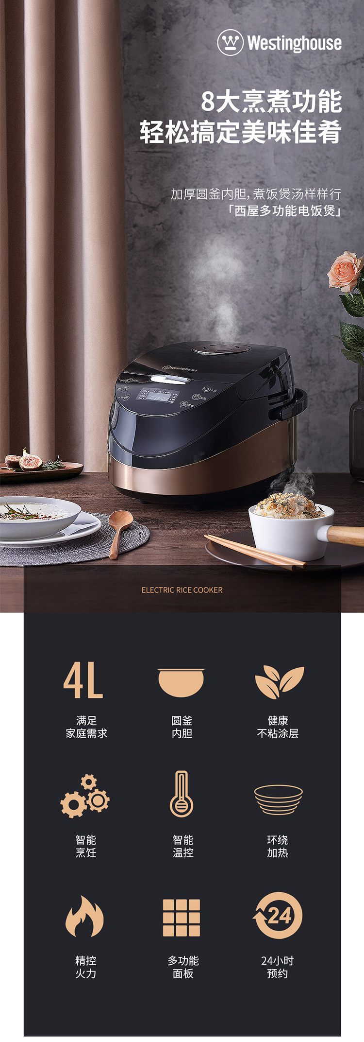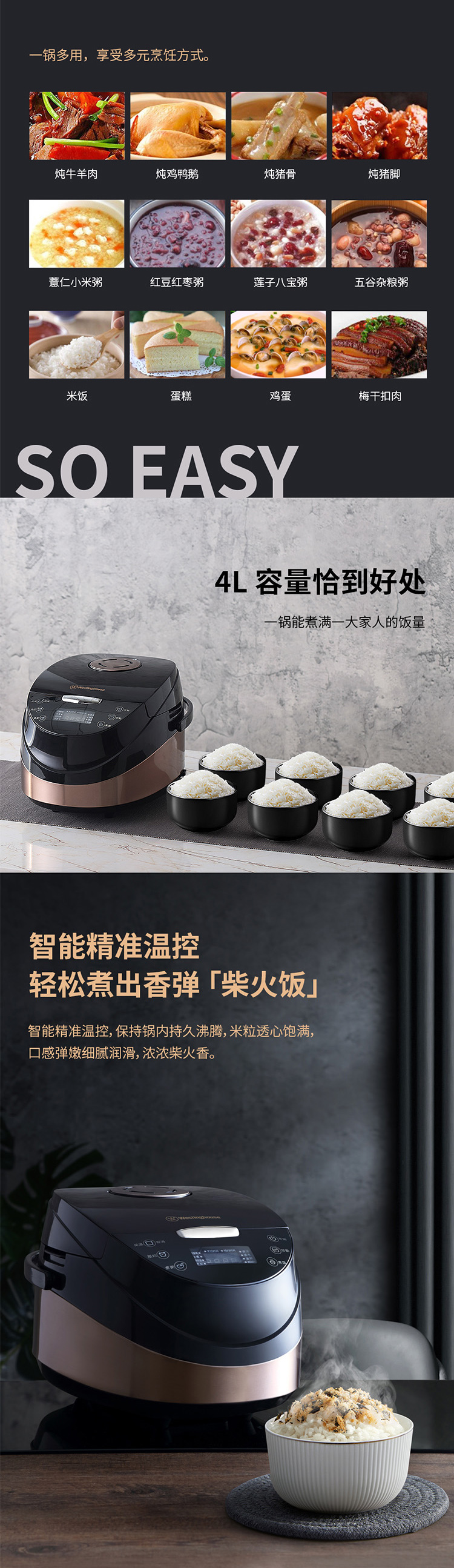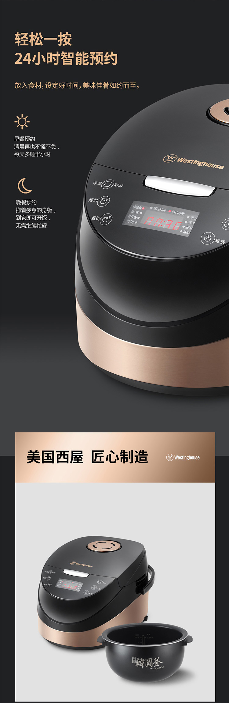 西屋Westinghouse电饭煲电饭锅4L智能预约圆灶釜内胆家用多功能电饭煲