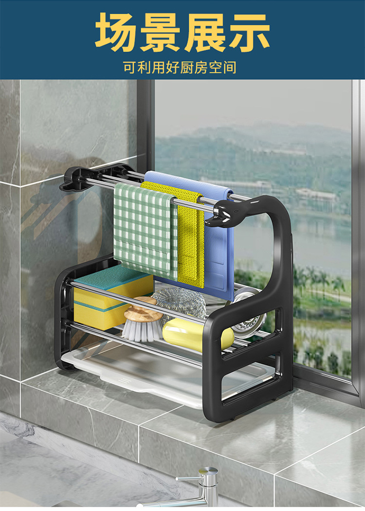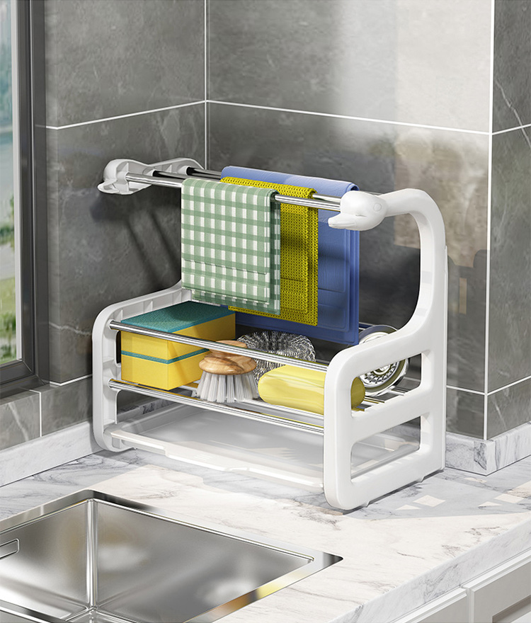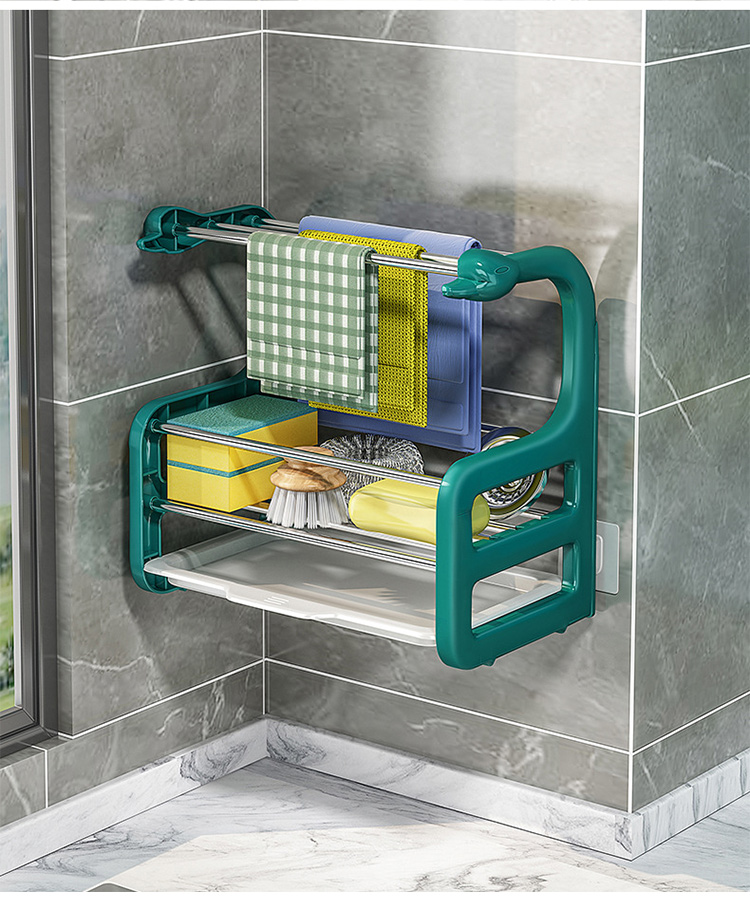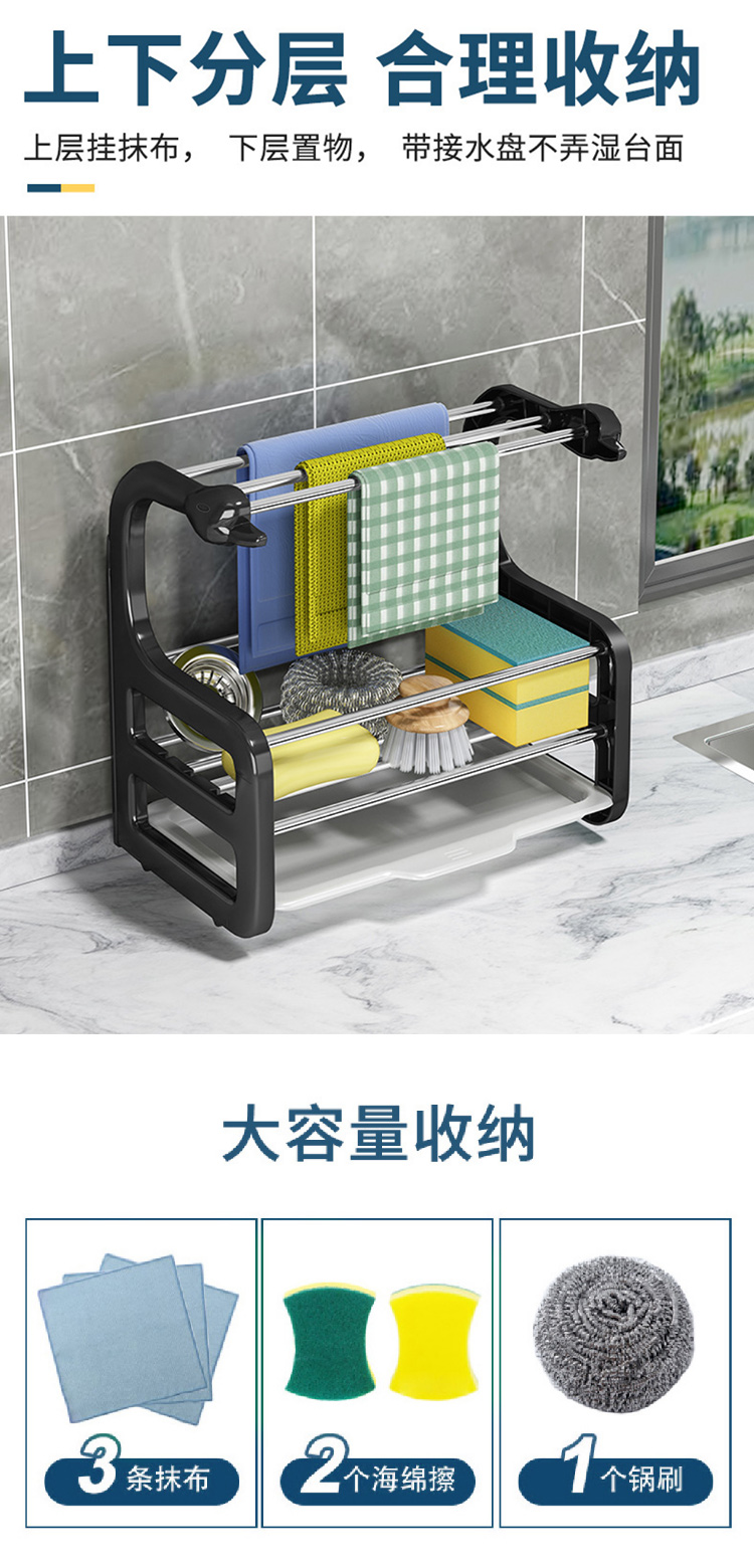厨房沥水抹布架壁挂免打孔台面置物架晾放海绵洗碗布挂架储物收纳