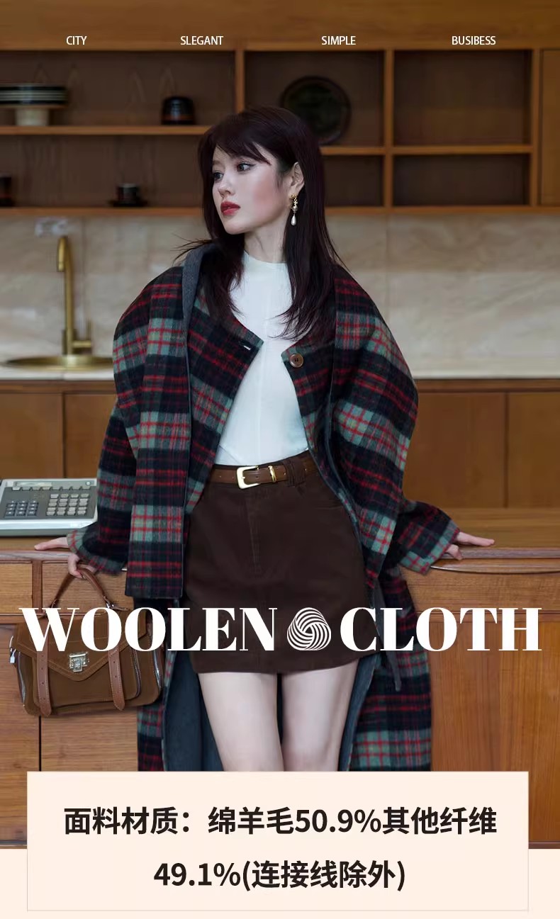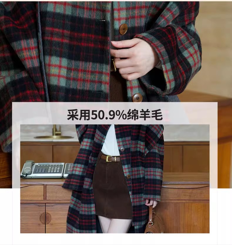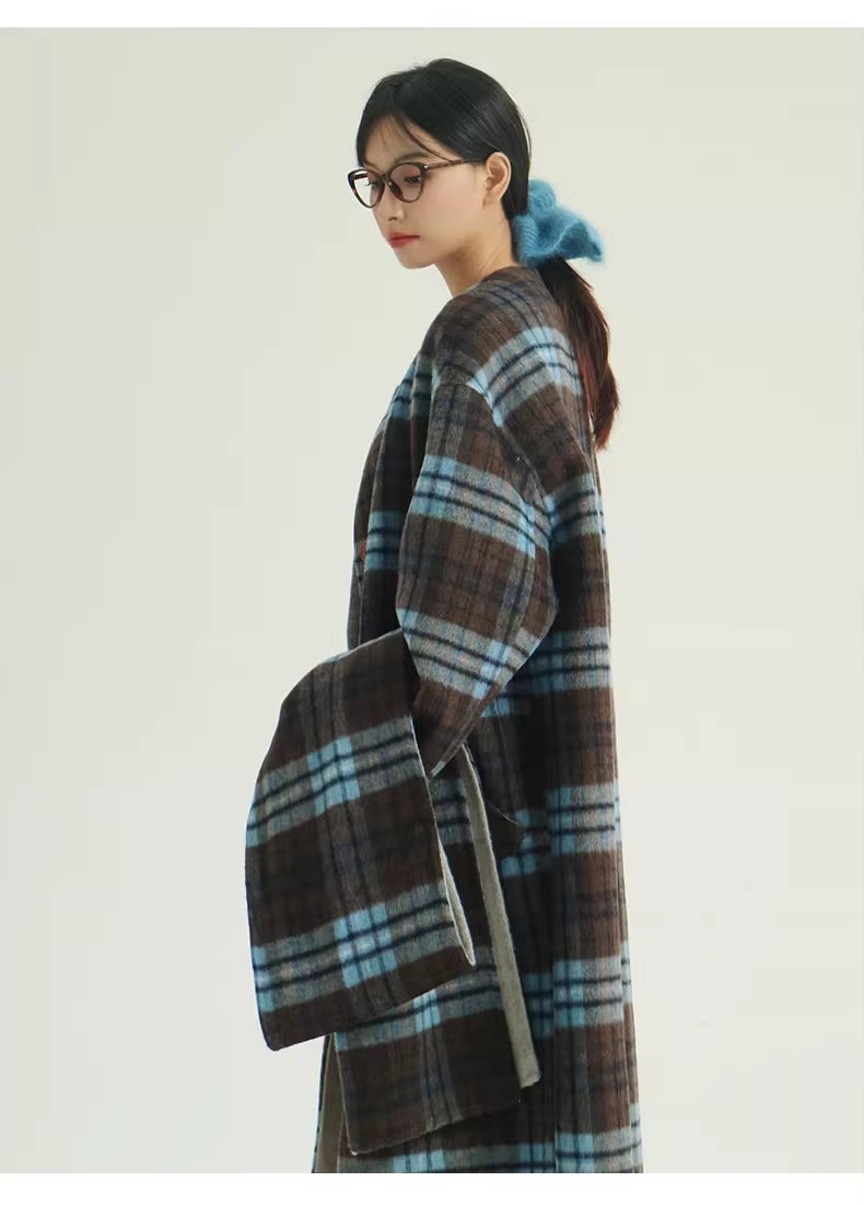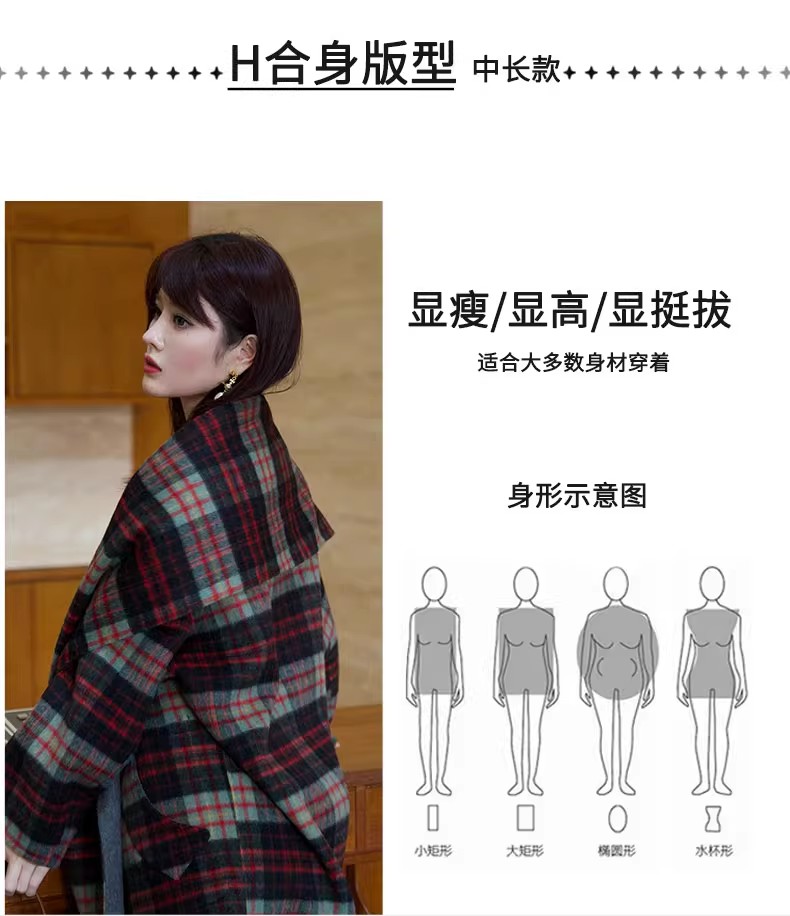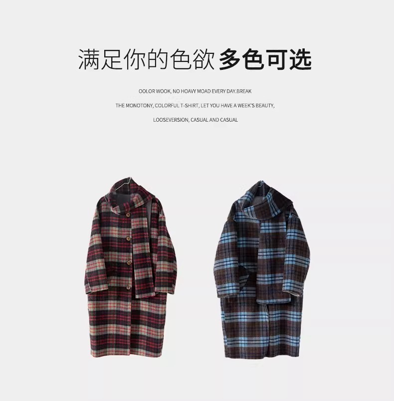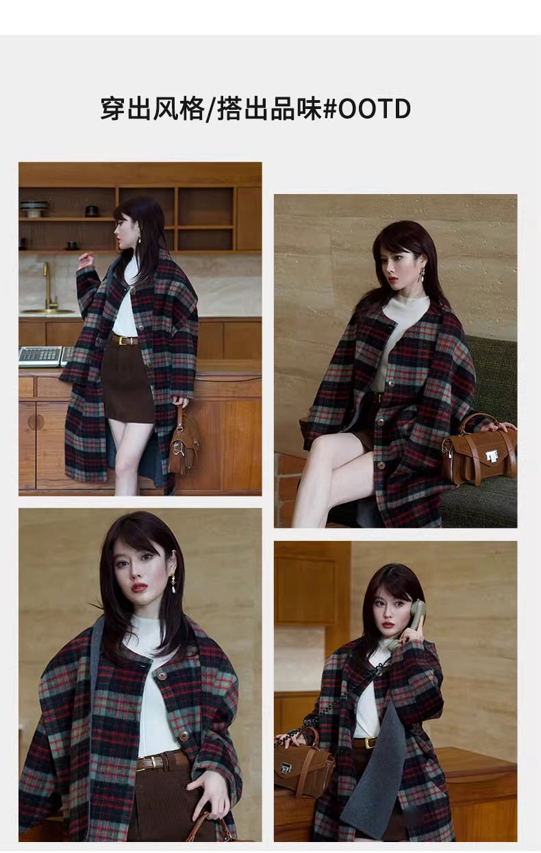 【门店同款】ENJOY冬季柔韧与共格纹复兴围巾大衣 159495172