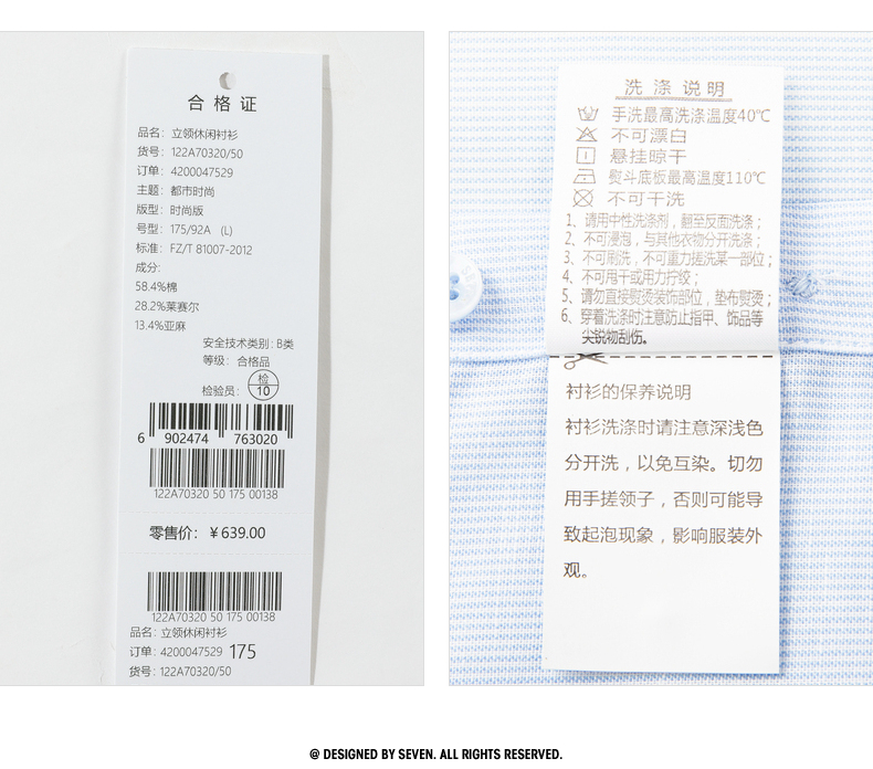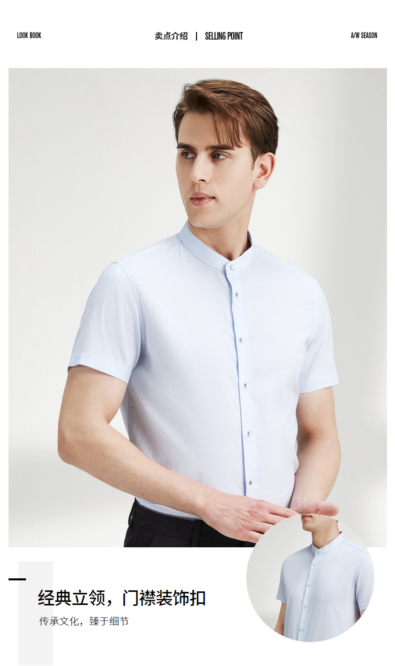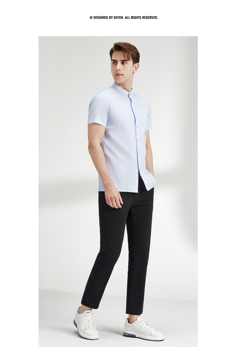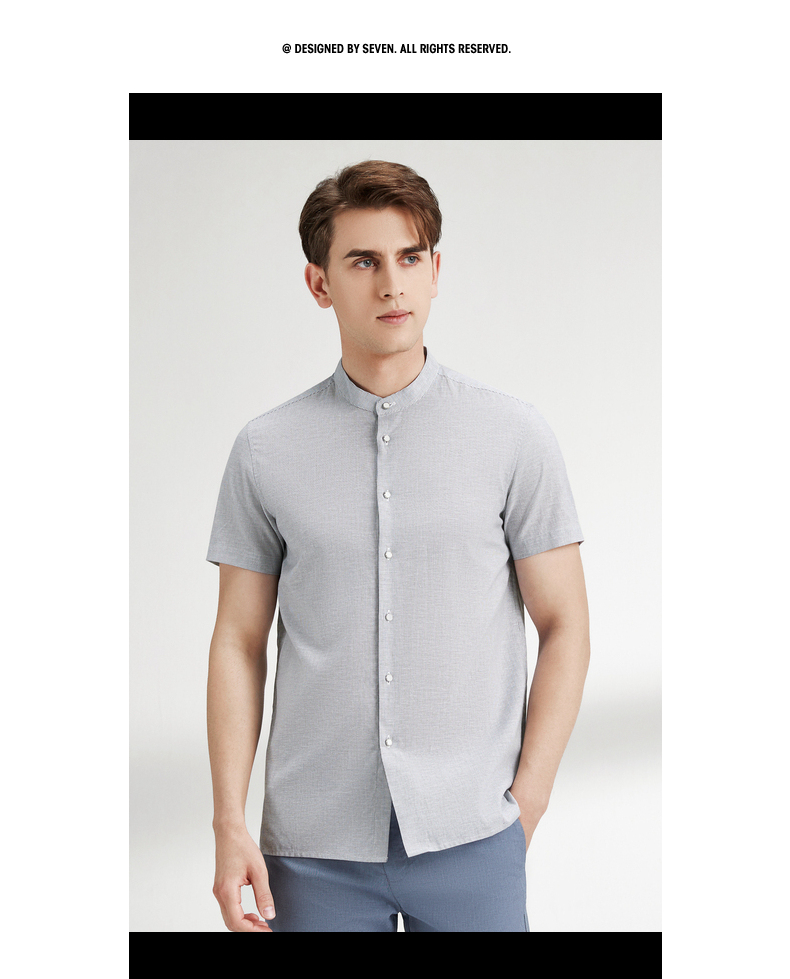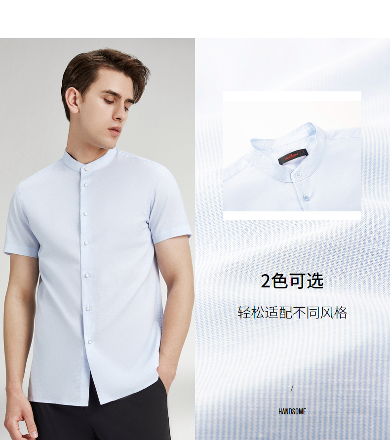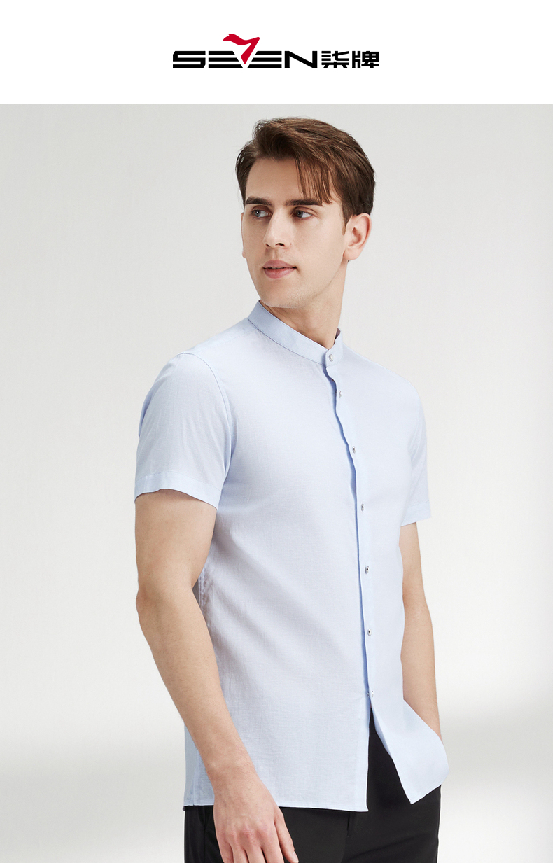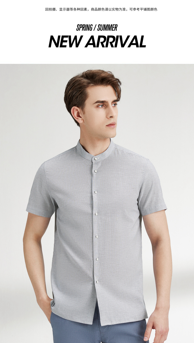 【特价】【含麻】柒牌男士短袖衬衫经典条纹夏季新款男生通勤上装立领衬衣 122A70320