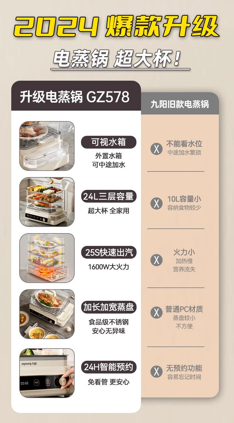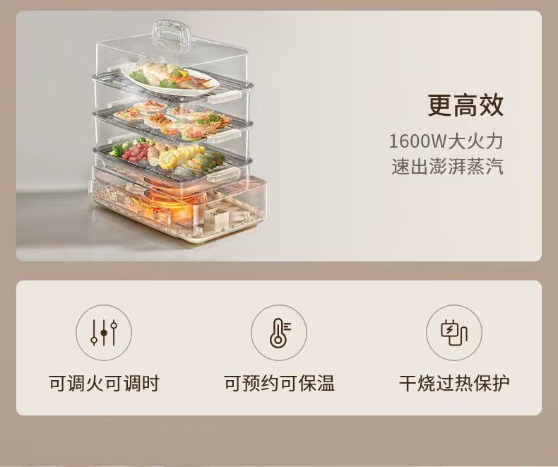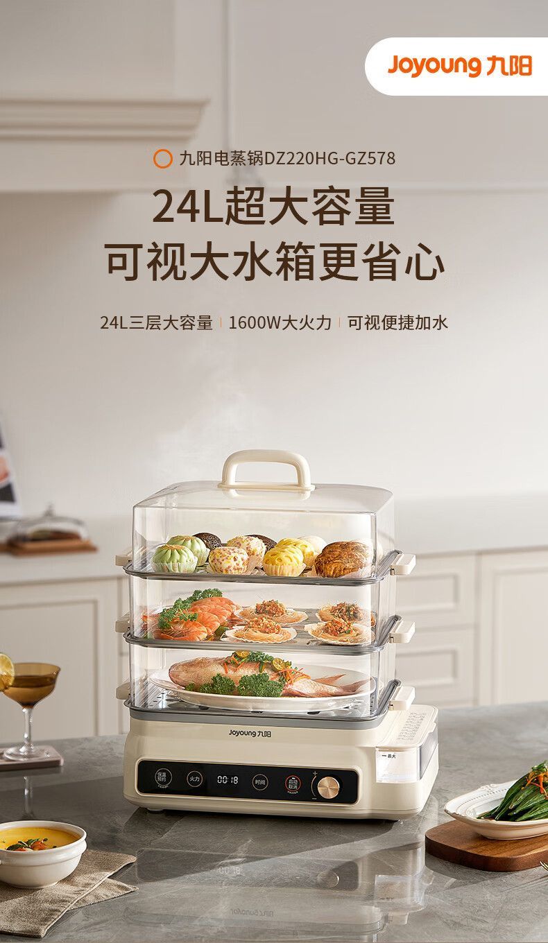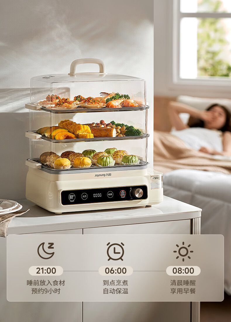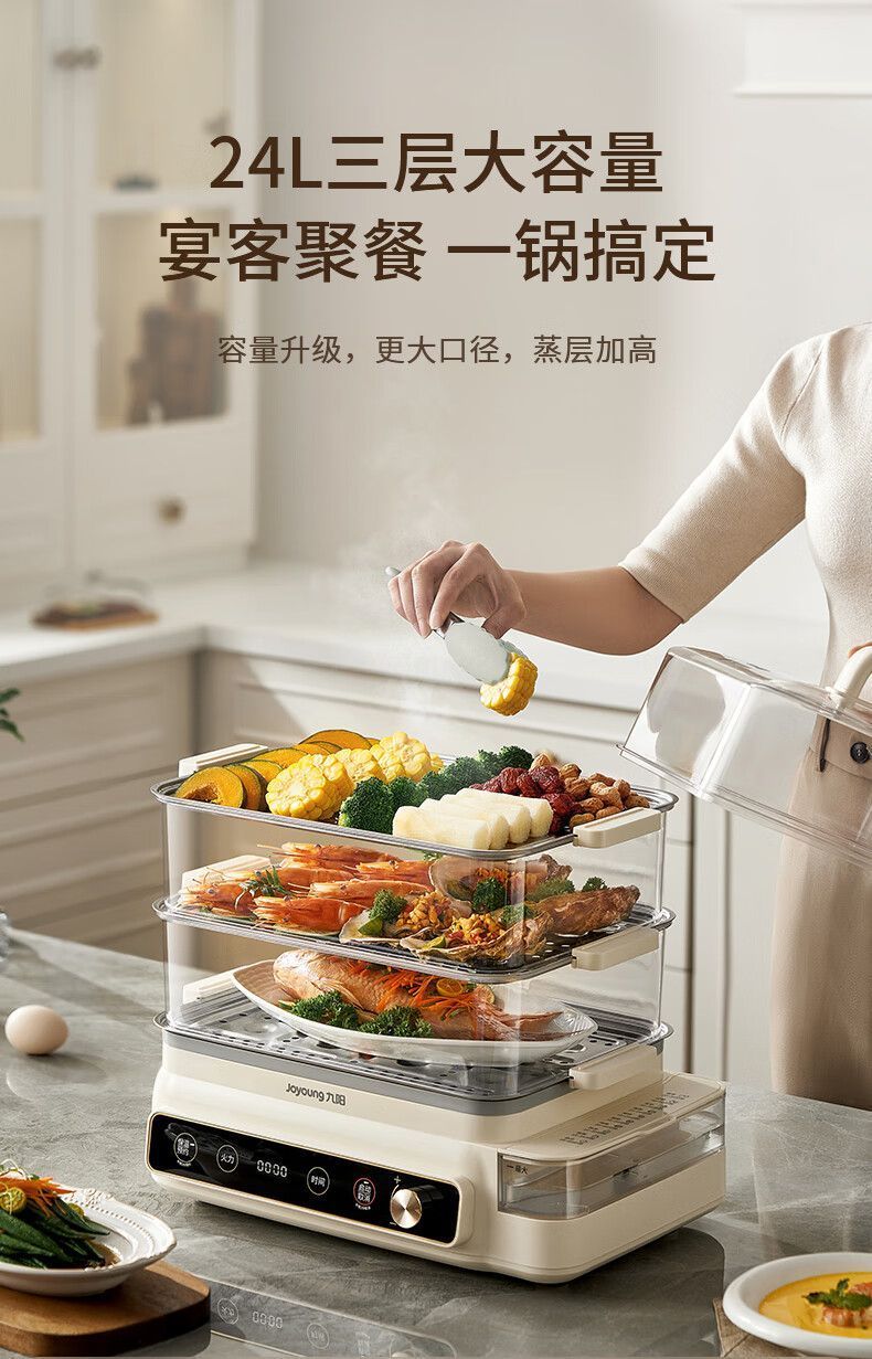 九阳电蒸锅可预约定时多功能家用三层定时蒸箱大容量蒸菜包子海鲜