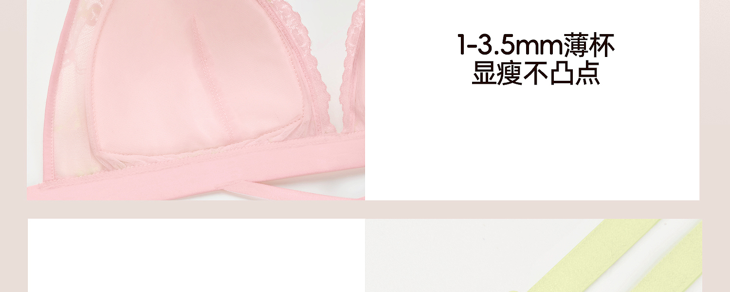 好奇蜜斯法式内衣女三角杯纯欲大胸显小胸无钢圈文胸罩套装蕾丝薄 韦尔