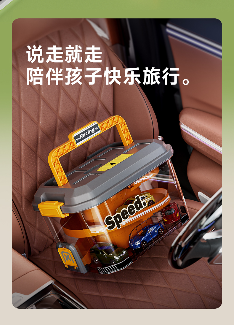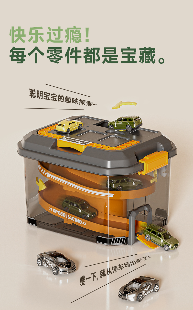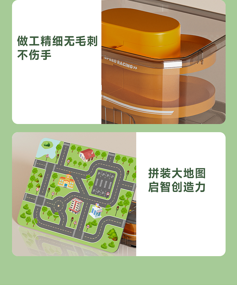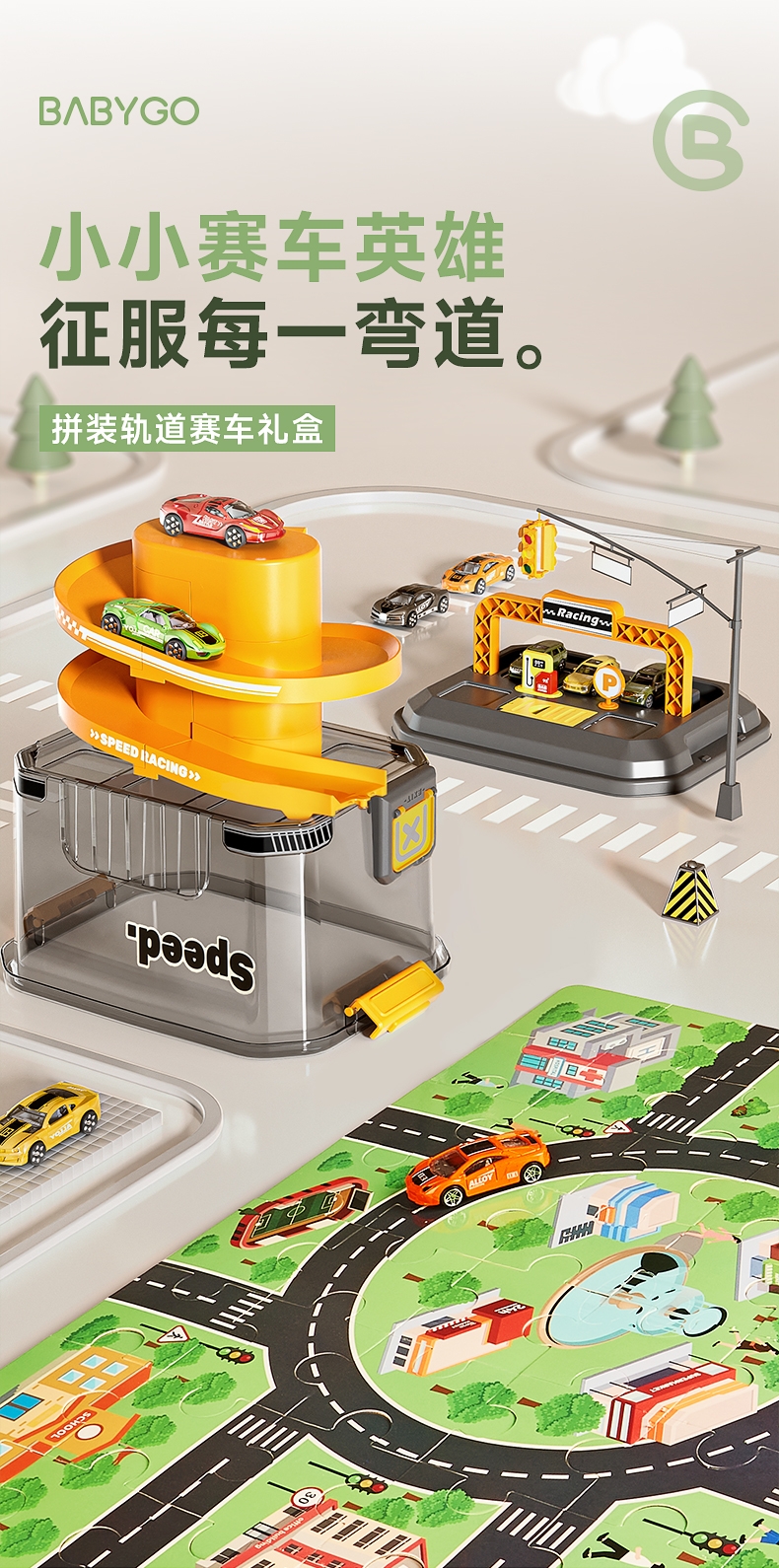 BABYGO轨道停车场收纳礼盒儿童汽车停车场滑行益智闯关大冒险玩具