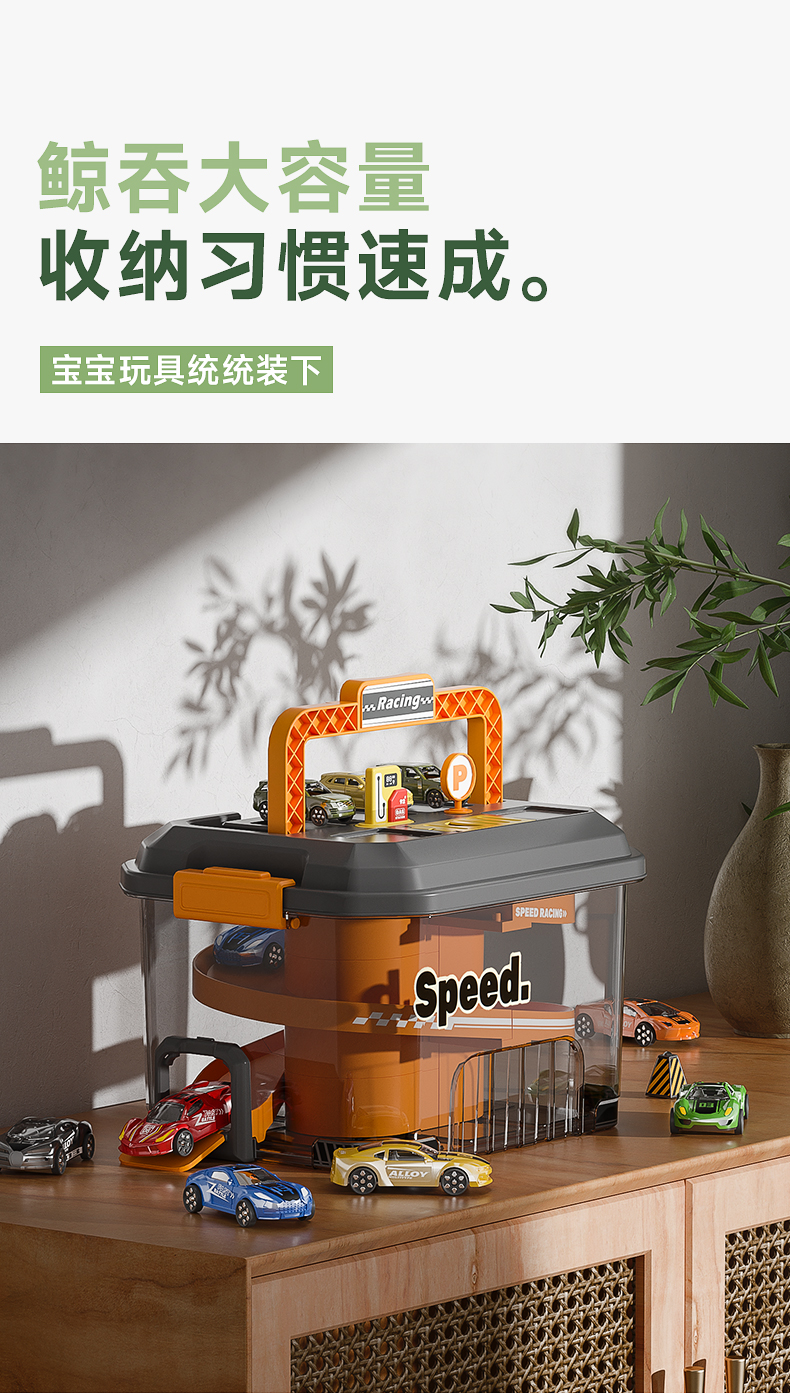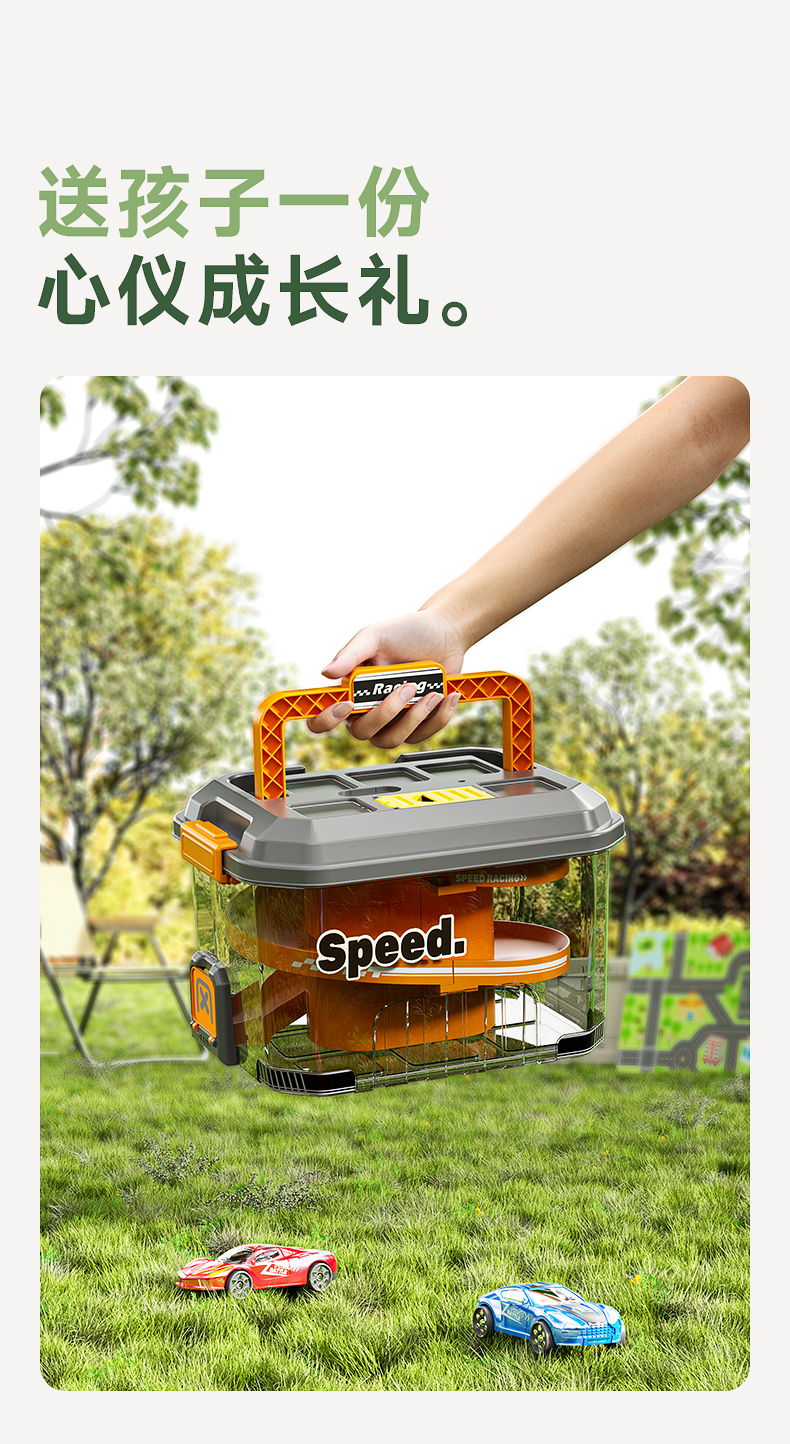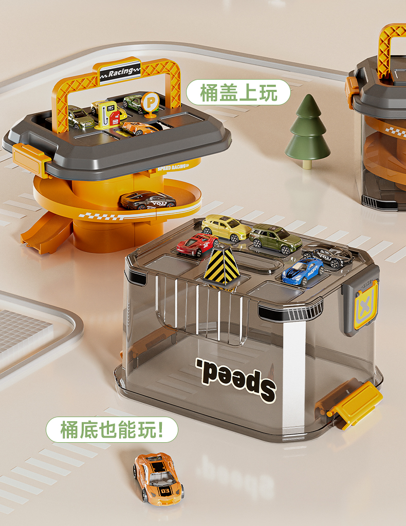BABYGO轨道停车场收纳礼盒儿童汽车停车场滑行益智闯关大冒险玩具
