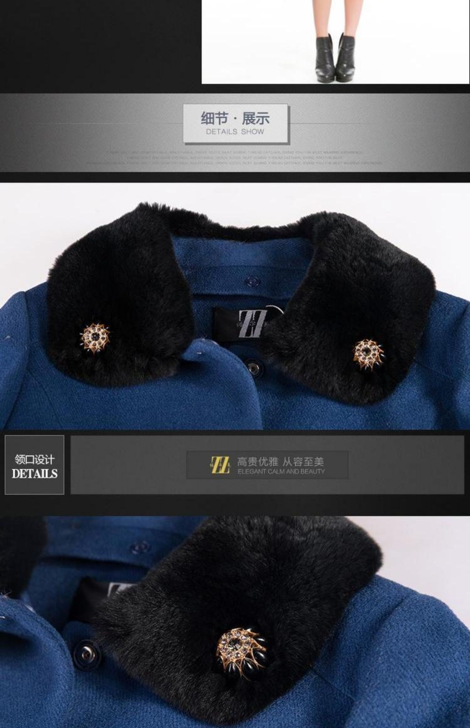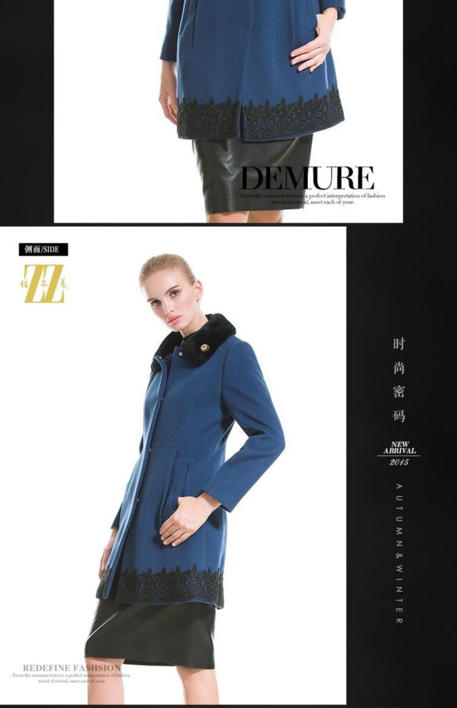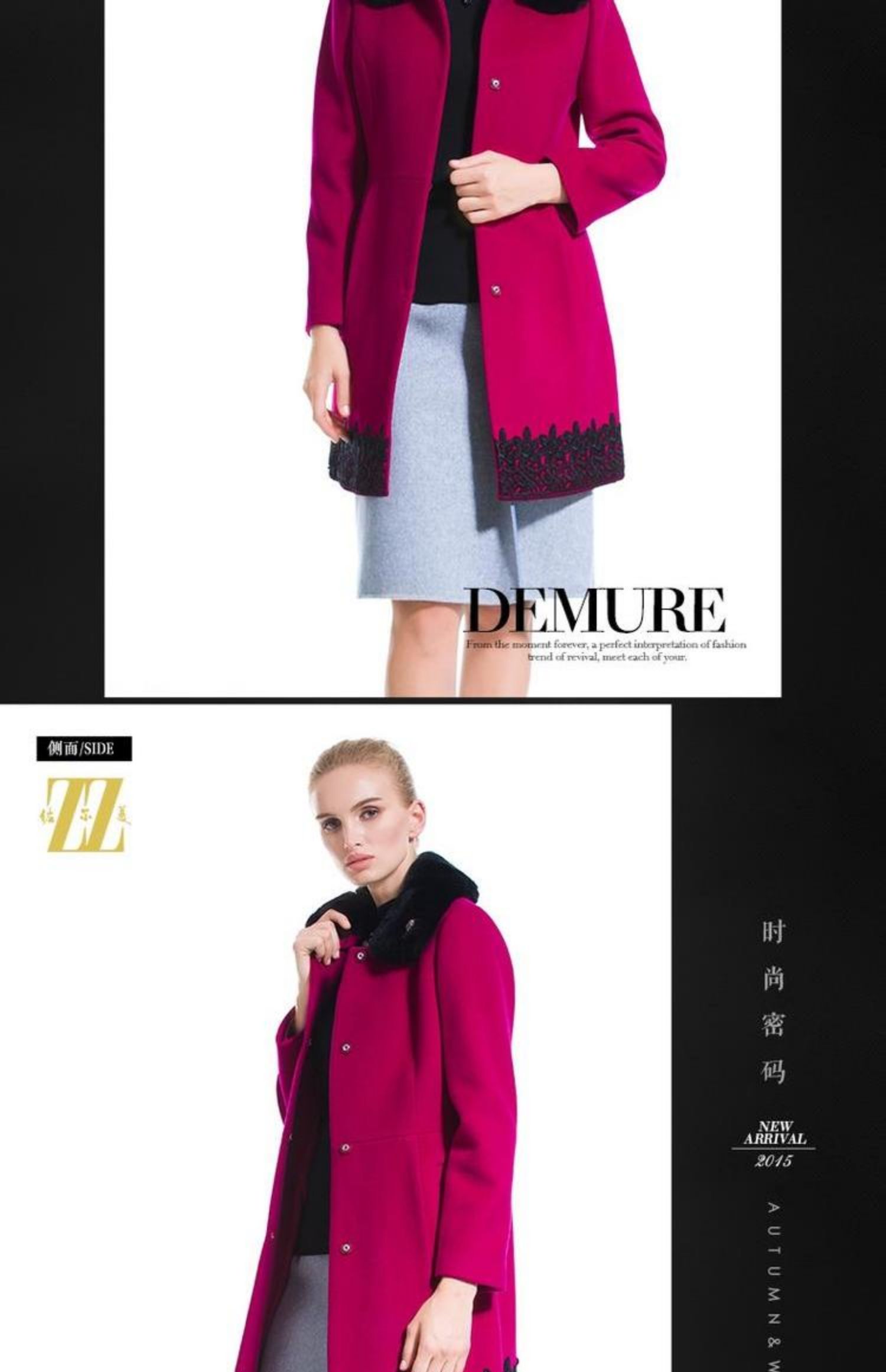 佐尔美冬季新品中长款羊毛大衣毛领毛呢外套 呢子E44ZT50