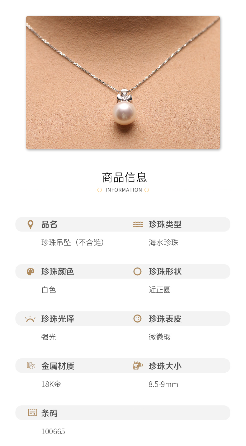 金18K海水珍珠吊坠 8.5-9mm 白 100665