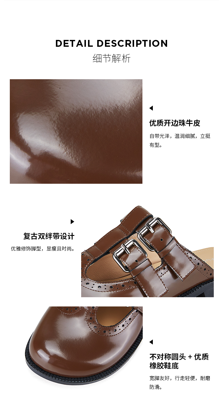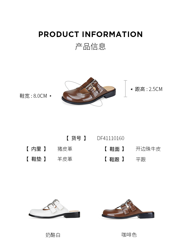 【伯爵奶茶】D:FUSE迪芙斯2024夏季新款复古雕花文艺包头玛丽珍穆勒拖DF41110160