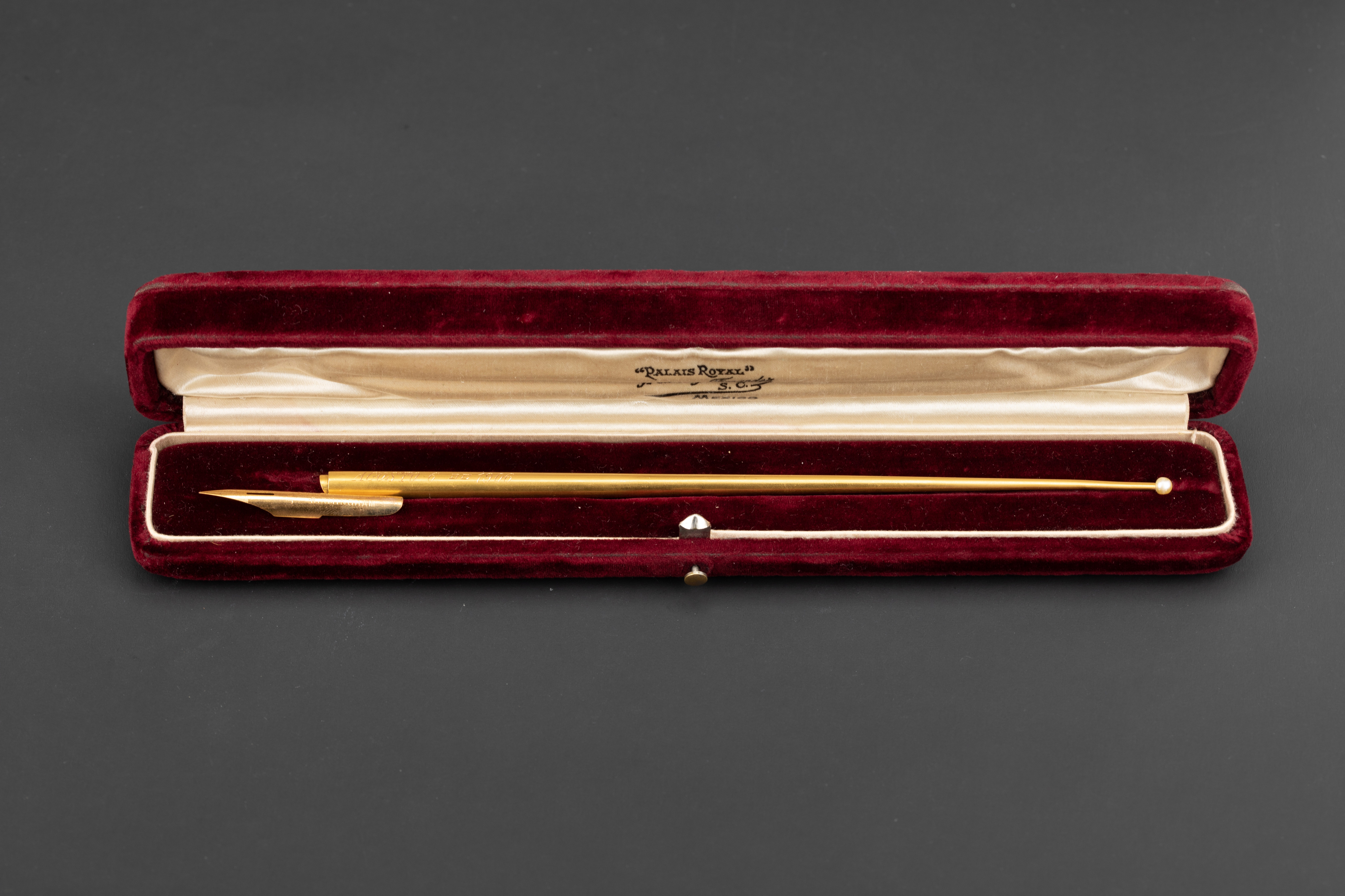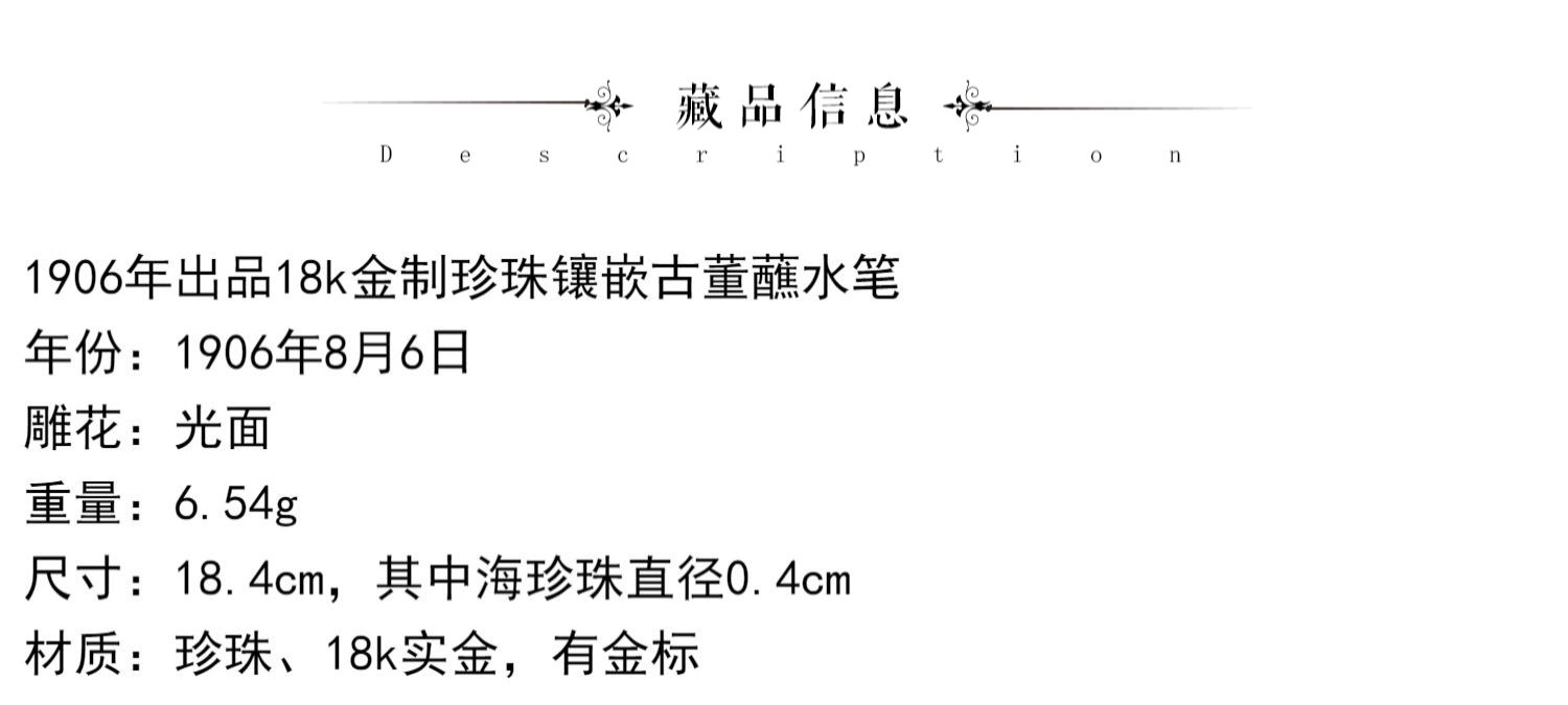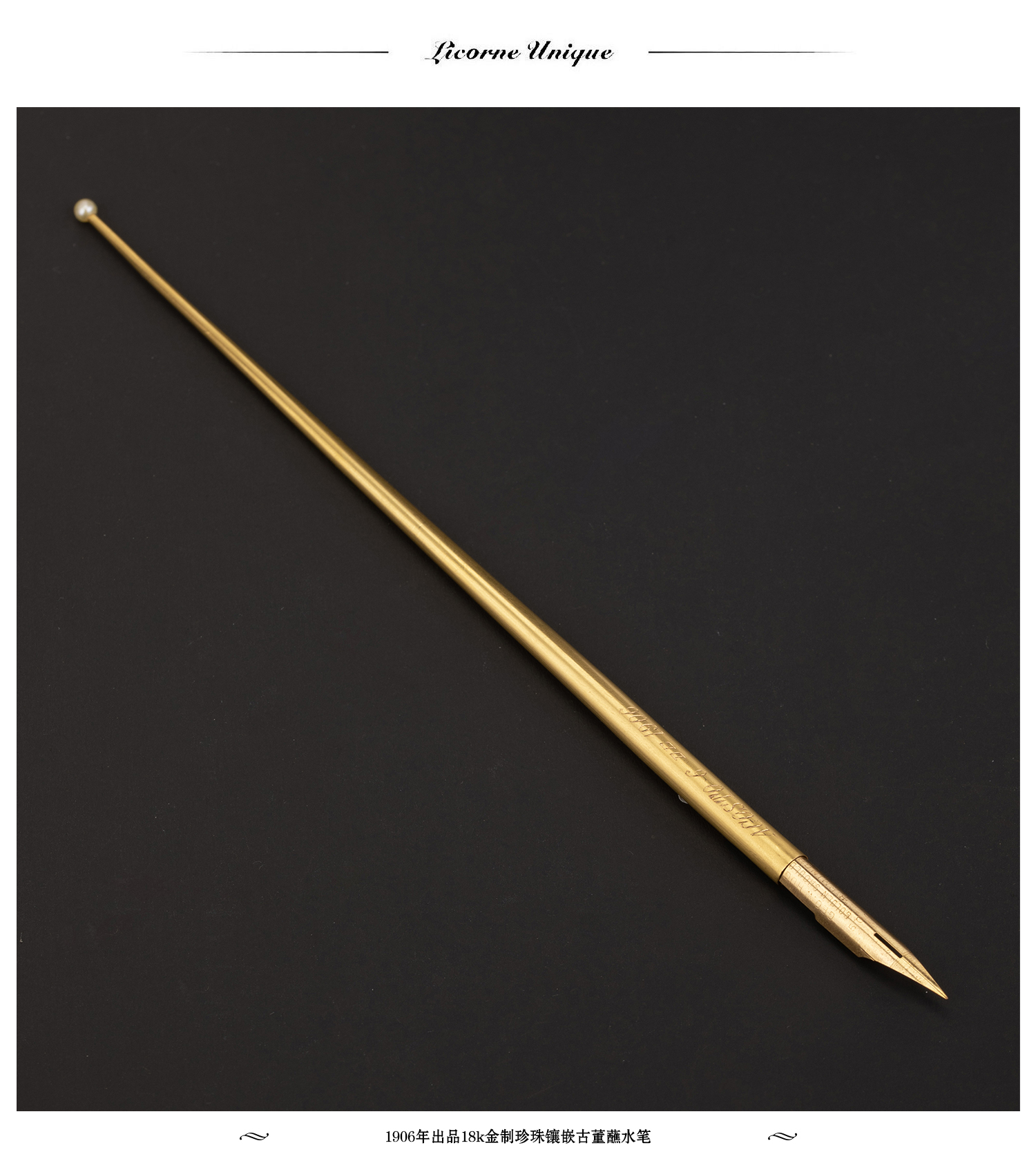 独角鹿西洋古董1906年出品18k金制珍珠镶嵌古董蘸水笔