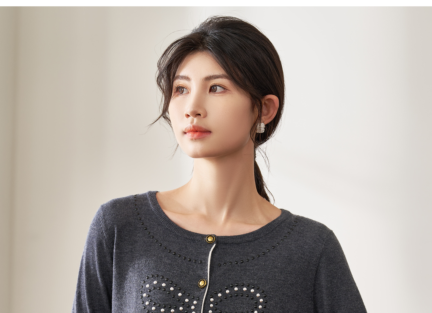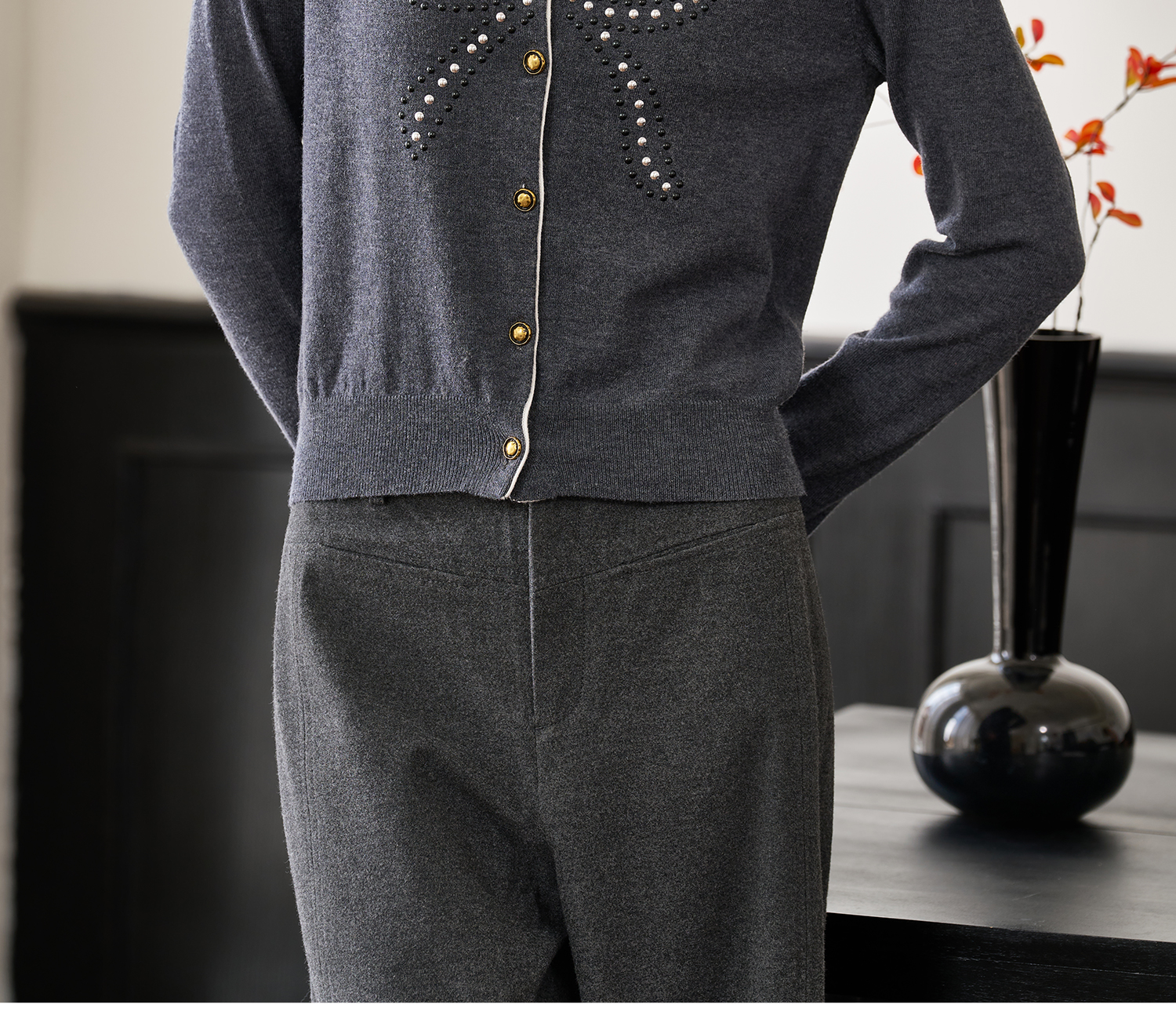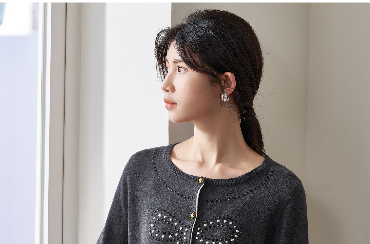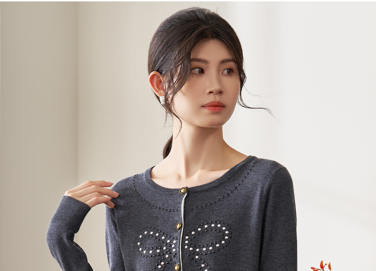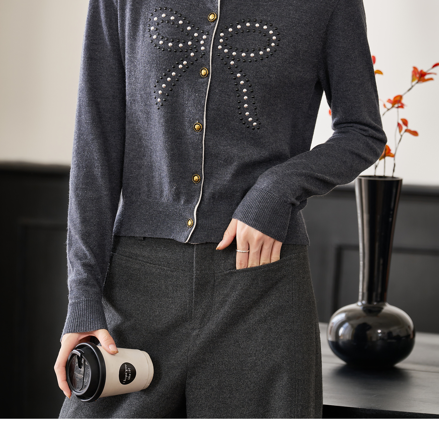 剩S 米思阳2025冬季新款时尚设计感针织衫重工钉珠蝴蝶结开衫上衣4543