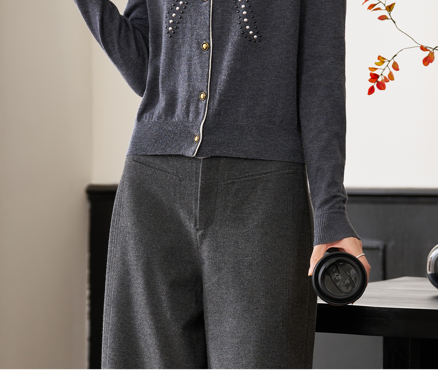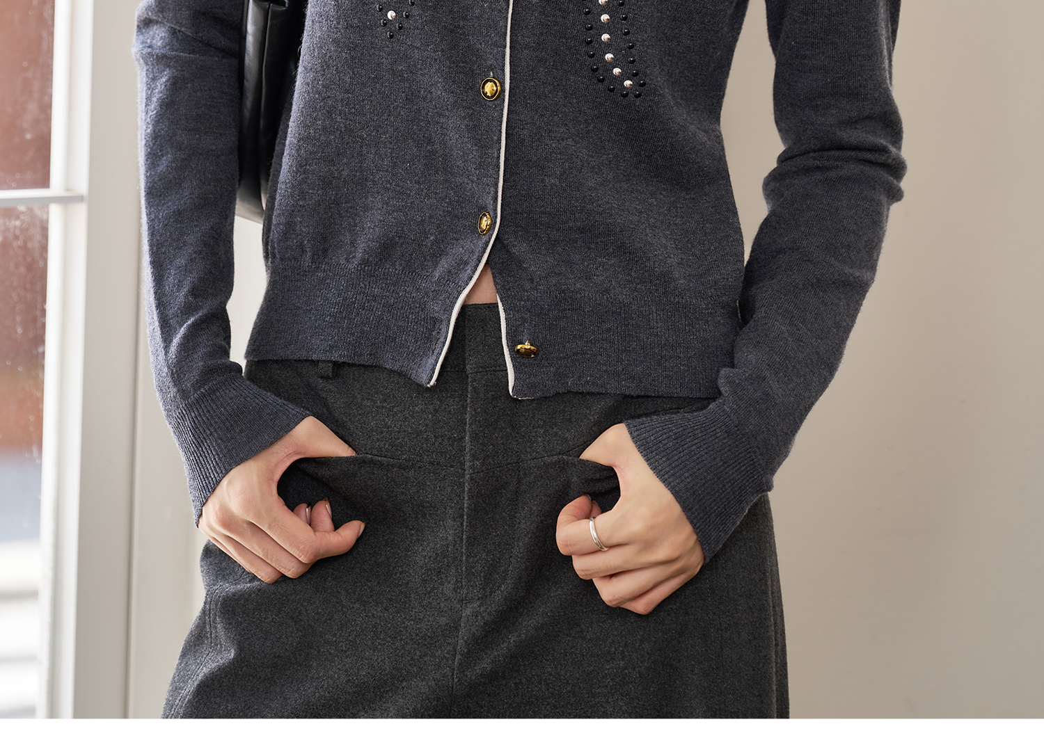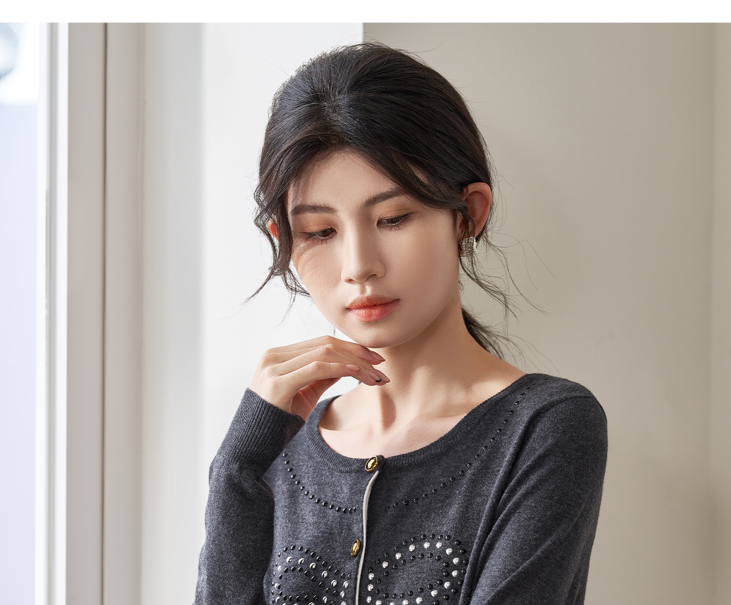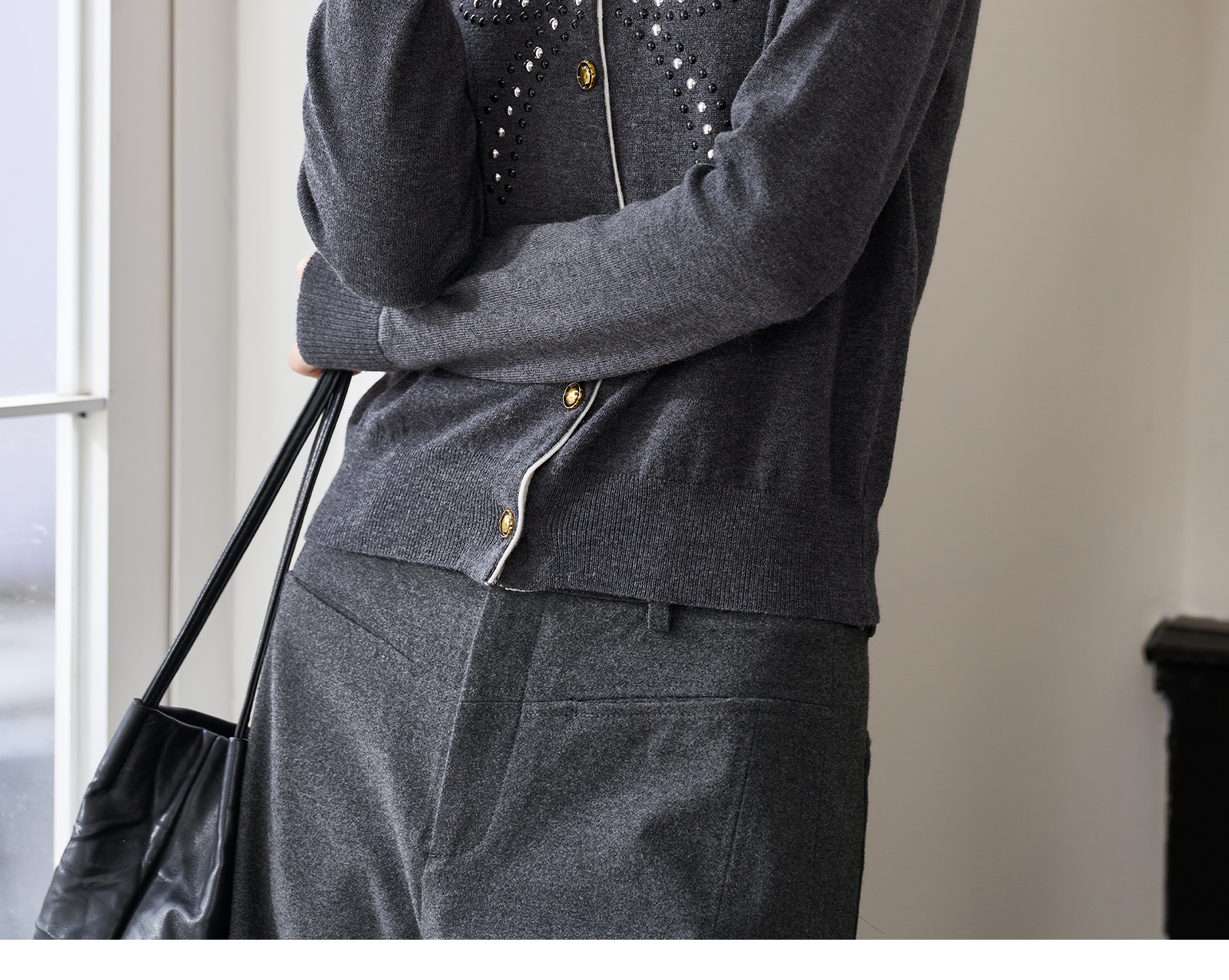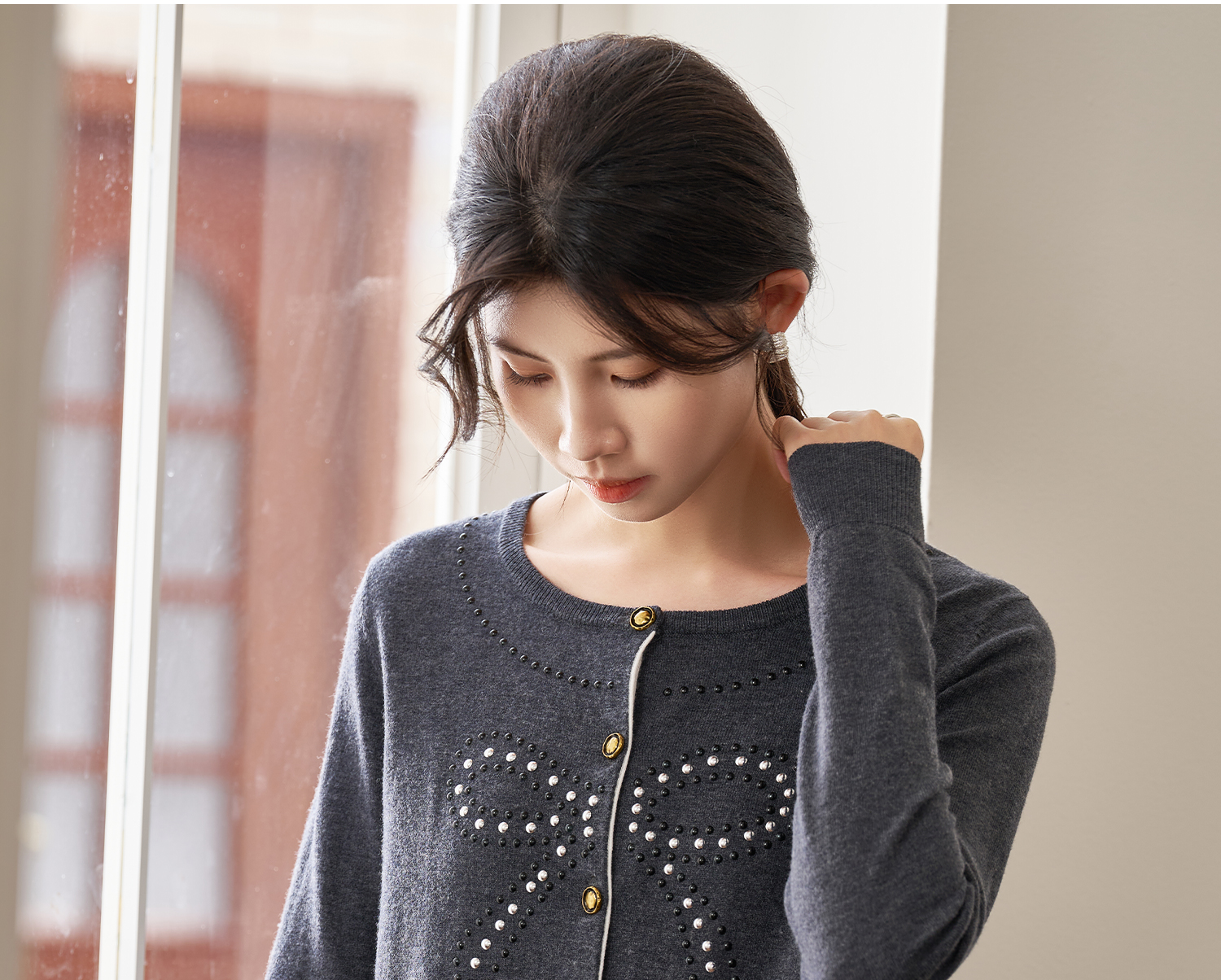 剩S 米思阳2025冬季新款时尚设计感针织衫重工钉珠蝴蝶结开衫上衣4543