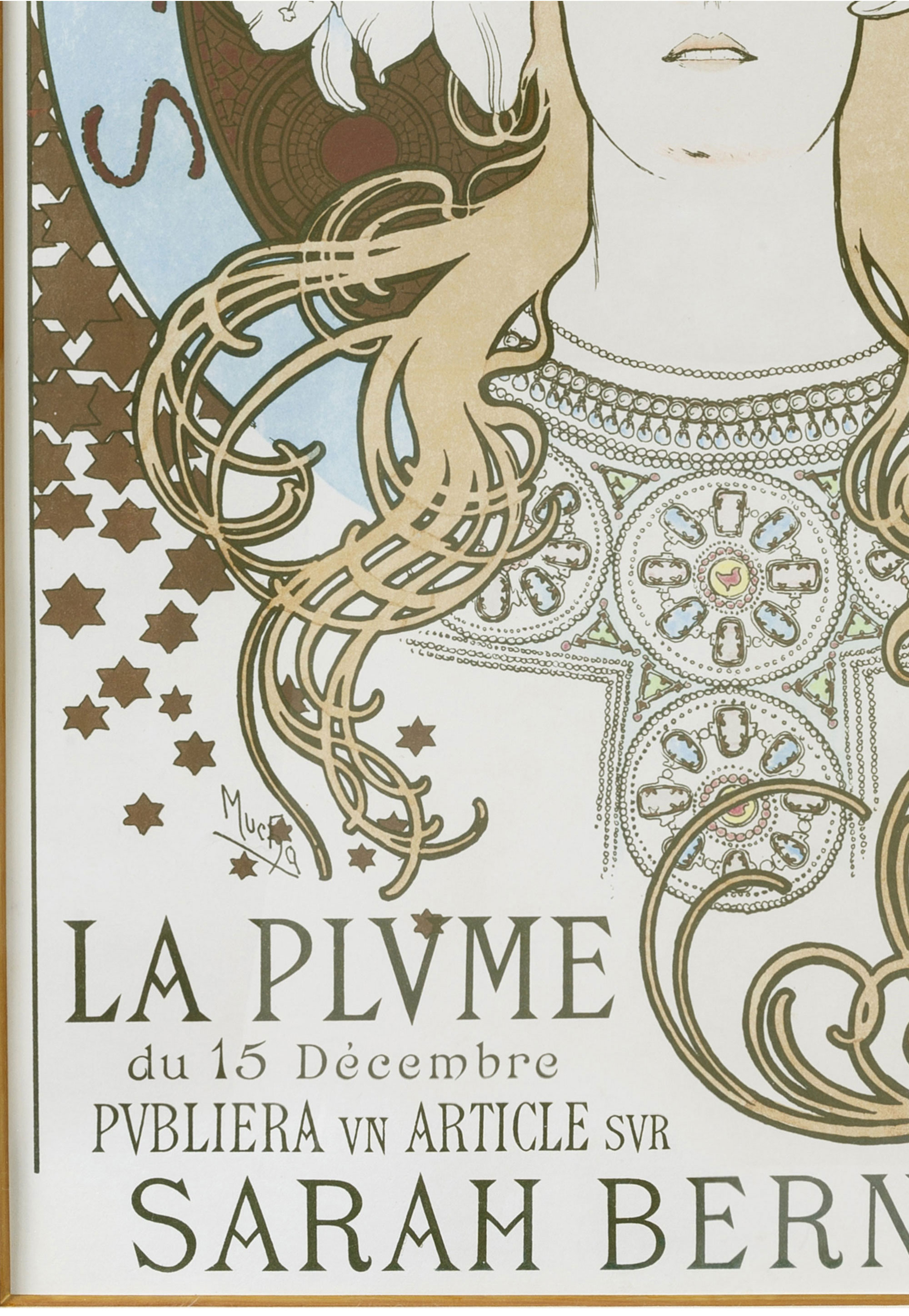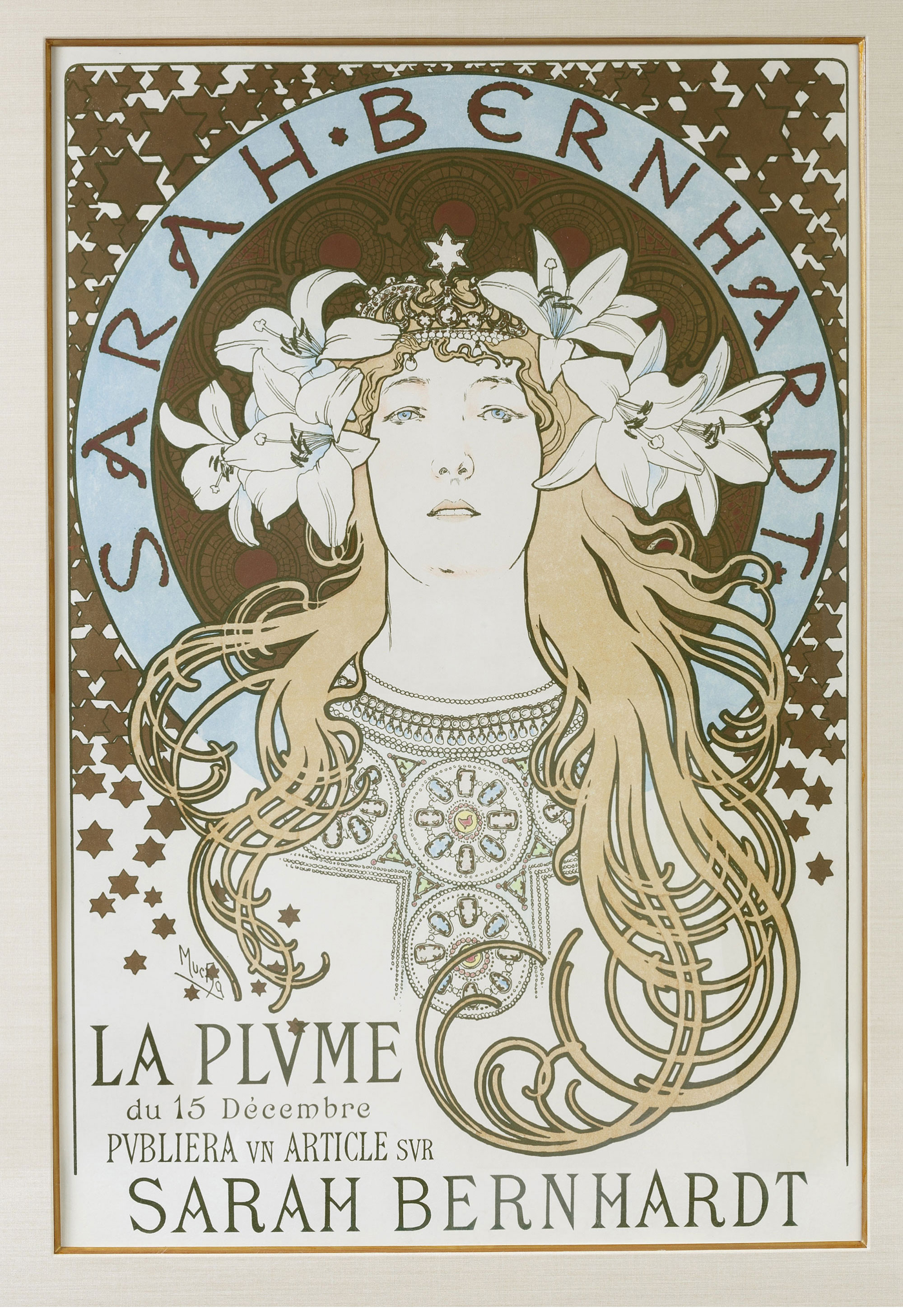 独角鹿西洋古董1896年法国出品石版画《致莎拉·伯恩哈特的敬意——她的仰慕者和朋友们》