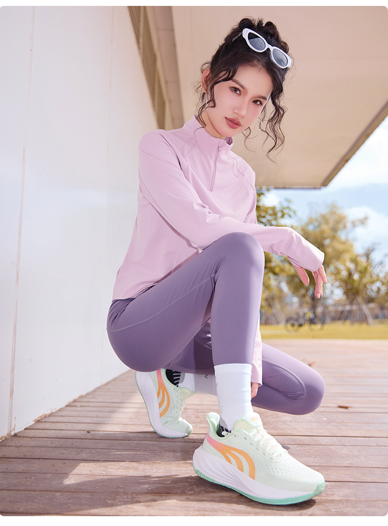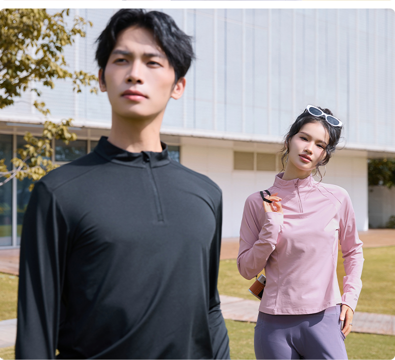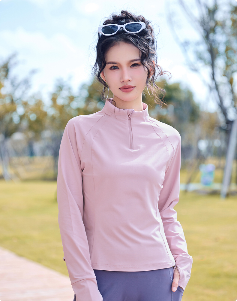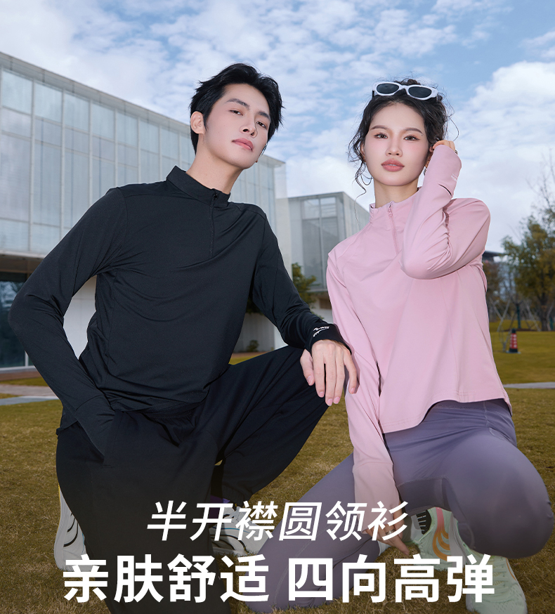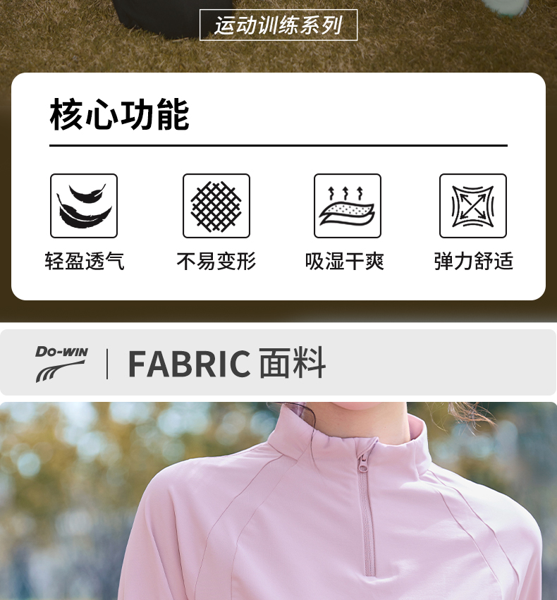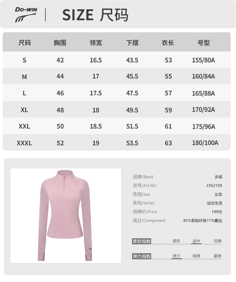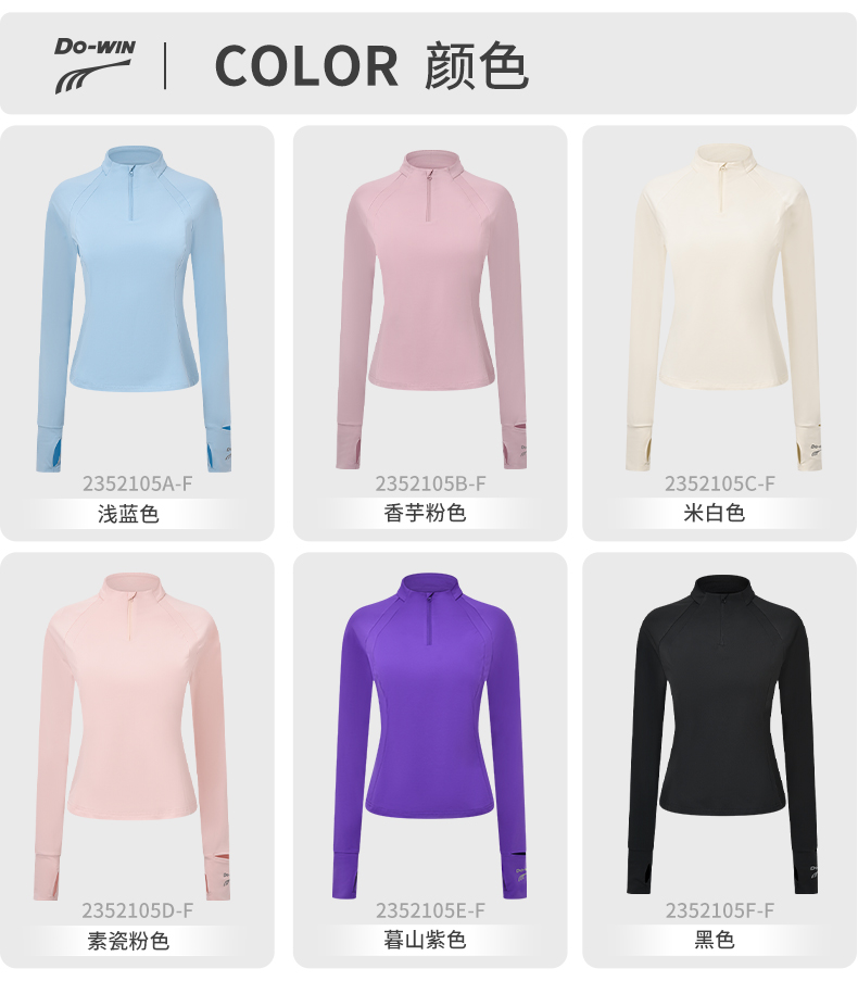 多威圆领衫女新款半开襟长袖上衣速干舒适运动装2352105