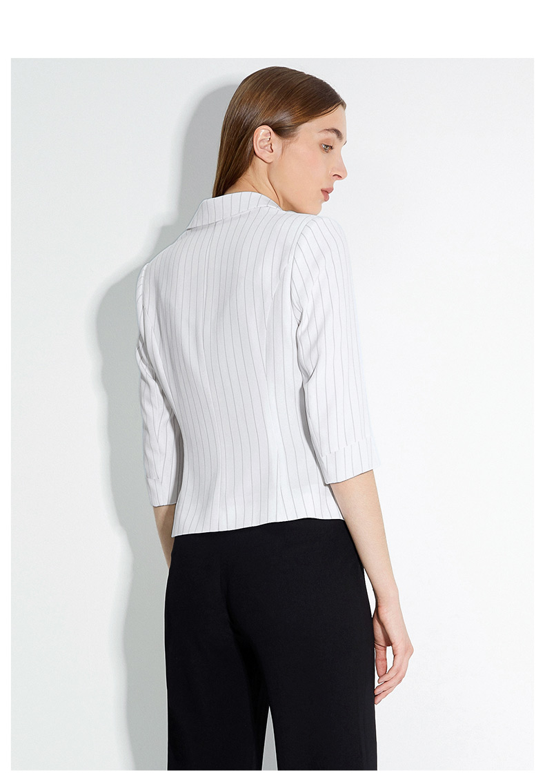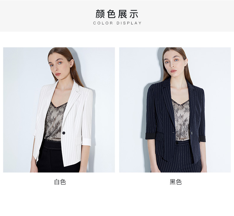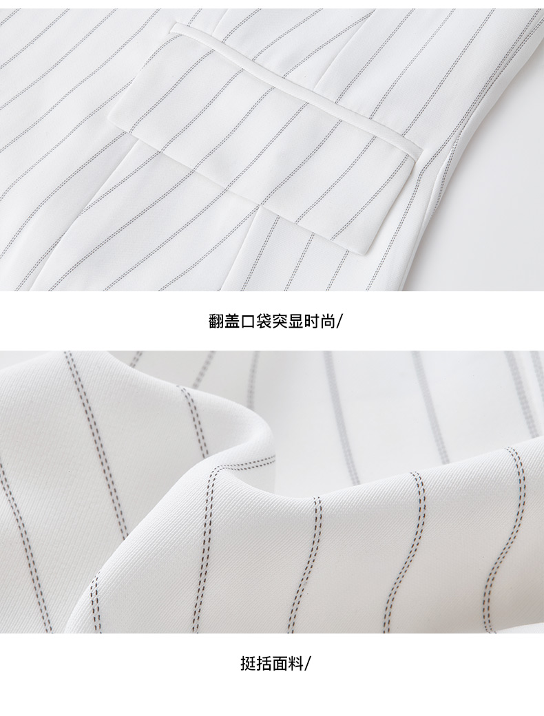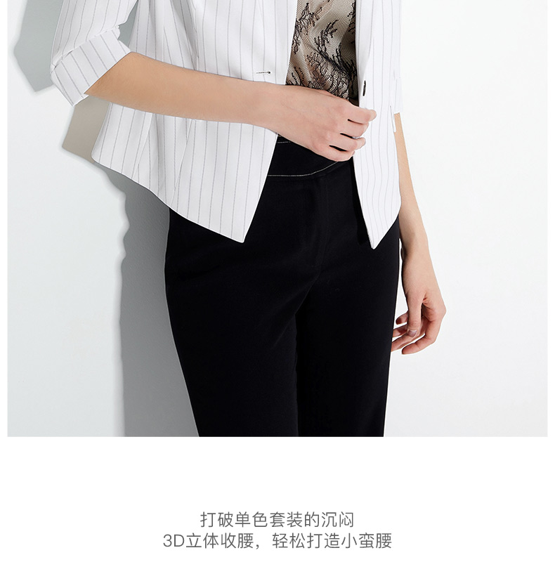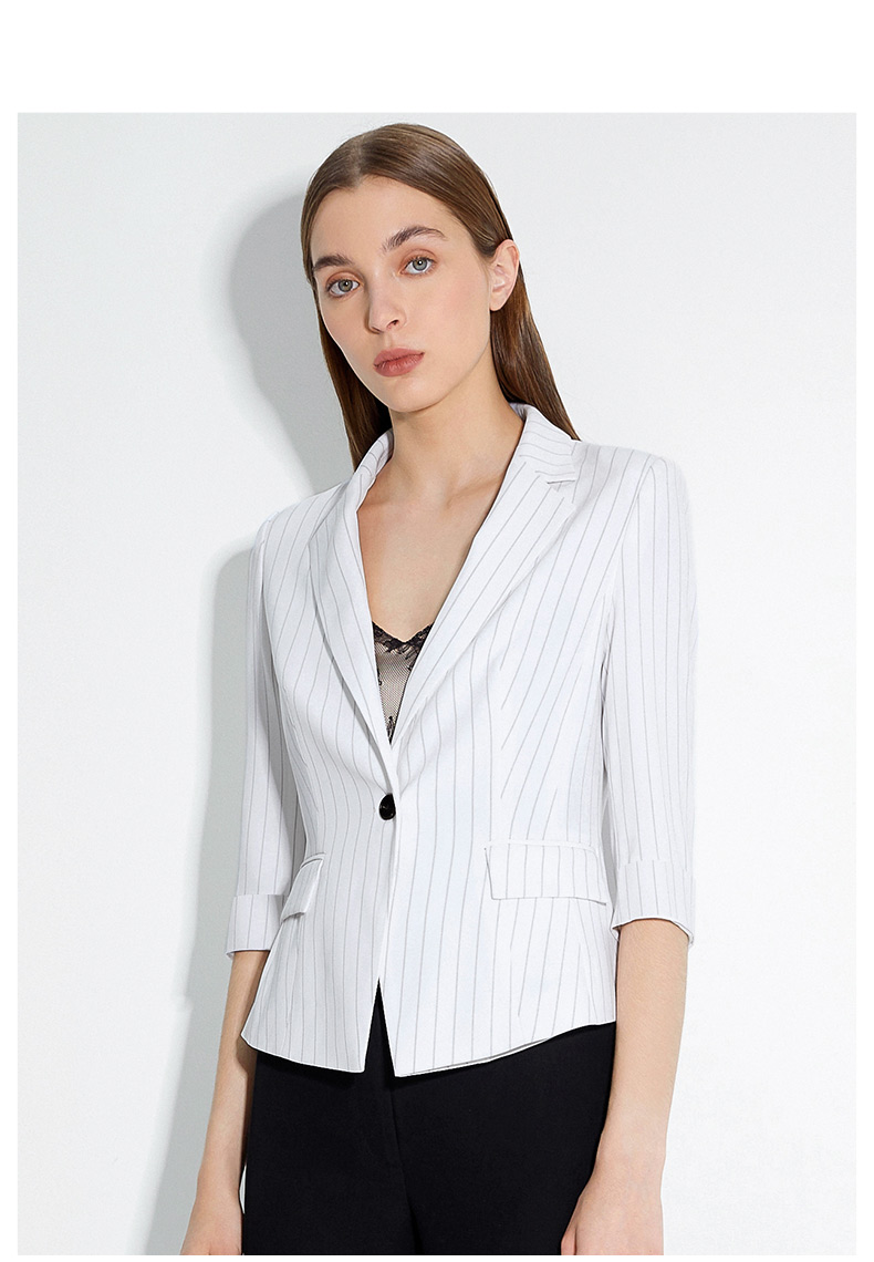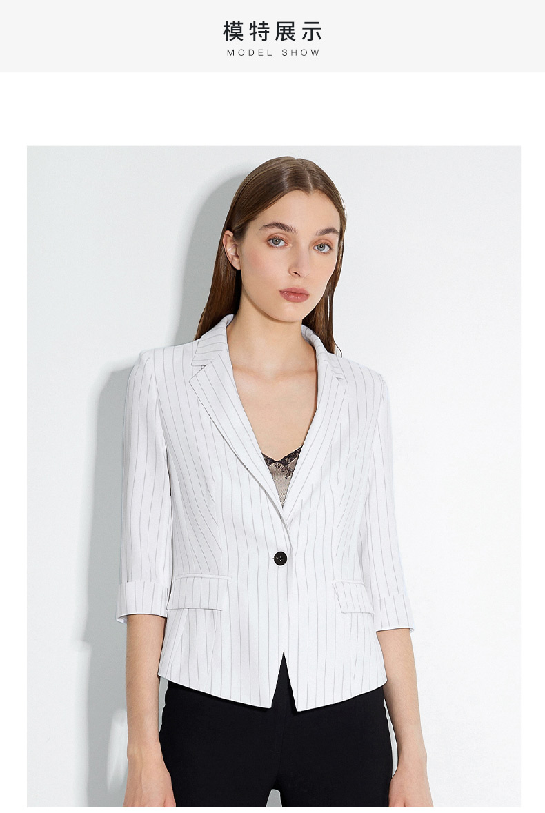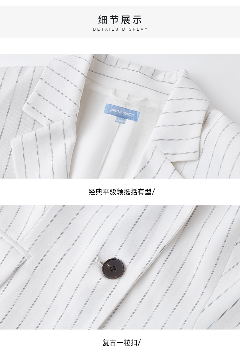 皮尔卡丹女装春季新款白色条纹西服时尚短外套上衣C41UL07W0