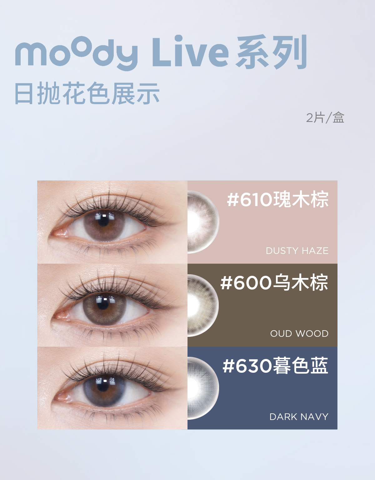 moody硅水凝胶美瞳日抛mini2片彩色隐形眼镜