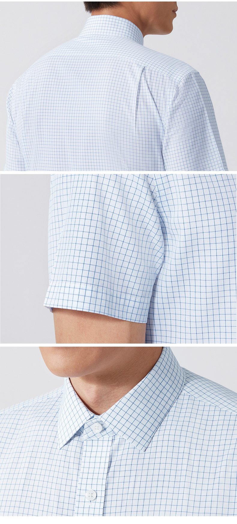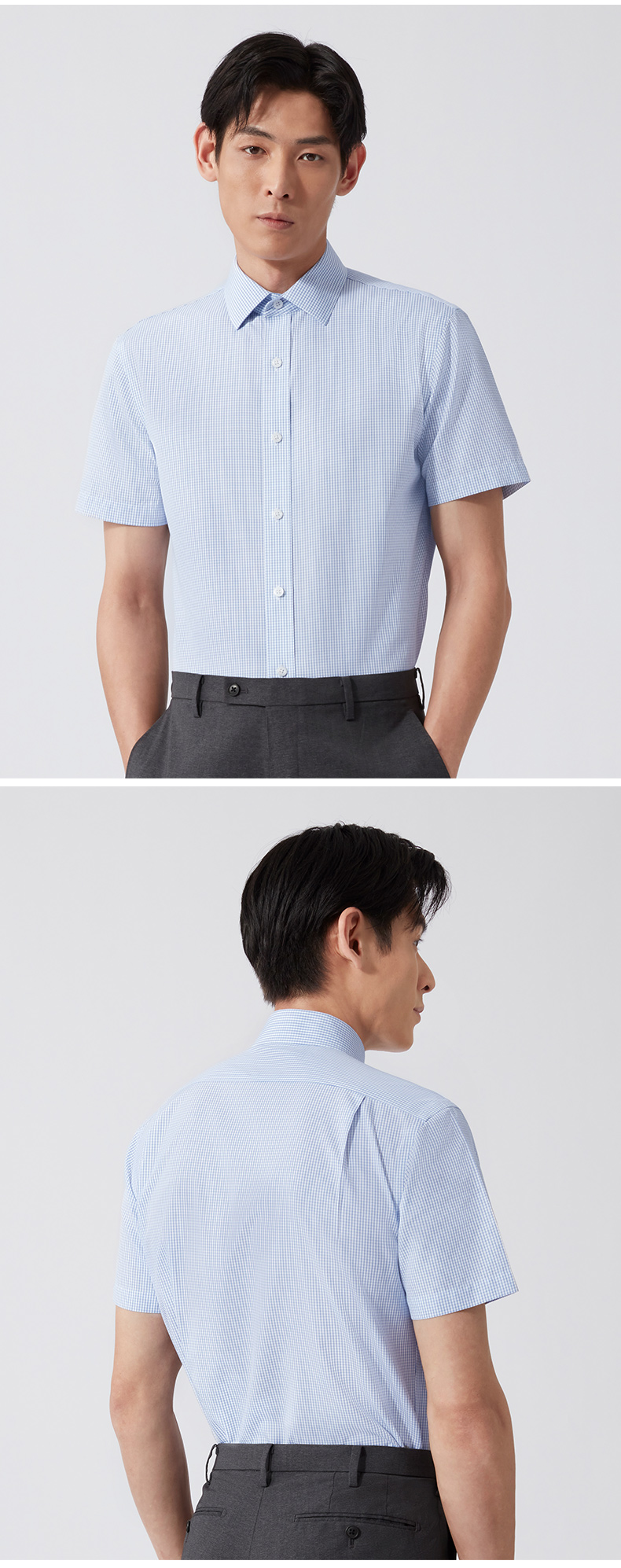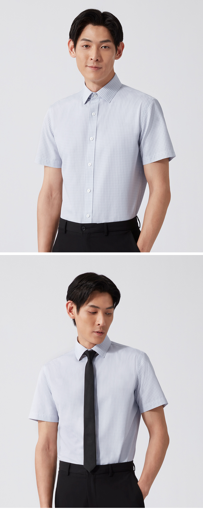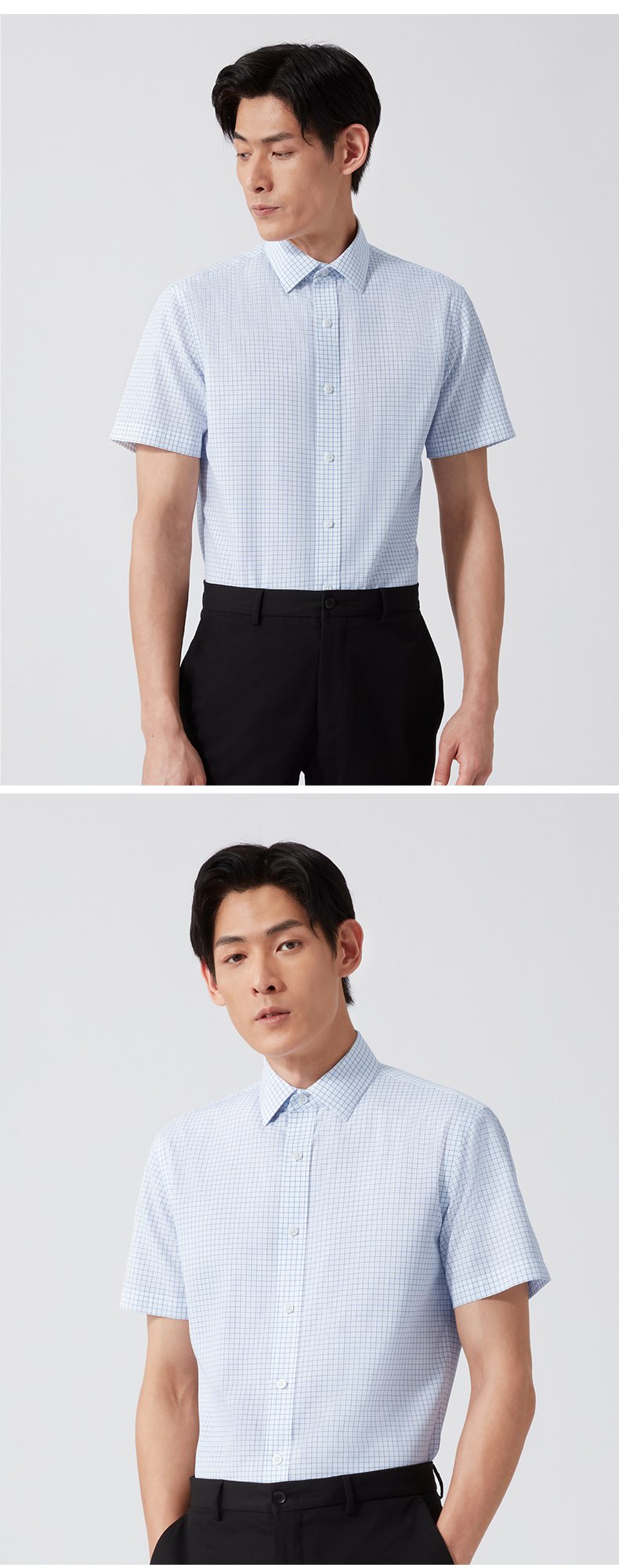 十如仕100%新疆长绒棉免烫府绸花色正装短袖衬衫-301-04