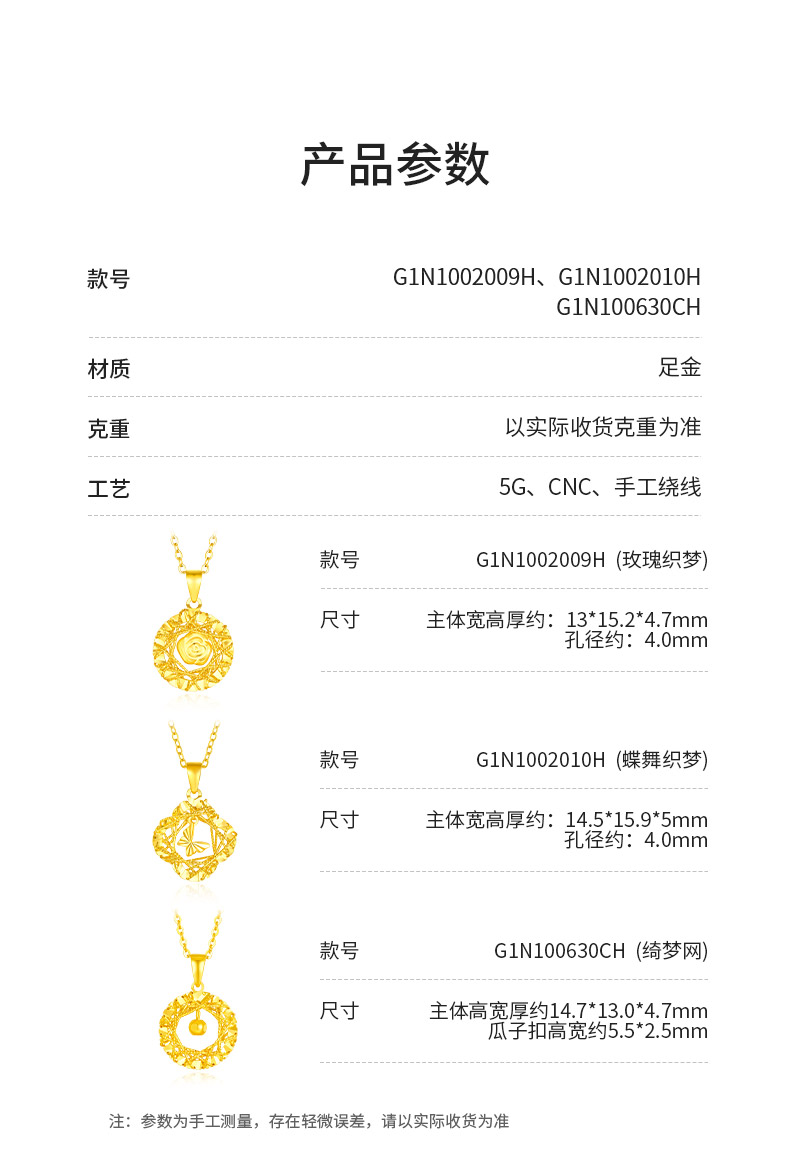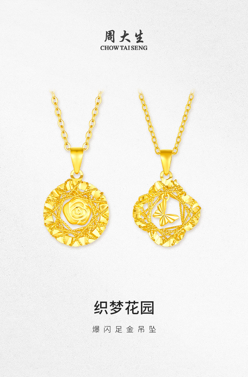 周大生黄金吊坠女足金5G挂坠绮梦网小方糖可配项链七夕礼物送女友