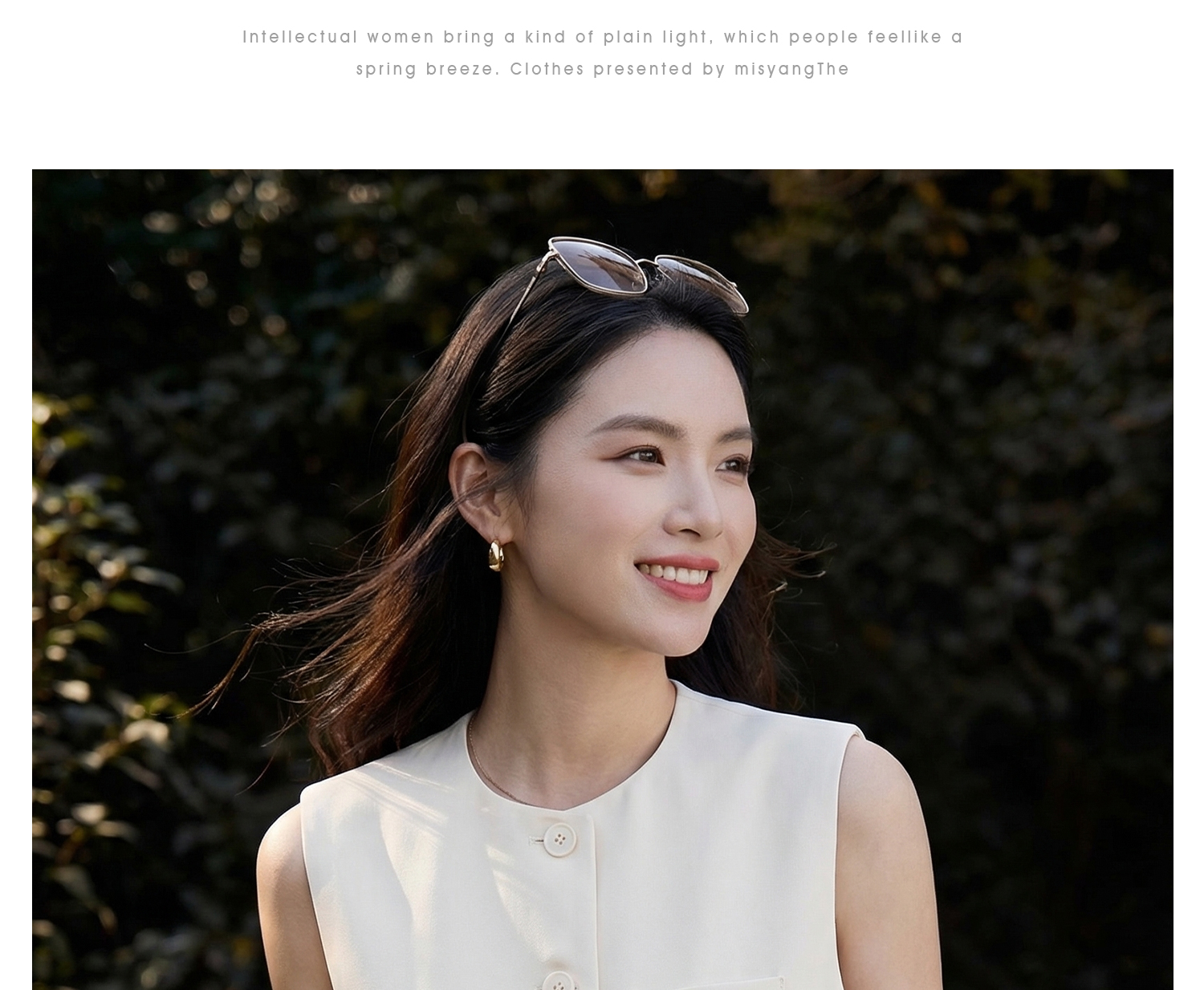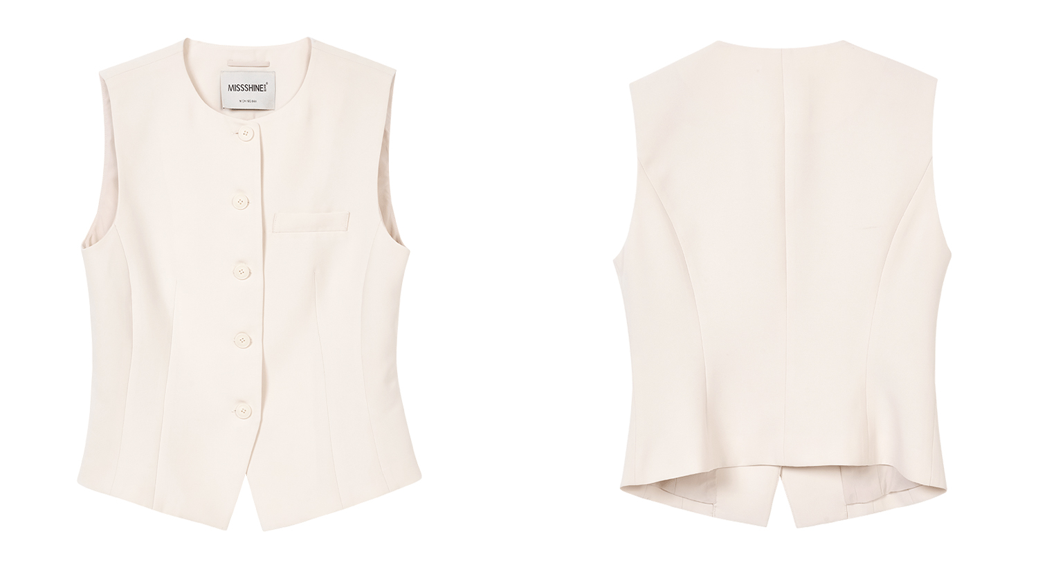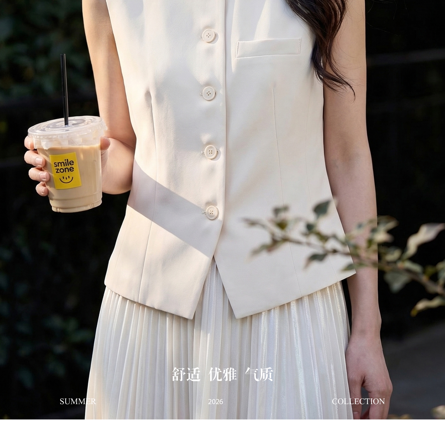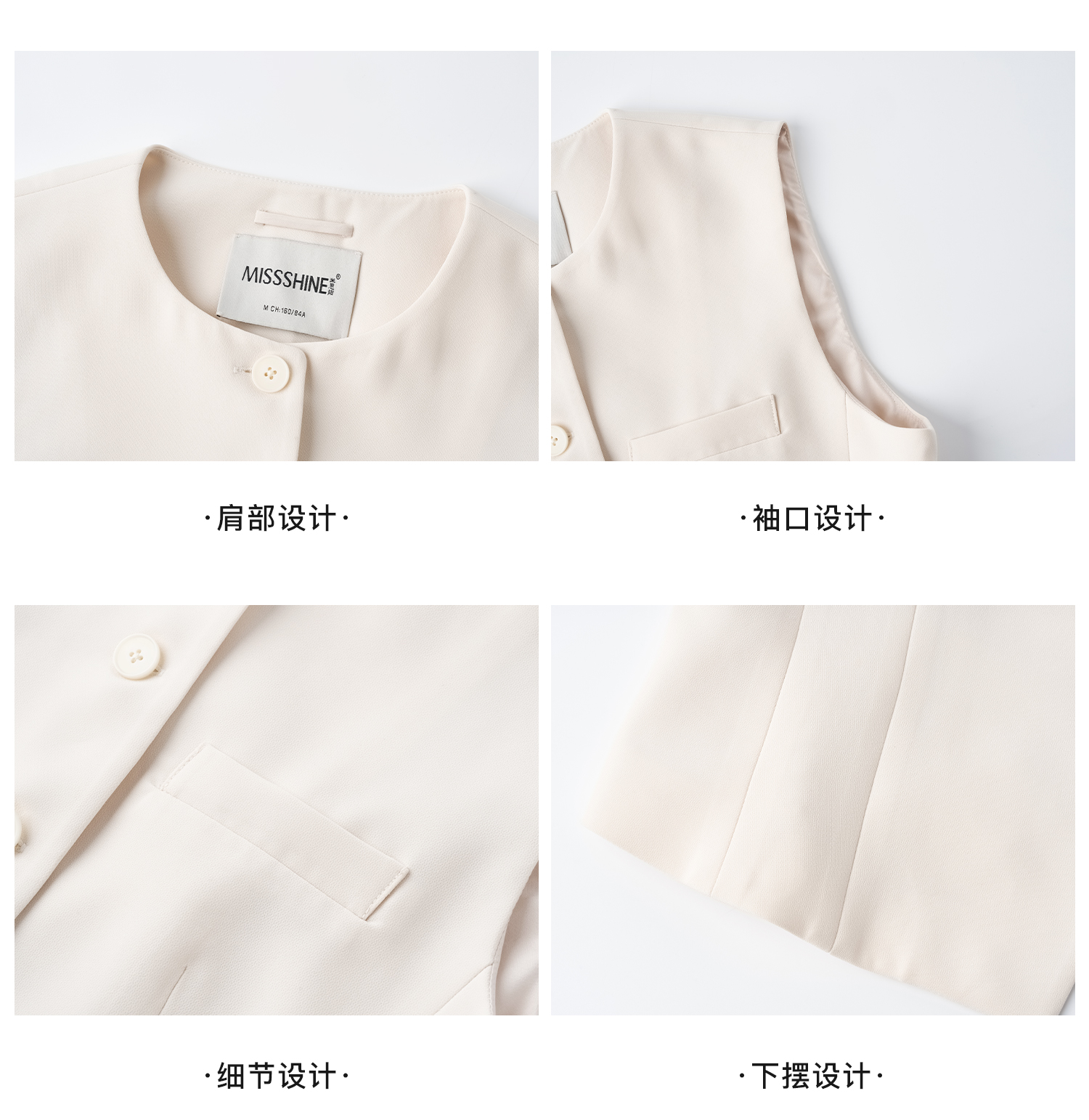 米思阳2026春季新品【时尚百搭无袖马夹】春季单排扣圆领气质通勤叠穿马夹4538