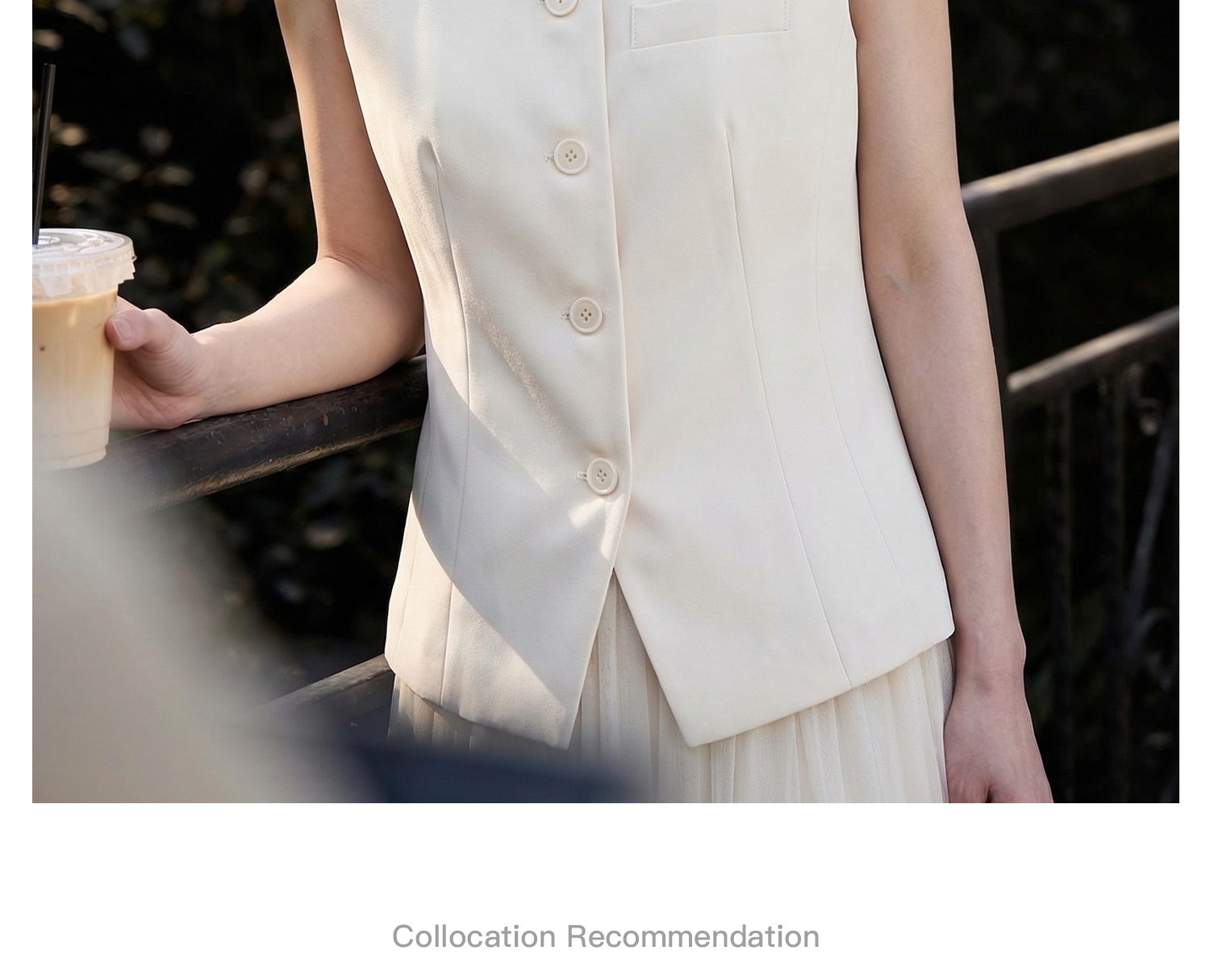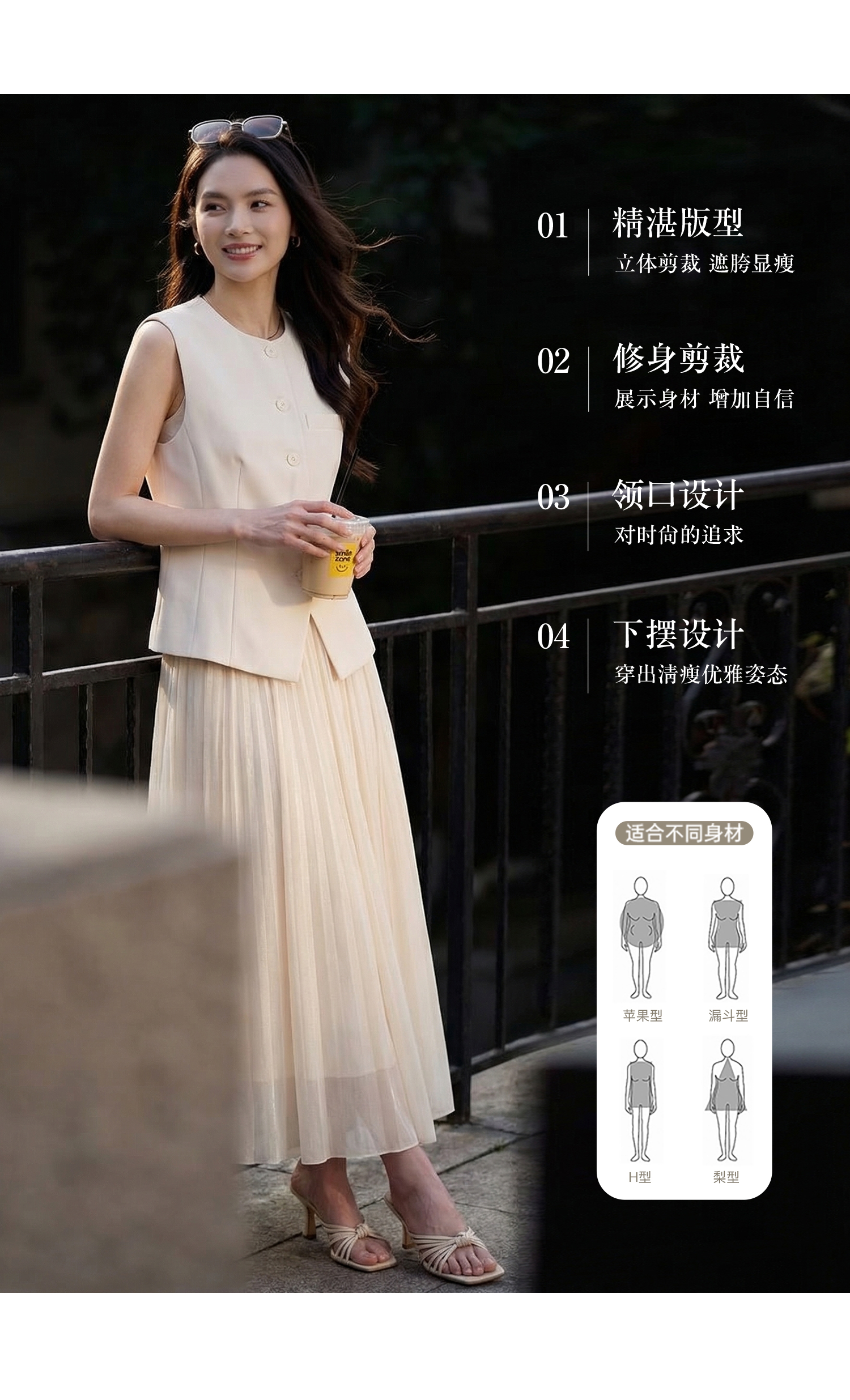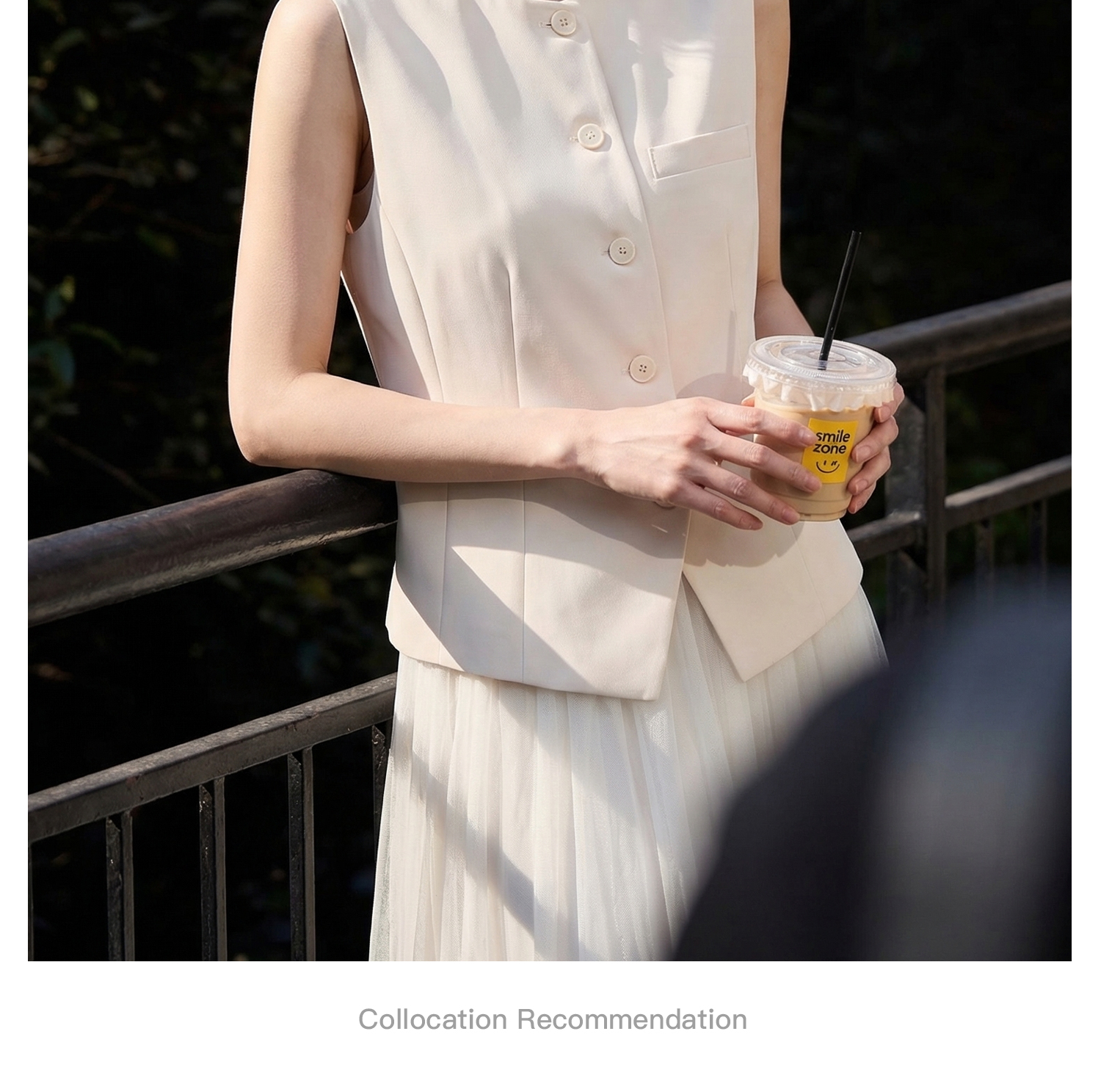 米思阳2026春季新品【时尚百搭无袖马夹】春季单排扣圆领气质通勤叠穿马夹4538