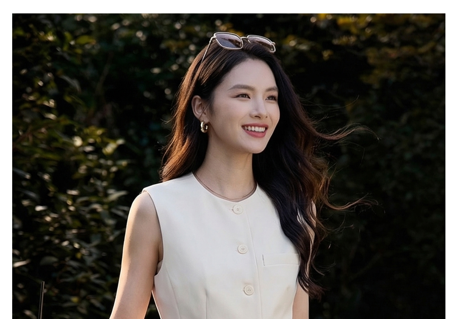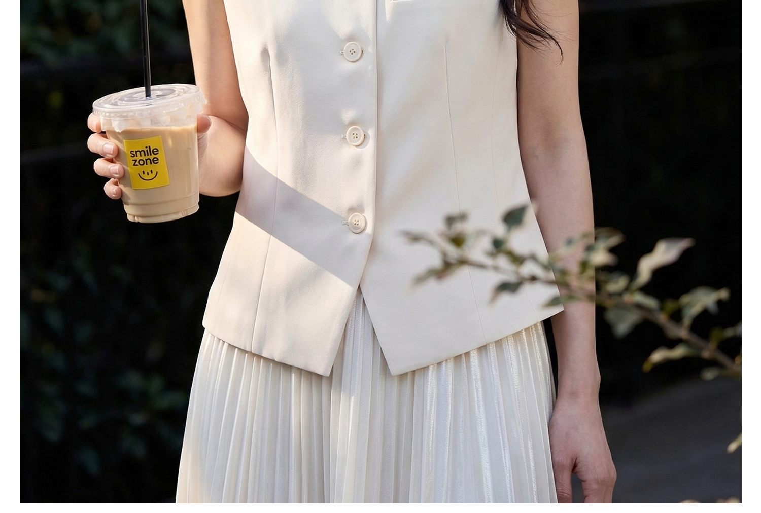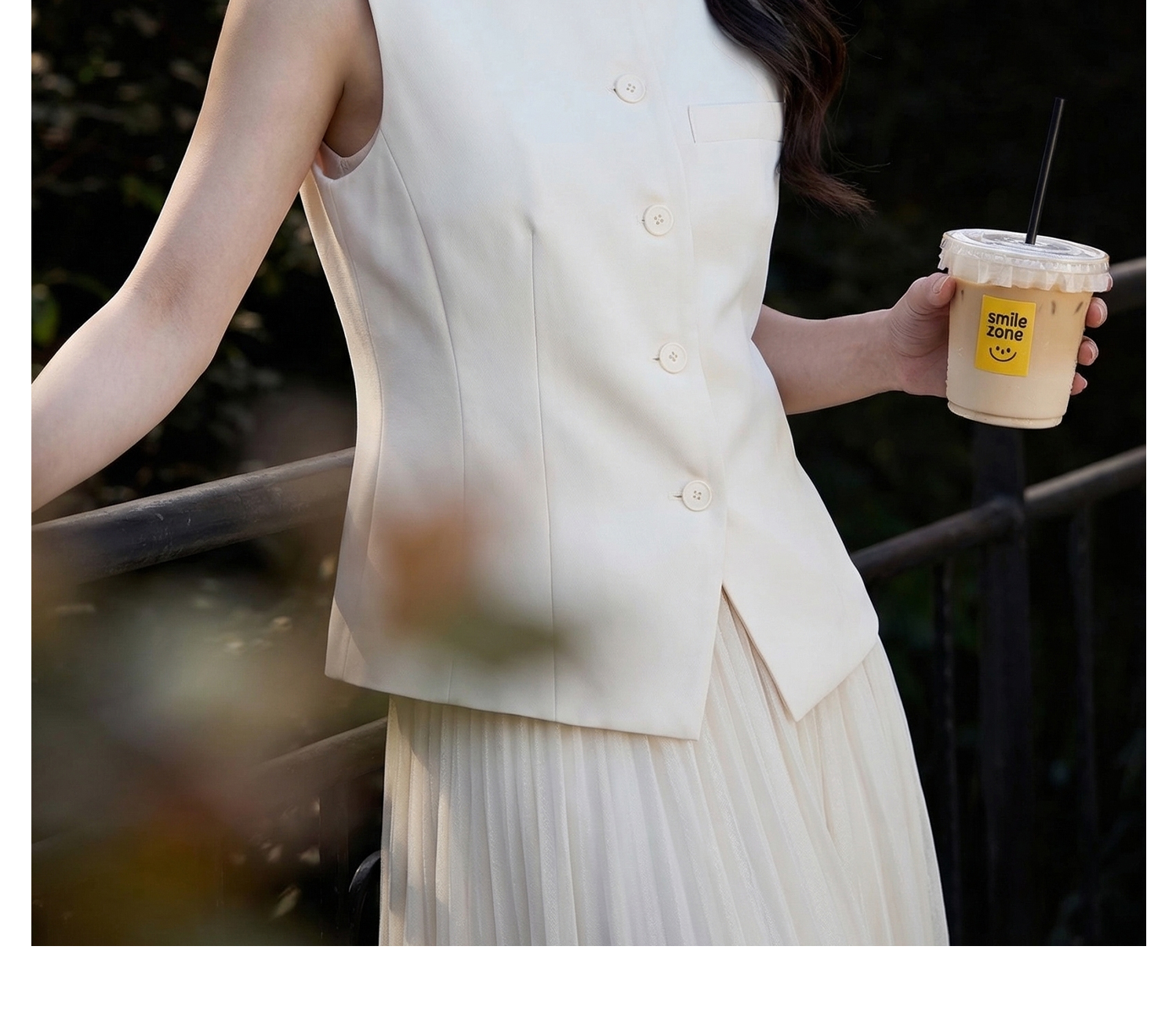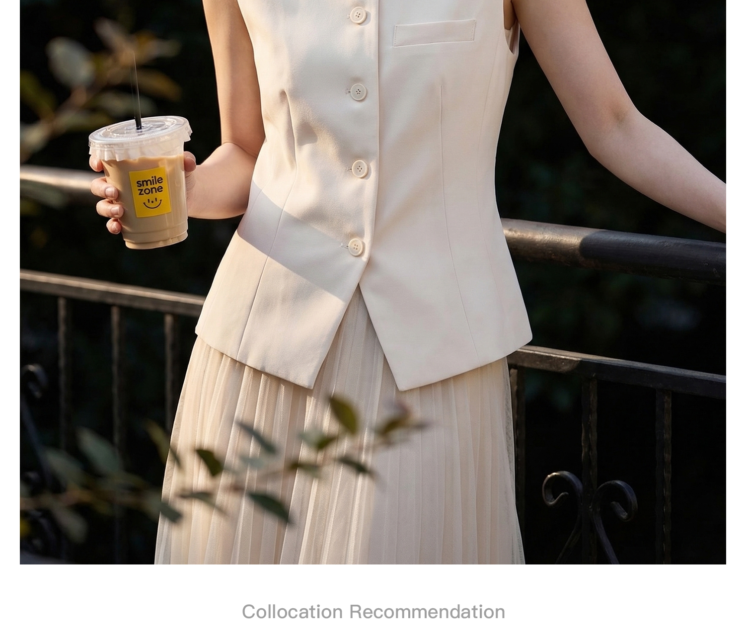 米思阳2026春季新品【时尚百搭无袖马夹】春季单排扣圆领气质通勤叠穿马夹4538