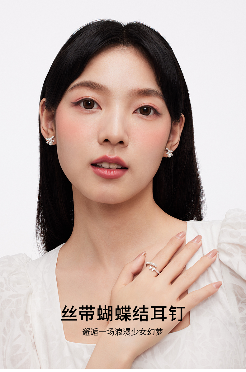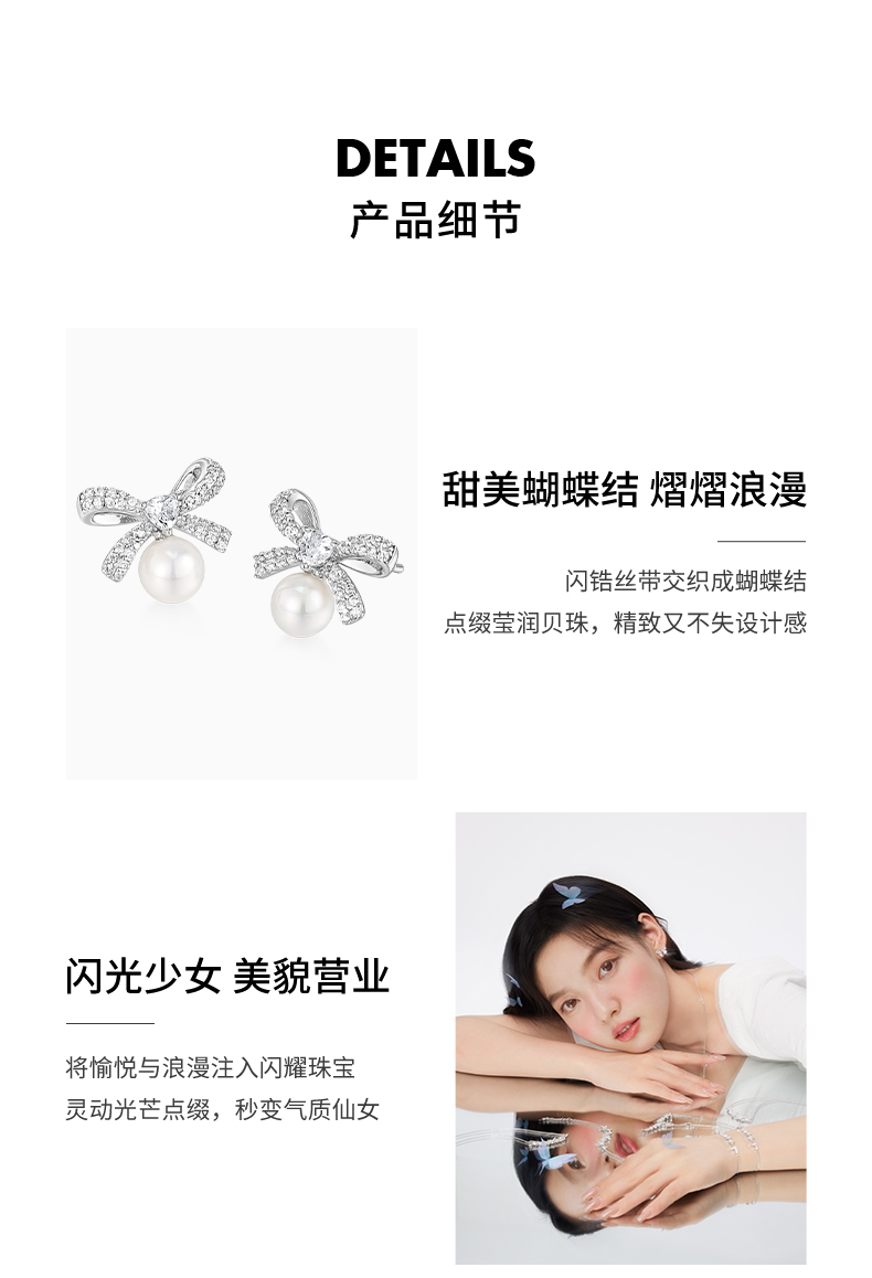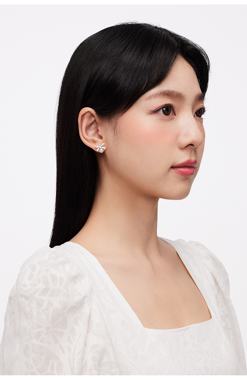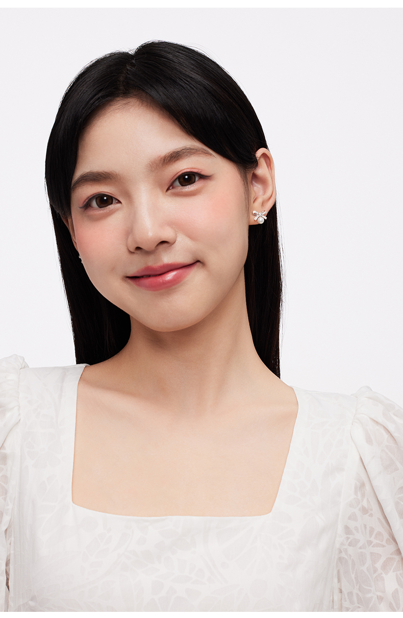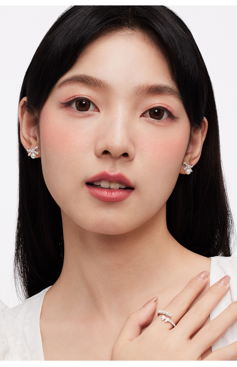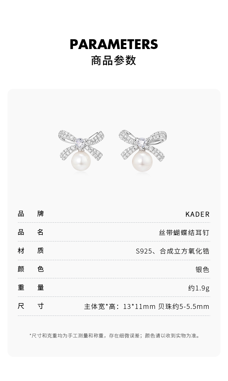 KADER卡蒂罗 丝带蝴蝶结人造珍珠耳钉 女925银耳饰小众设计2023新款爆款