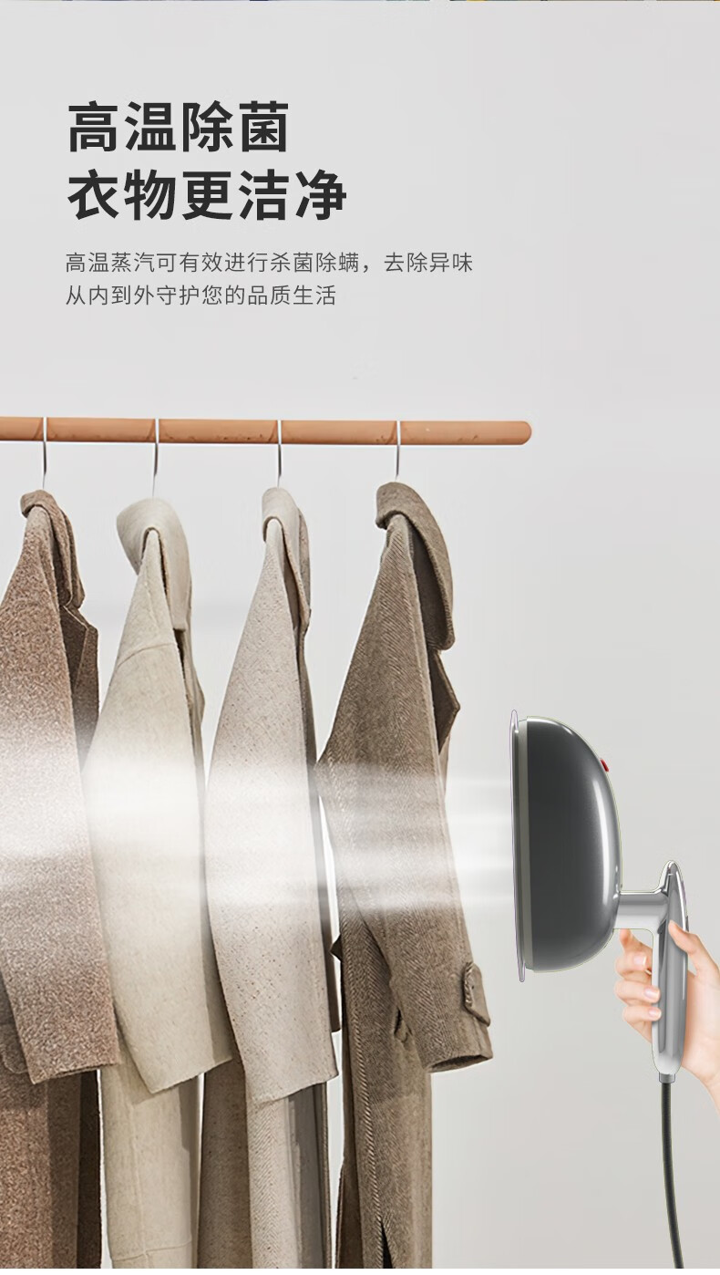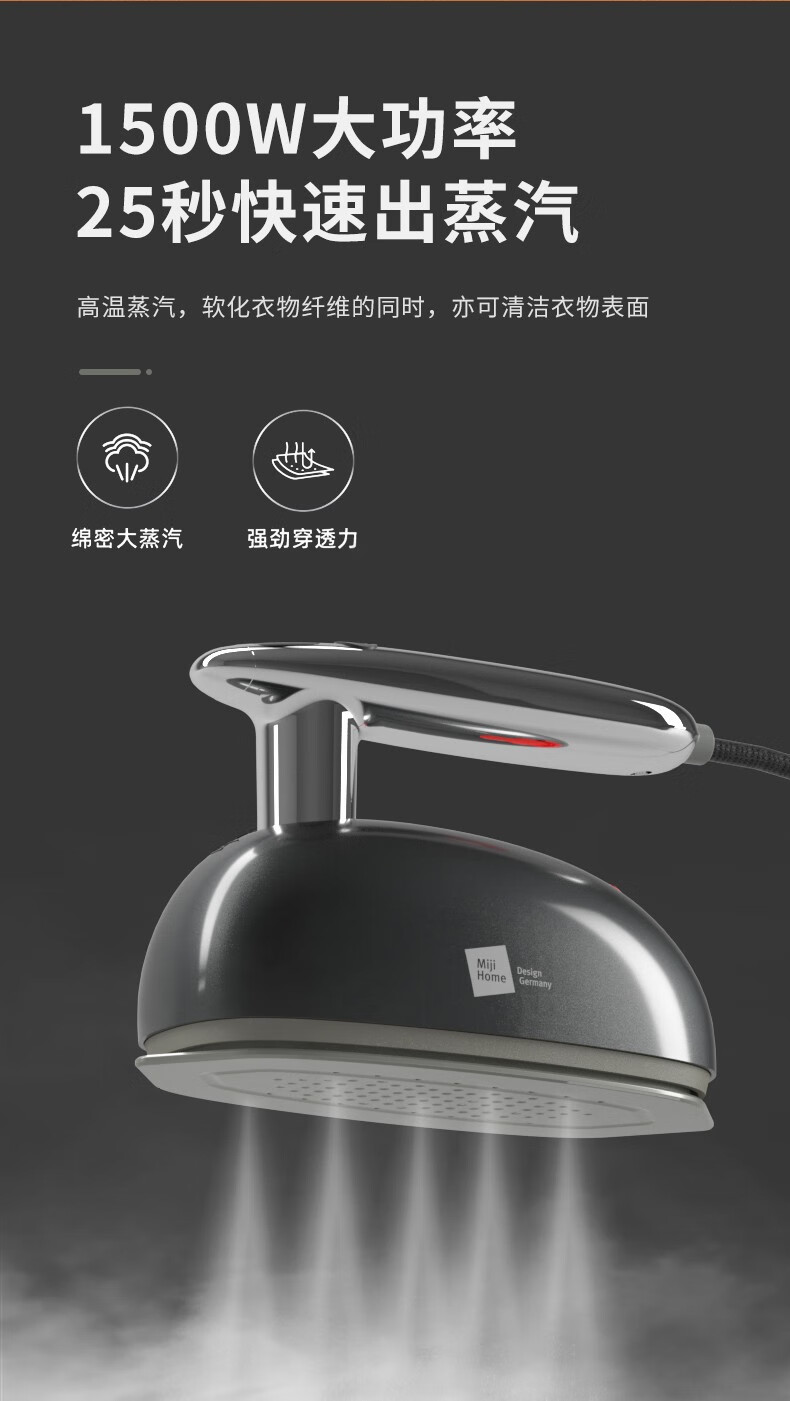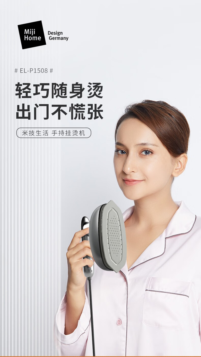 米技生活(MIJI)手持挂烫机电熨斗绵密蒸汽高温除菌 EL-P1508 时尚灰