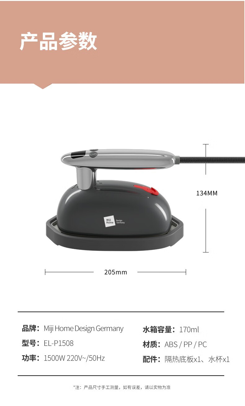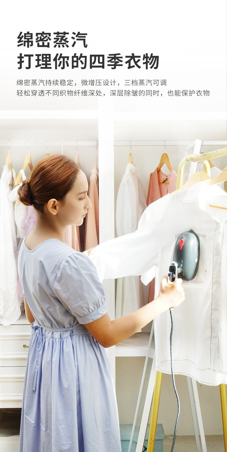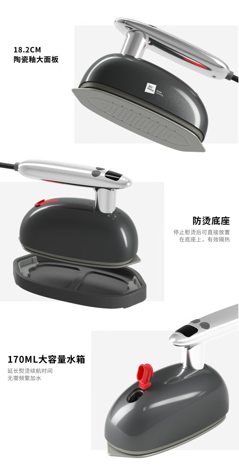 米技生活(MIJI)手持挂烫机电熨斗绵密蒸汽高温除菌 EL-P1508 时尚灰