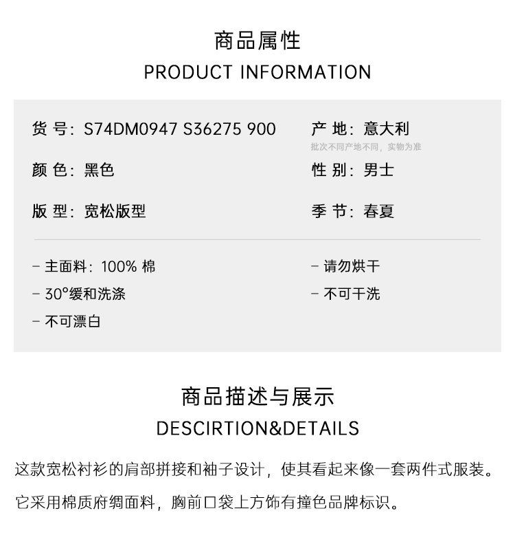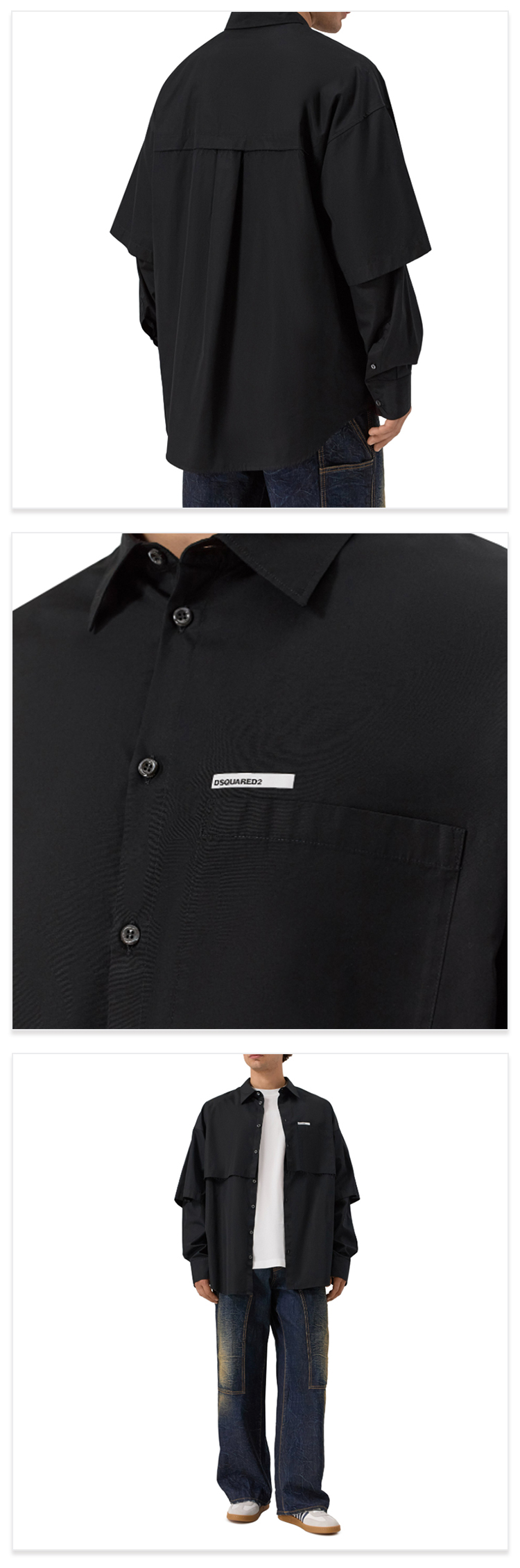 DSQUARED2 男士字母徽标印花棉质长袖衬衫 黑色 S74DM0947 S36275 900