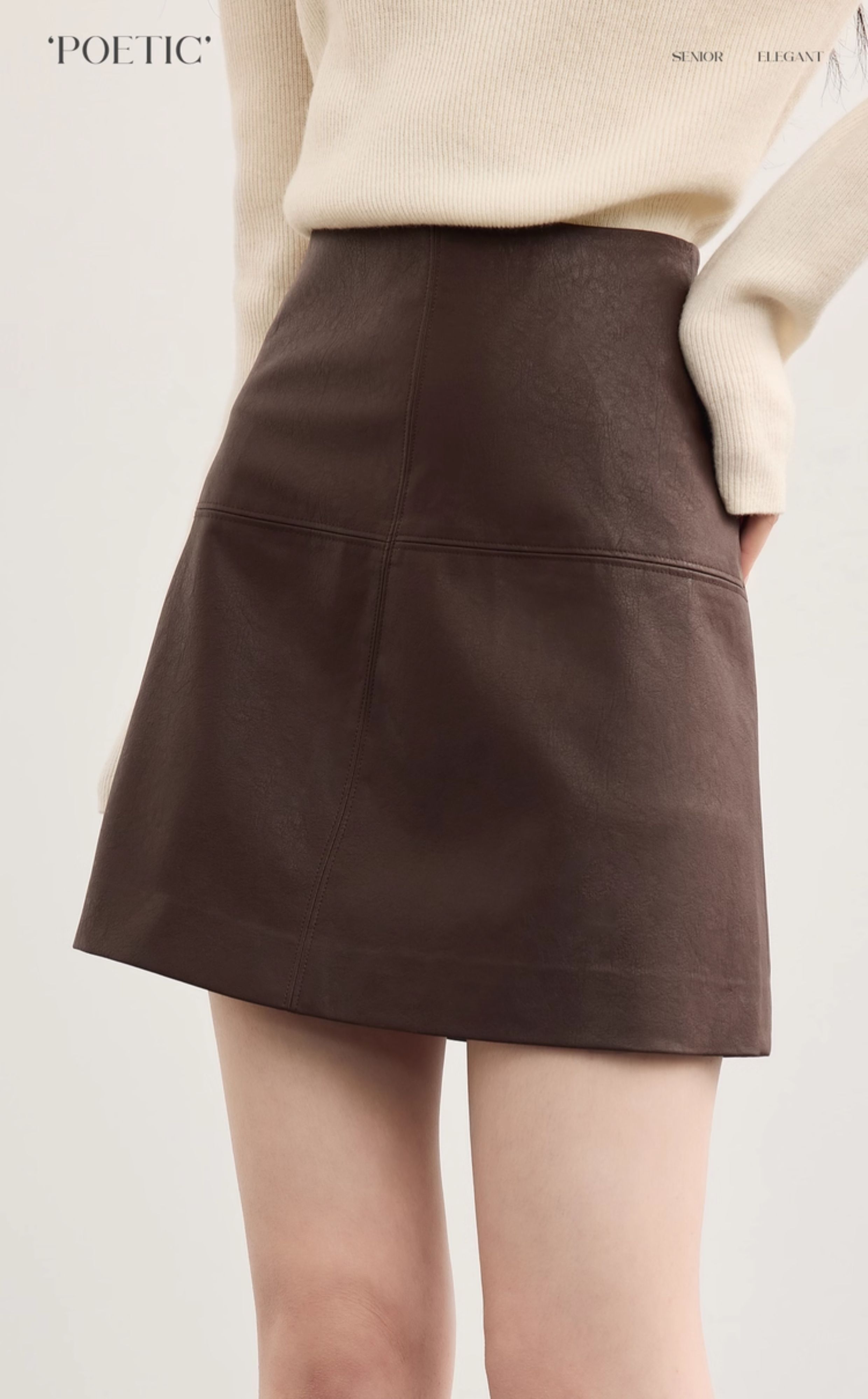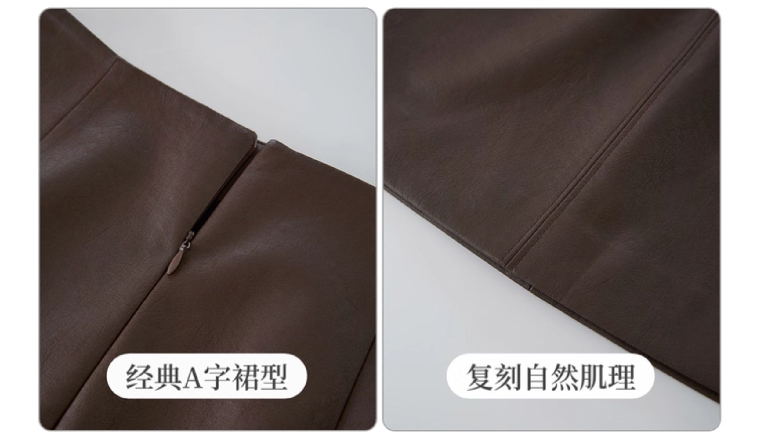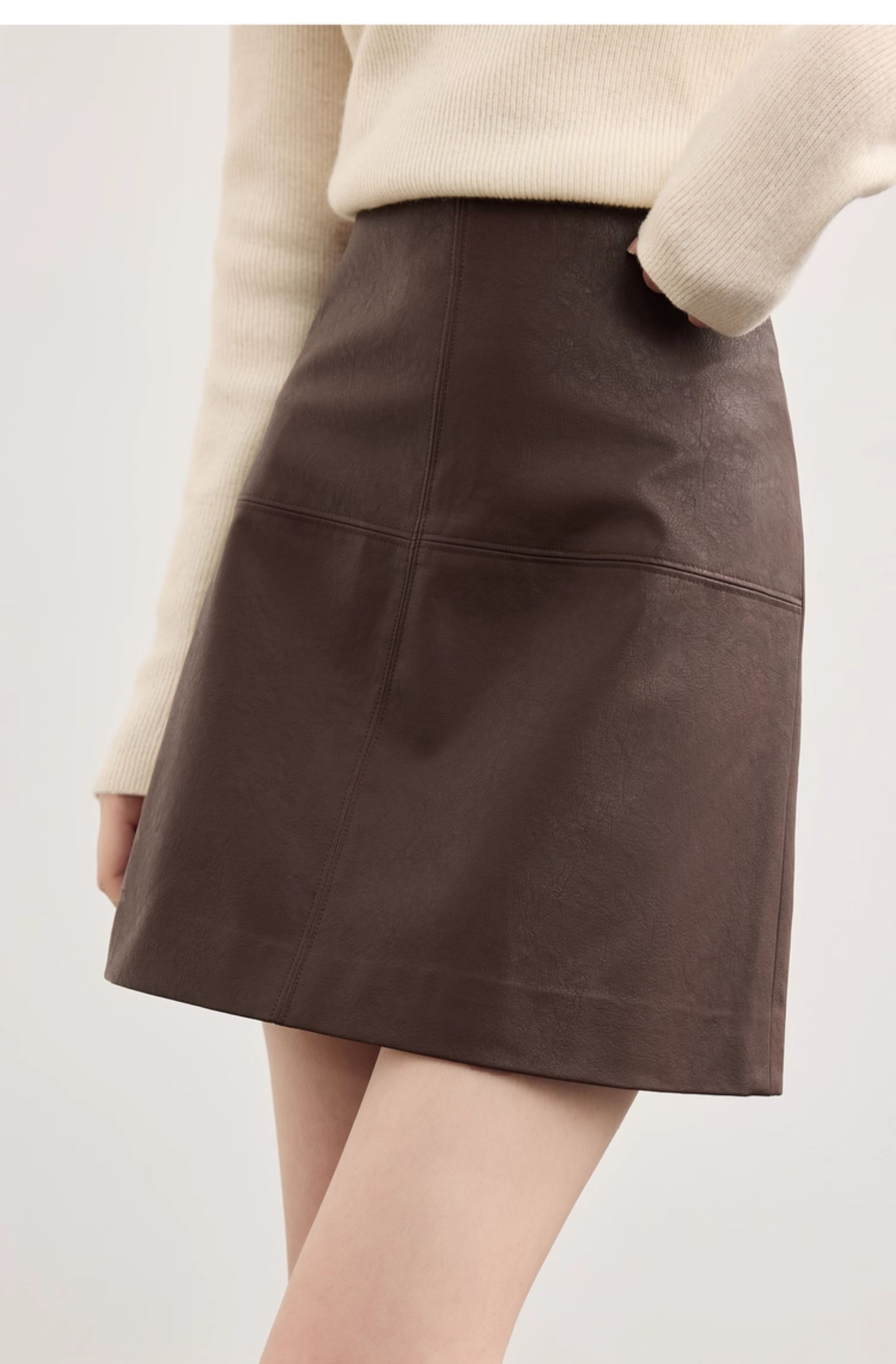 【09/26新品】熙世界「仿生纹理皮短裙」十字分割a字半身裙女秋冬pu包臀小皮裙