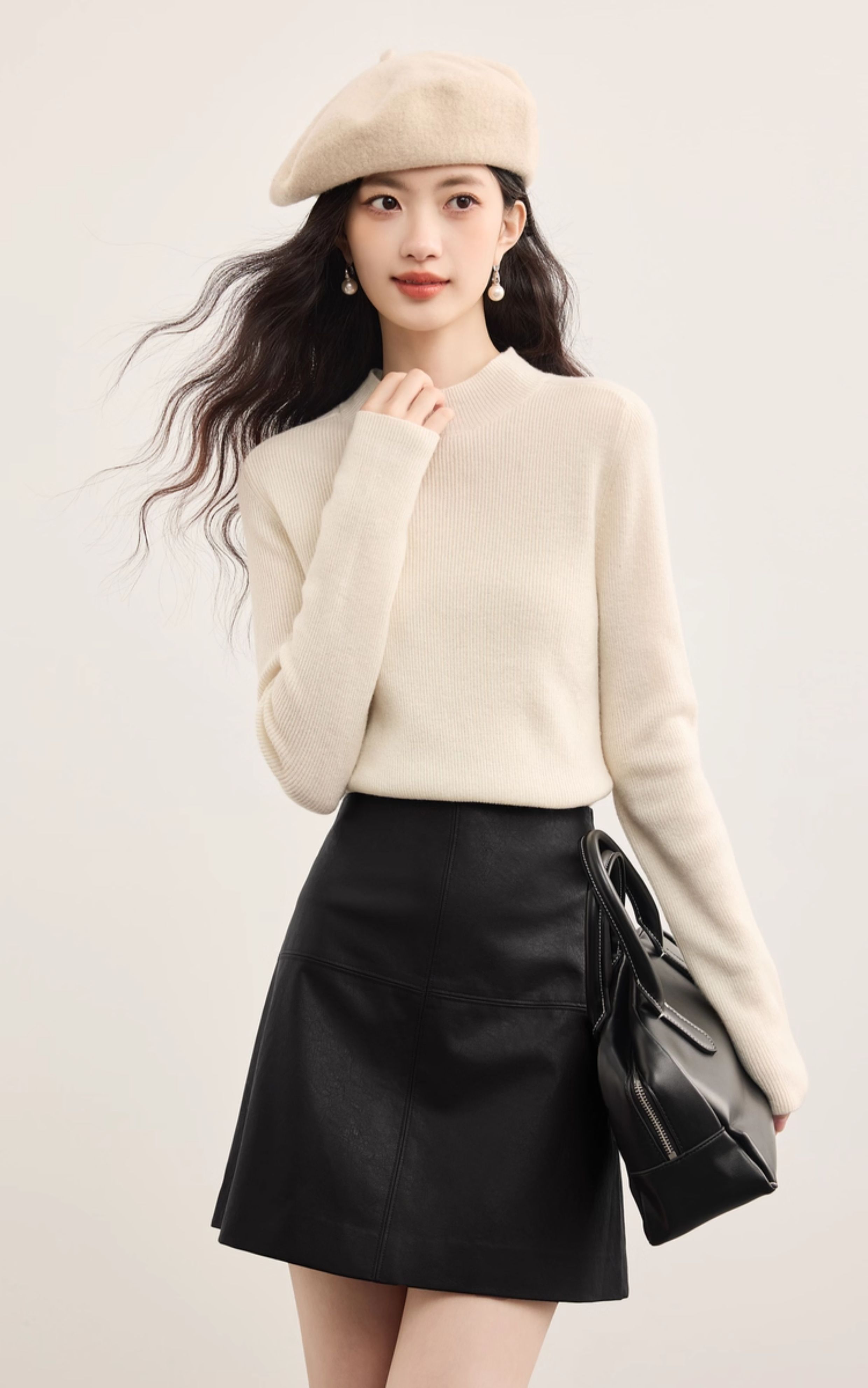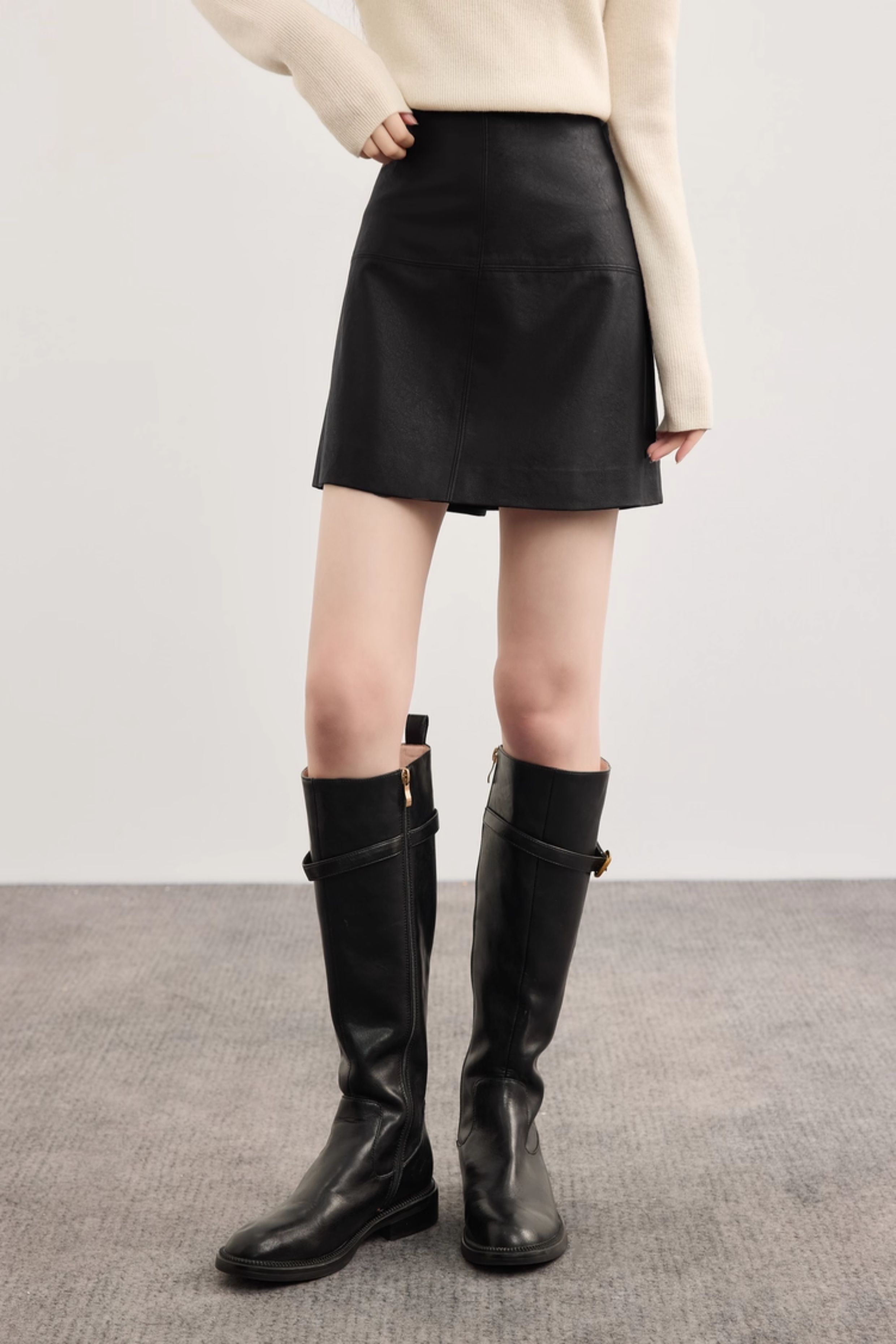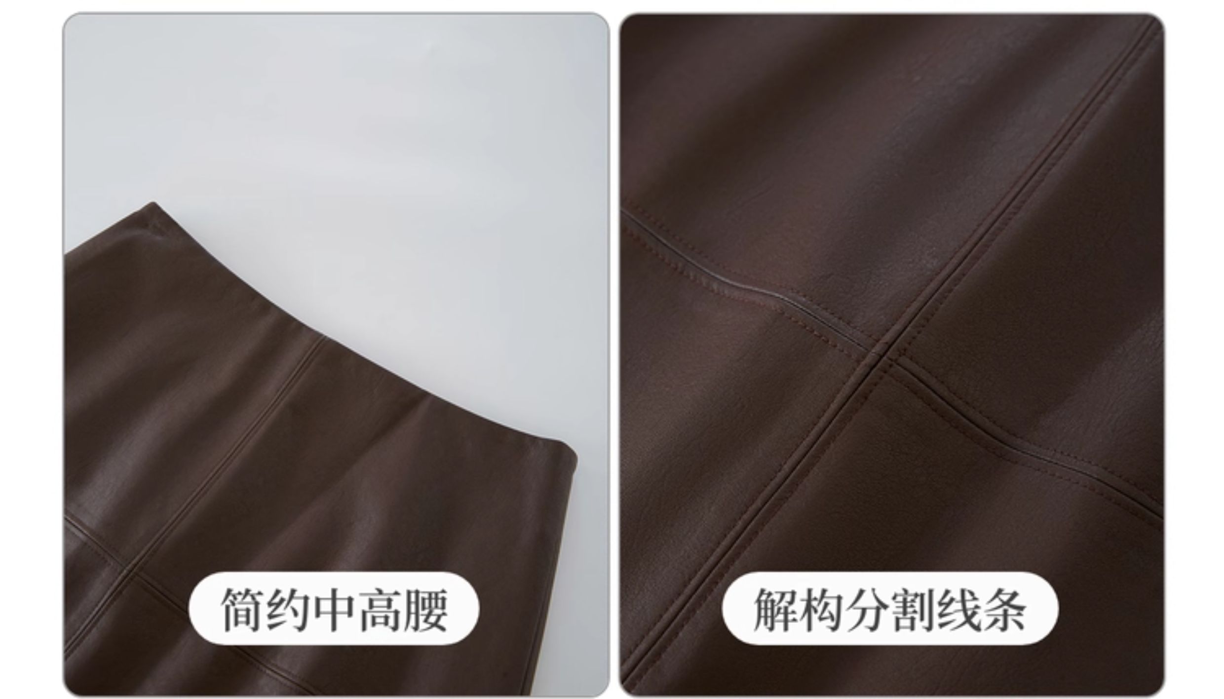 【09/26新品】熙世界「仿生纹理皮短裙」十字分割a字半身裙女秋冬pu包臀小皮裙