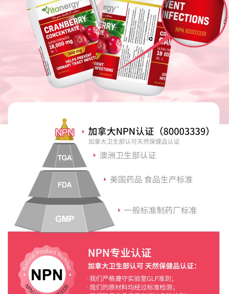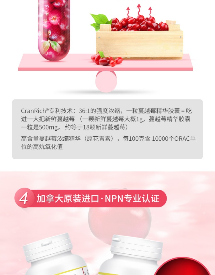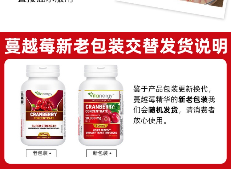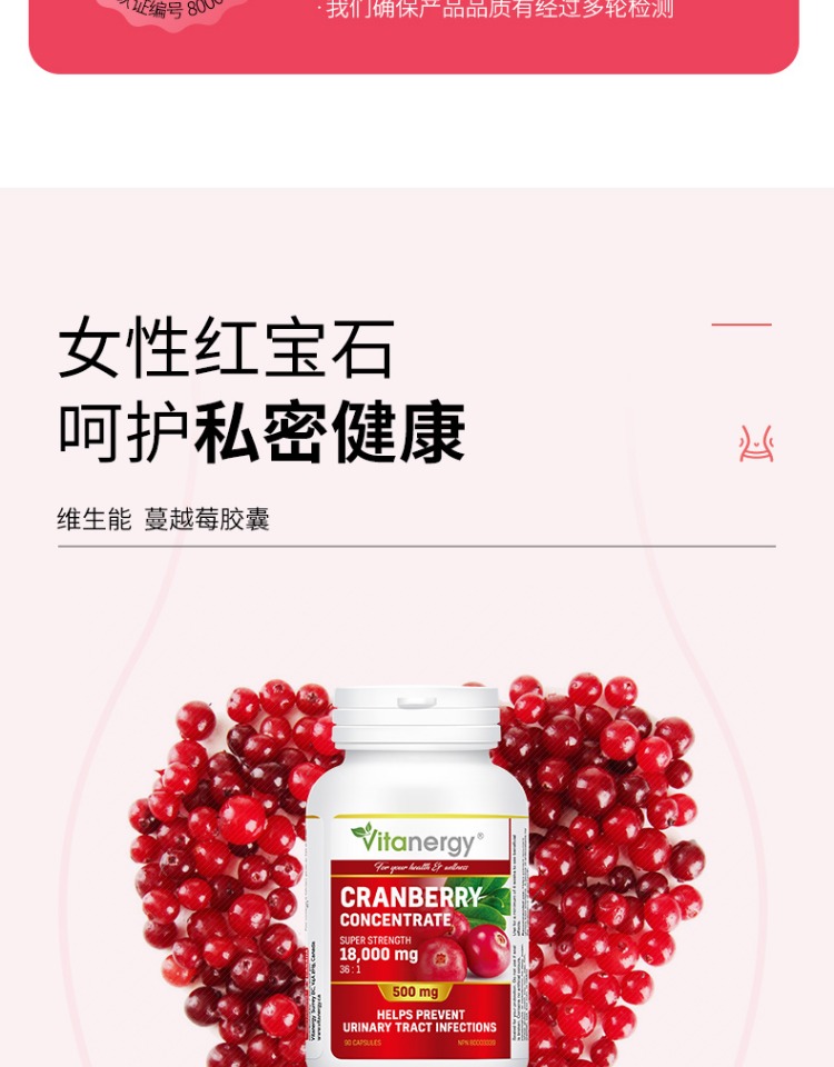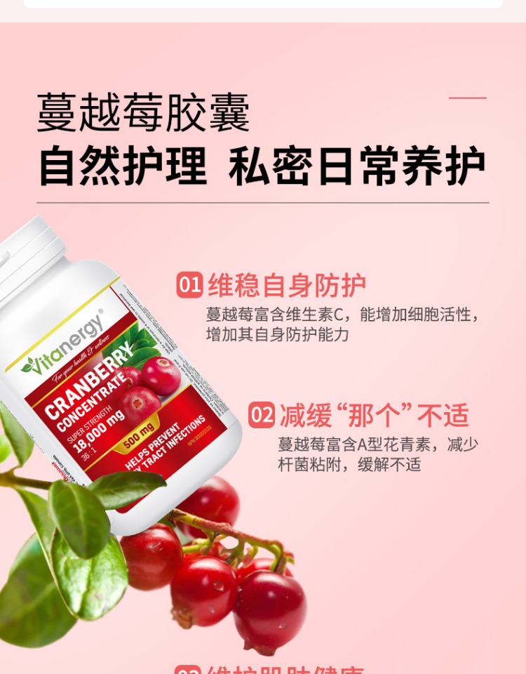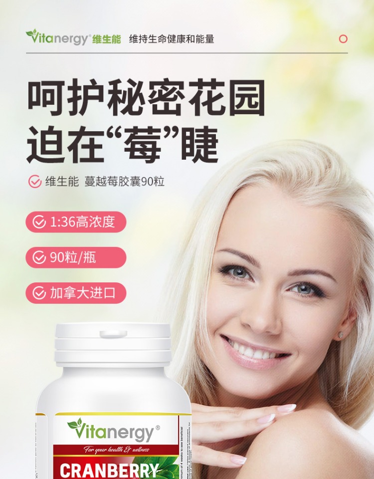 【同款拍2发3】【保税直发】加拿大维生能进口蔓越莓精华胶囊 90粒/瓶女性保养保健品【效期至2027年6月】