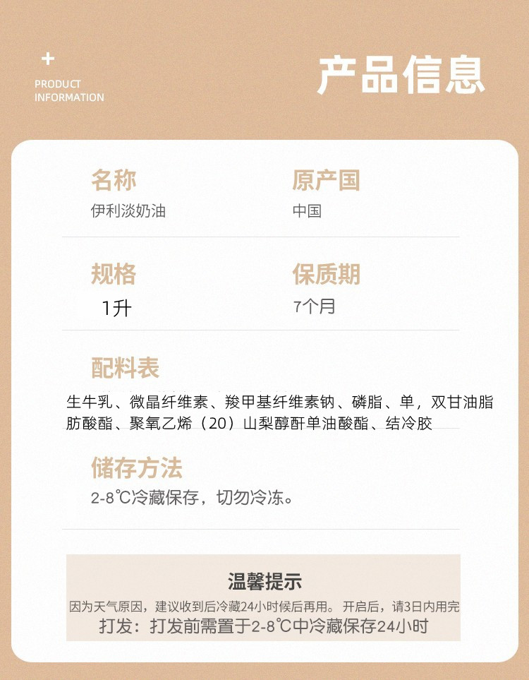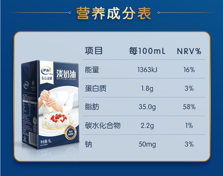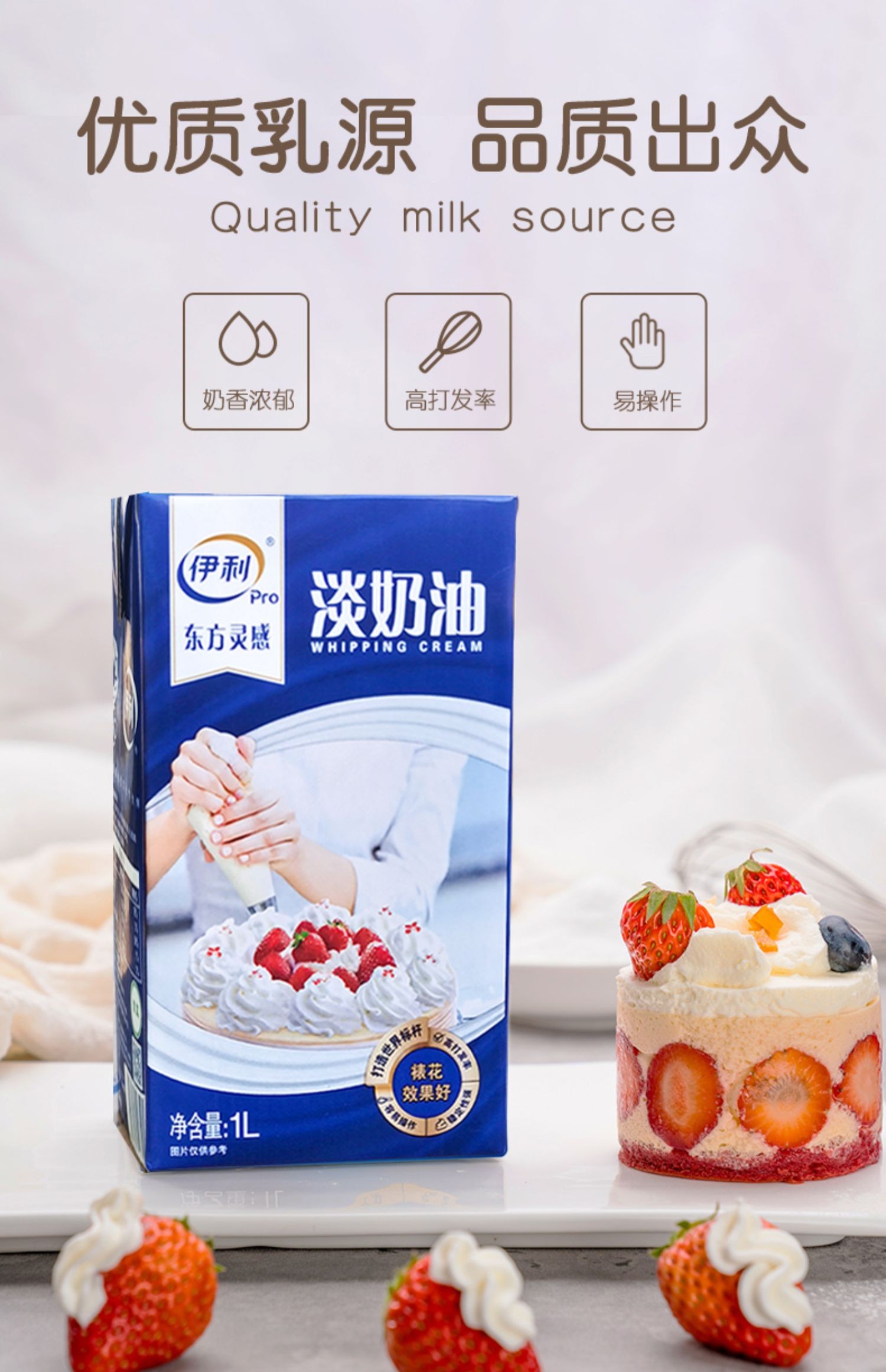 【东方灵感】伊利淡奶油 动物性稀奶油 蛋糕裱花蛋挞泡芙 两种规格 1L/1箱(6盒)