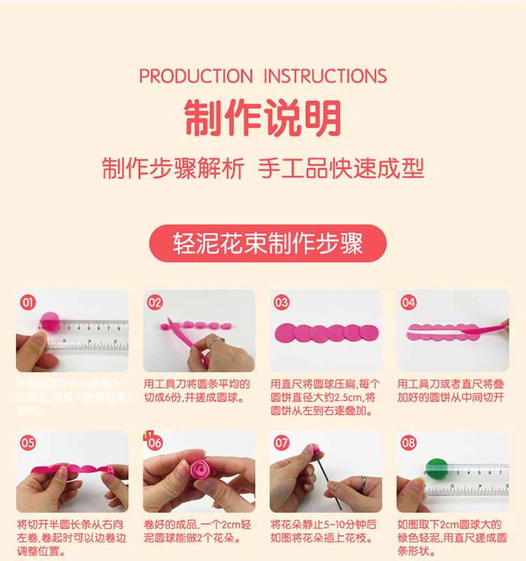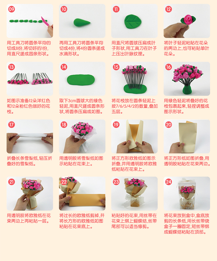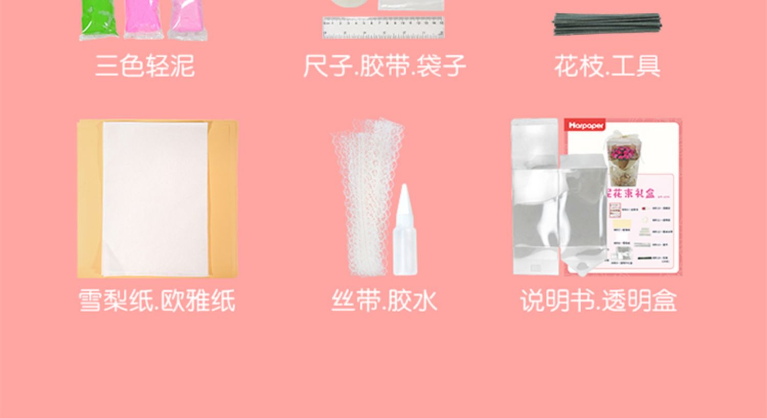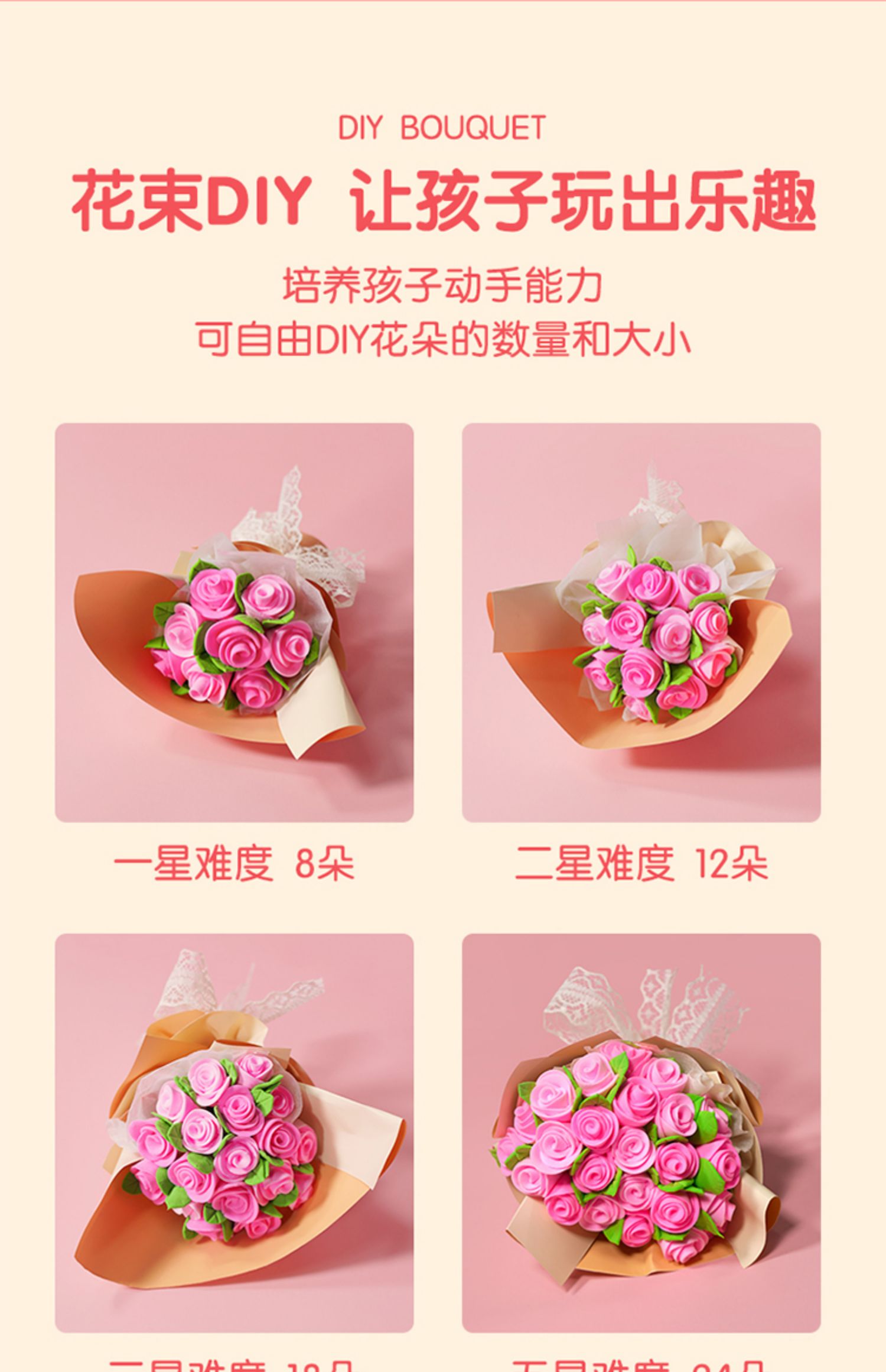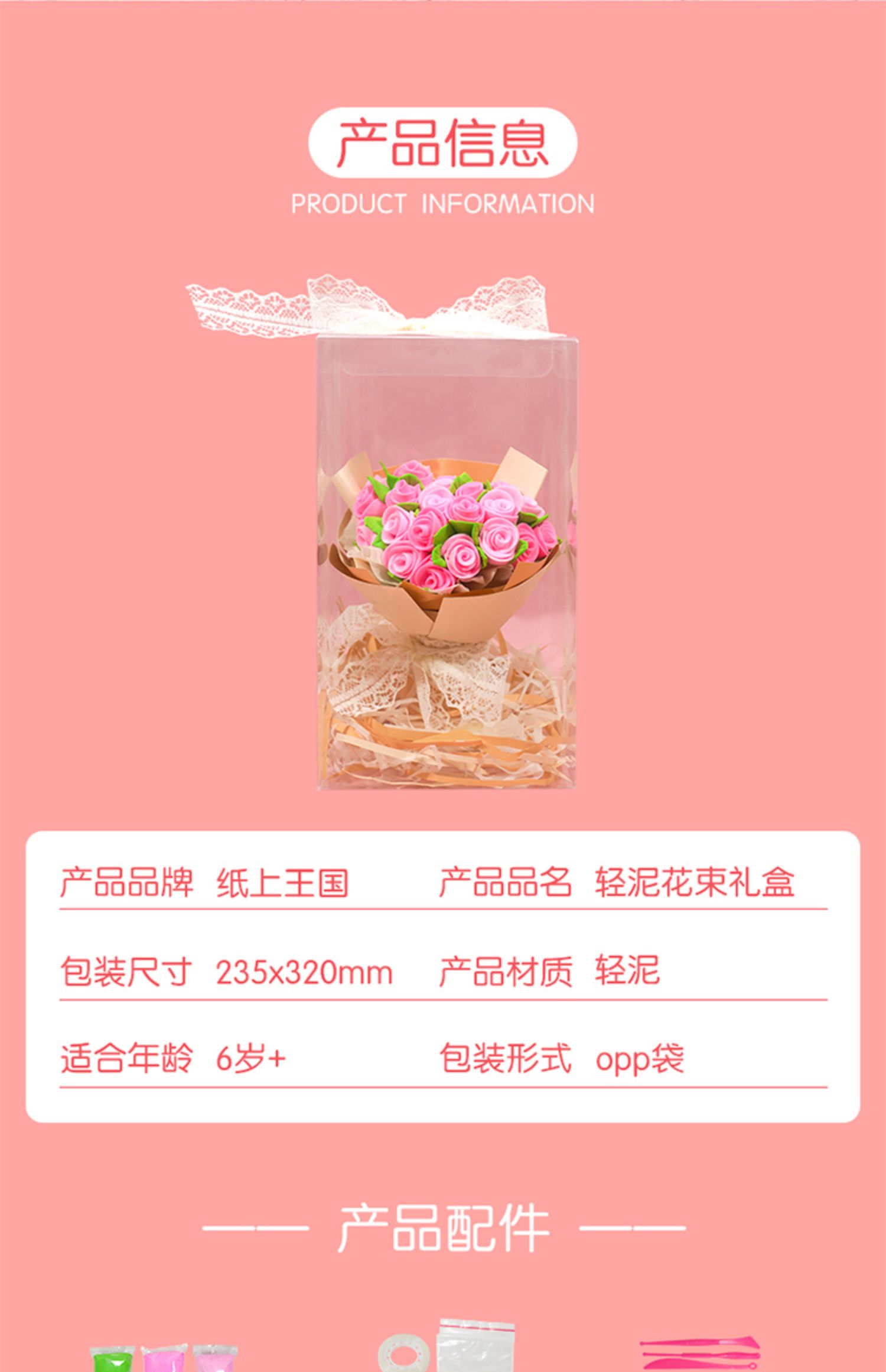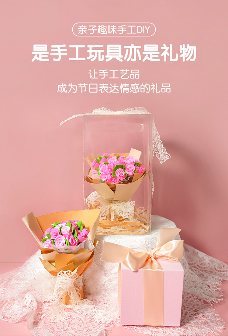 【赠多彩棒棒糖绣花球】Harpape轻泥花束礼盒,可自由DIY花朵的数量和大小,花束DIY让孩子玩出乐趣,培养孩子动手能力