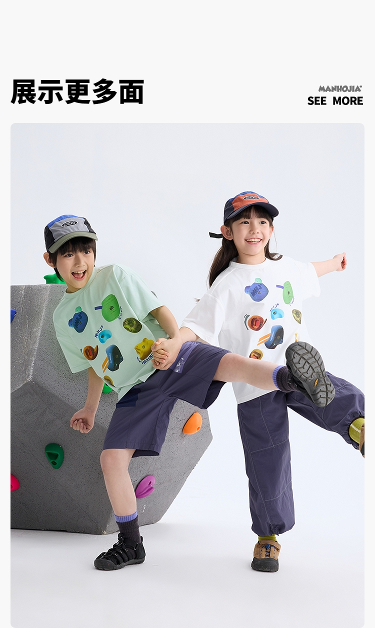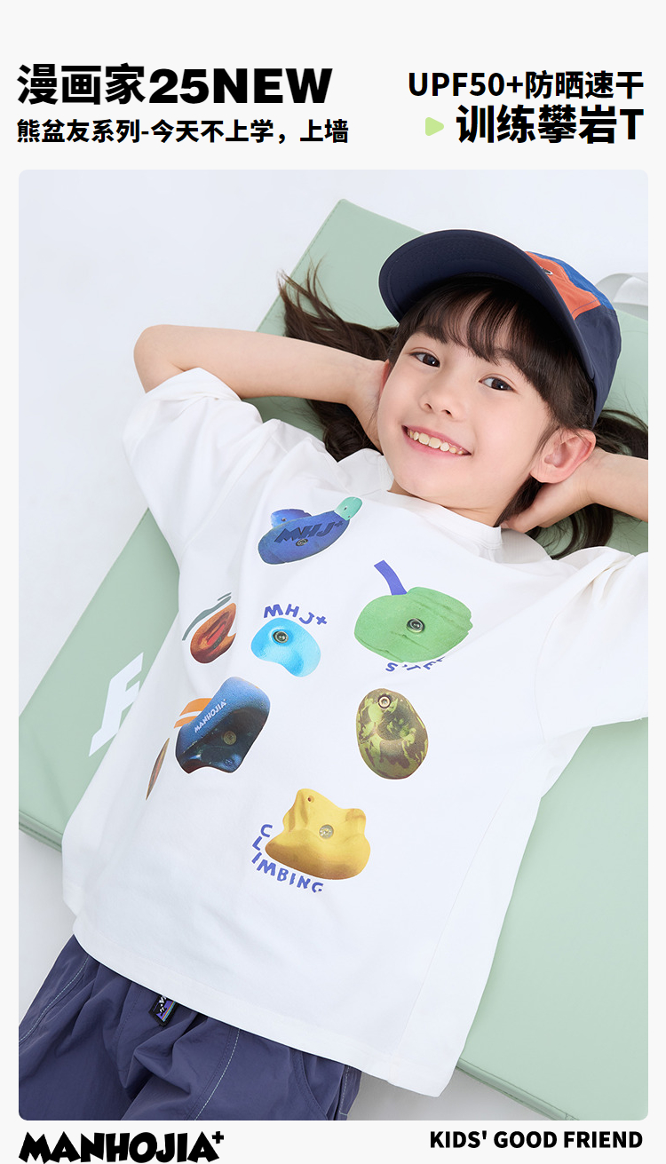漫画家【抗菌攀岩T】儿童T恤吸湿速干抗菌防晒运动训练攀岩T男