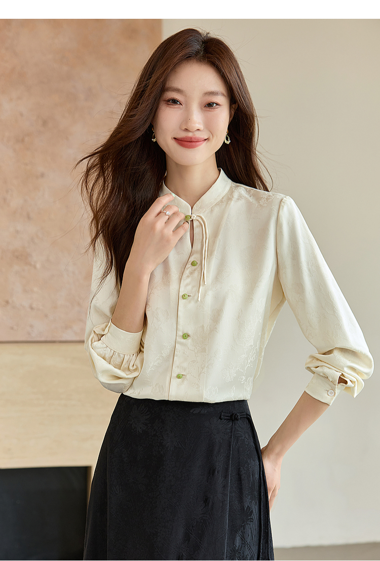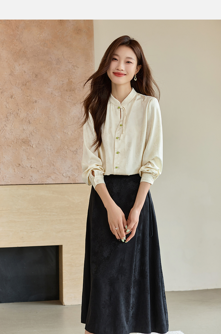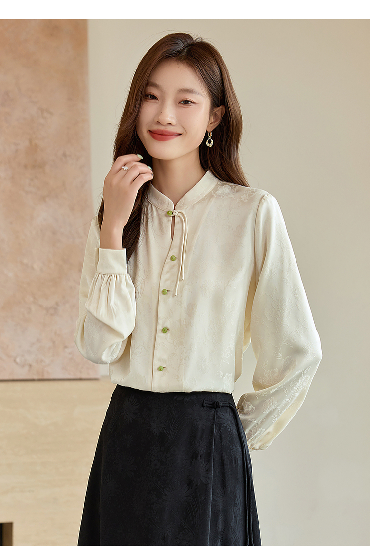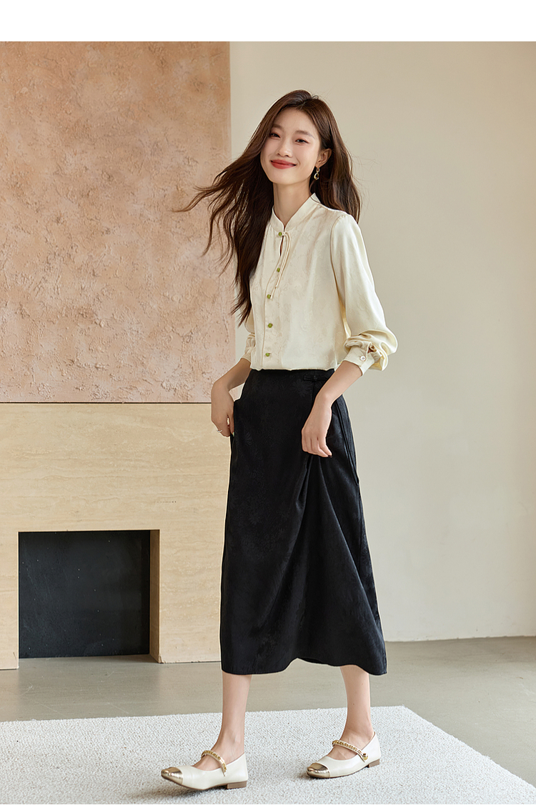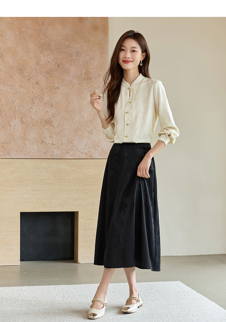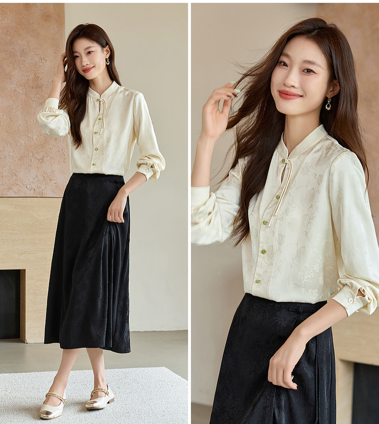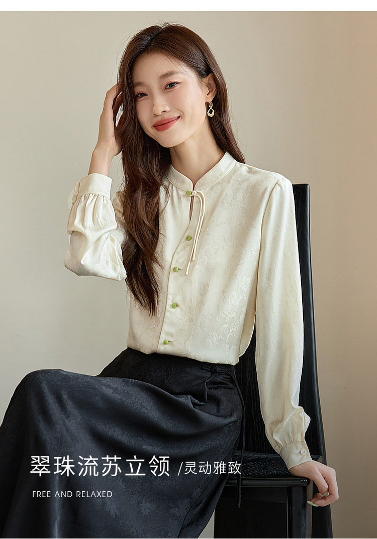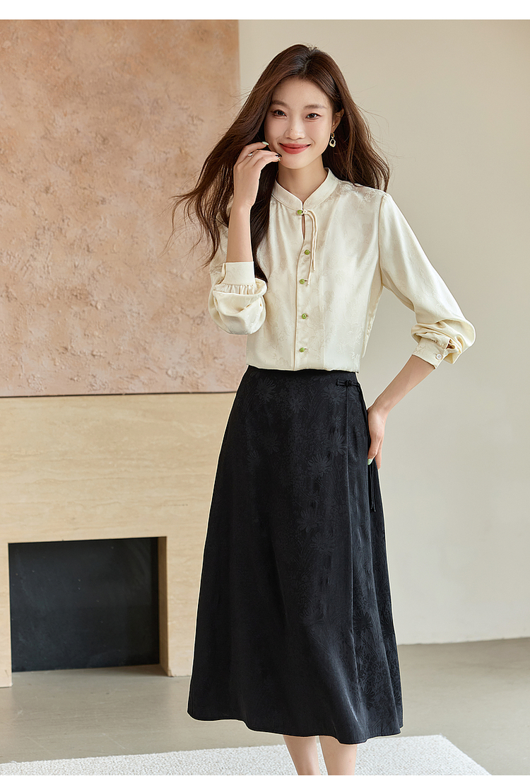 【129选3件,不退换】熙世界新中式盘扣立领衬衫秋季2025新款国风暗纹提花马面裙上衣