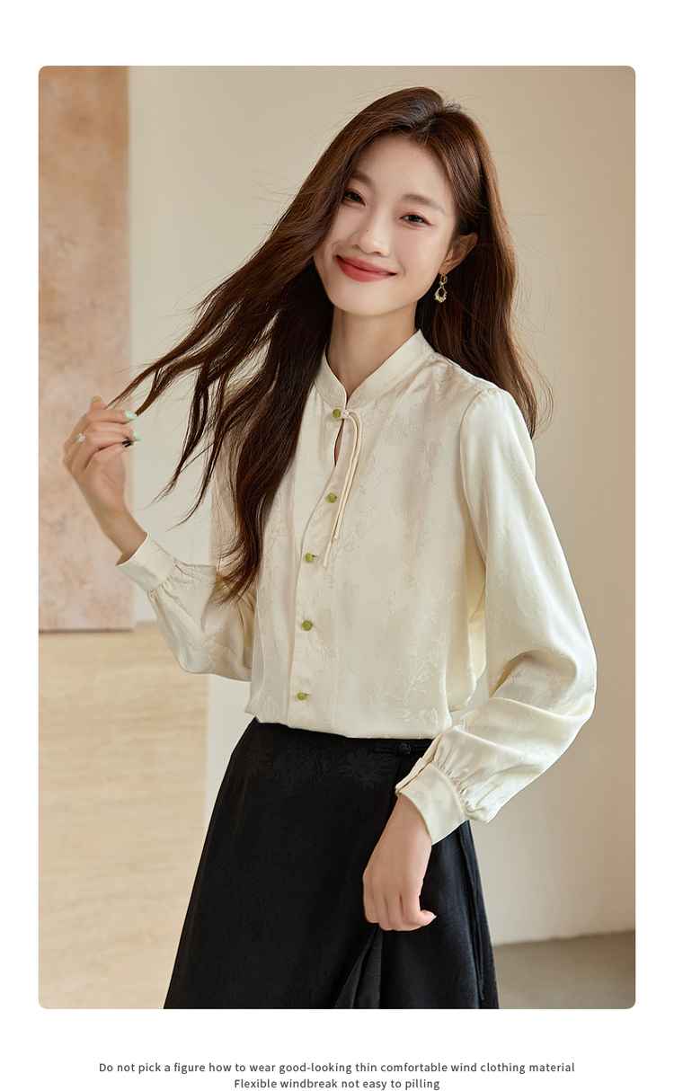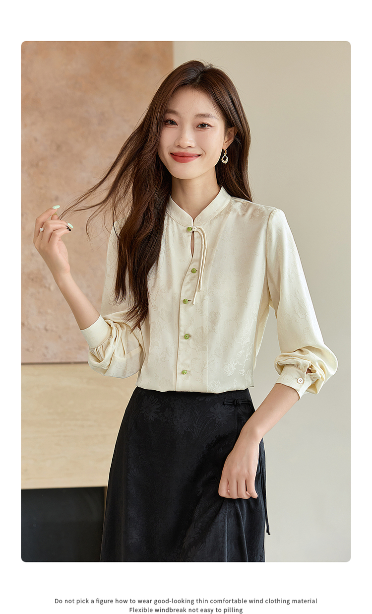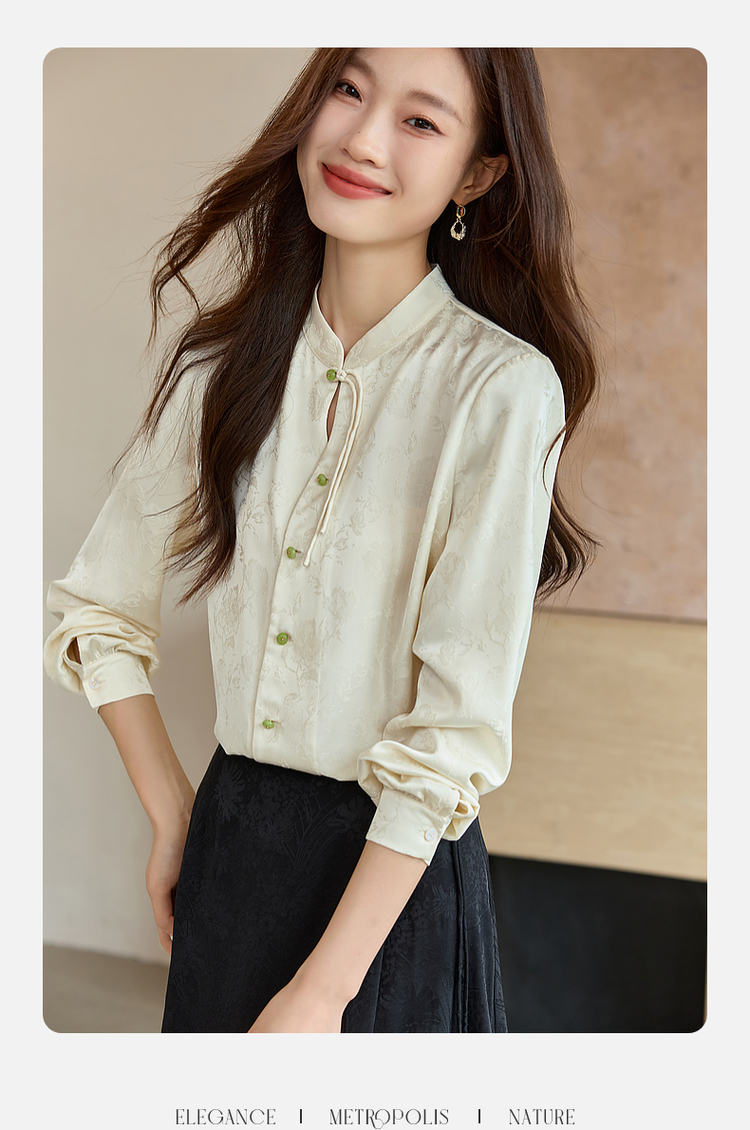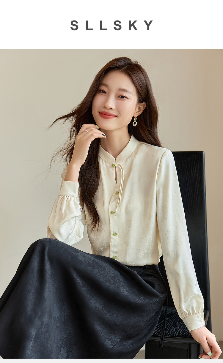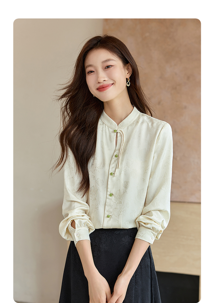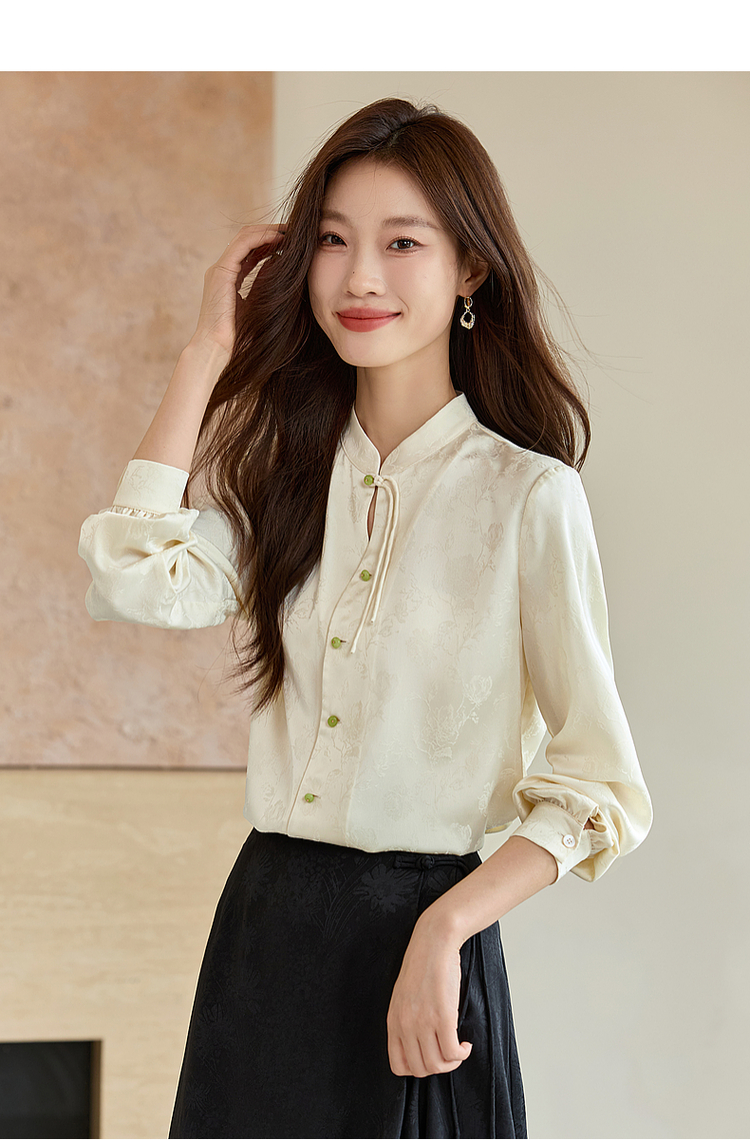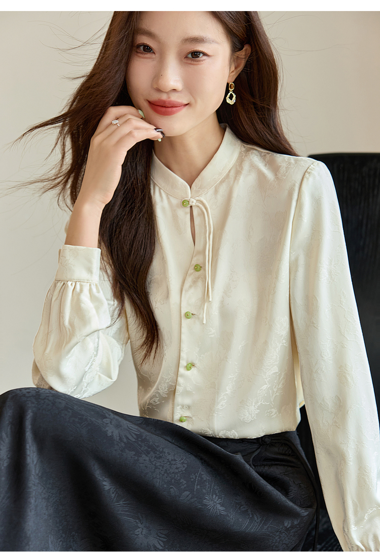 【129选3件,不退换】熙世界新中式盘扣立领衬衫秋季2025新款国风暗纹提花马面裙上衣