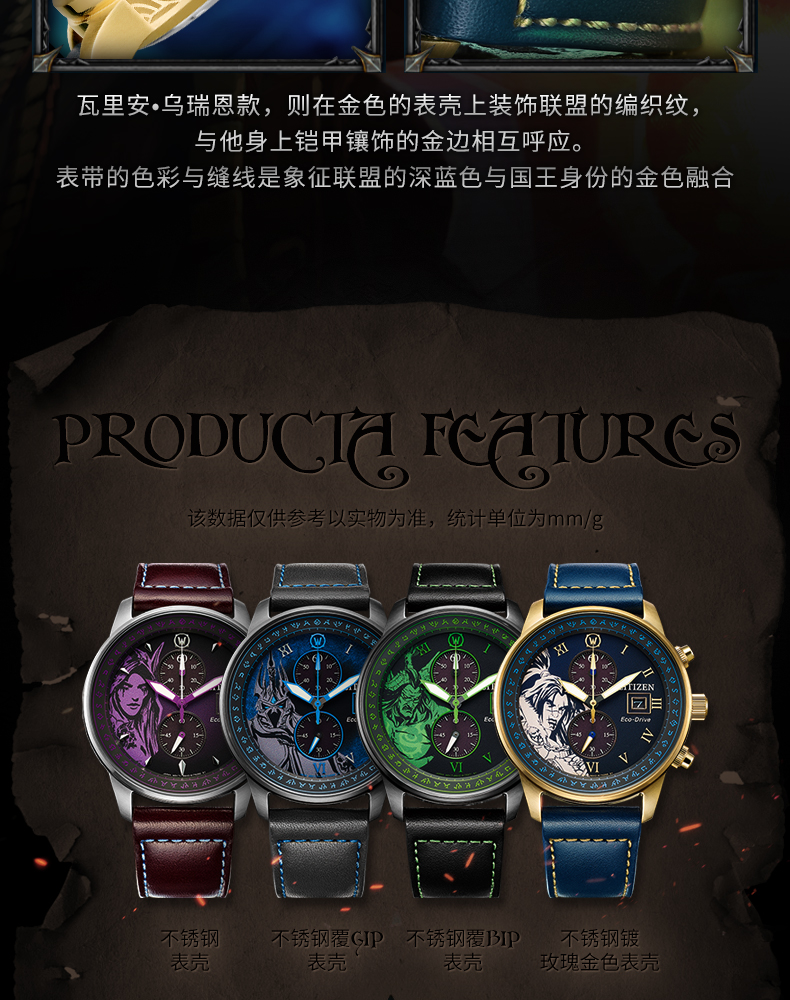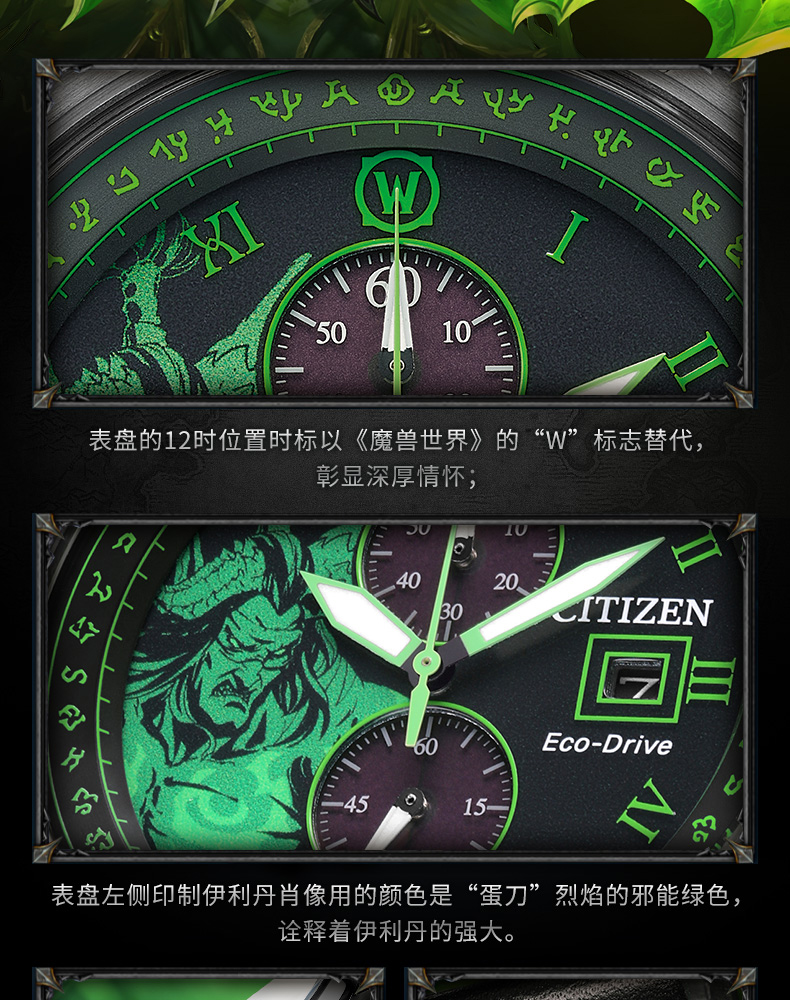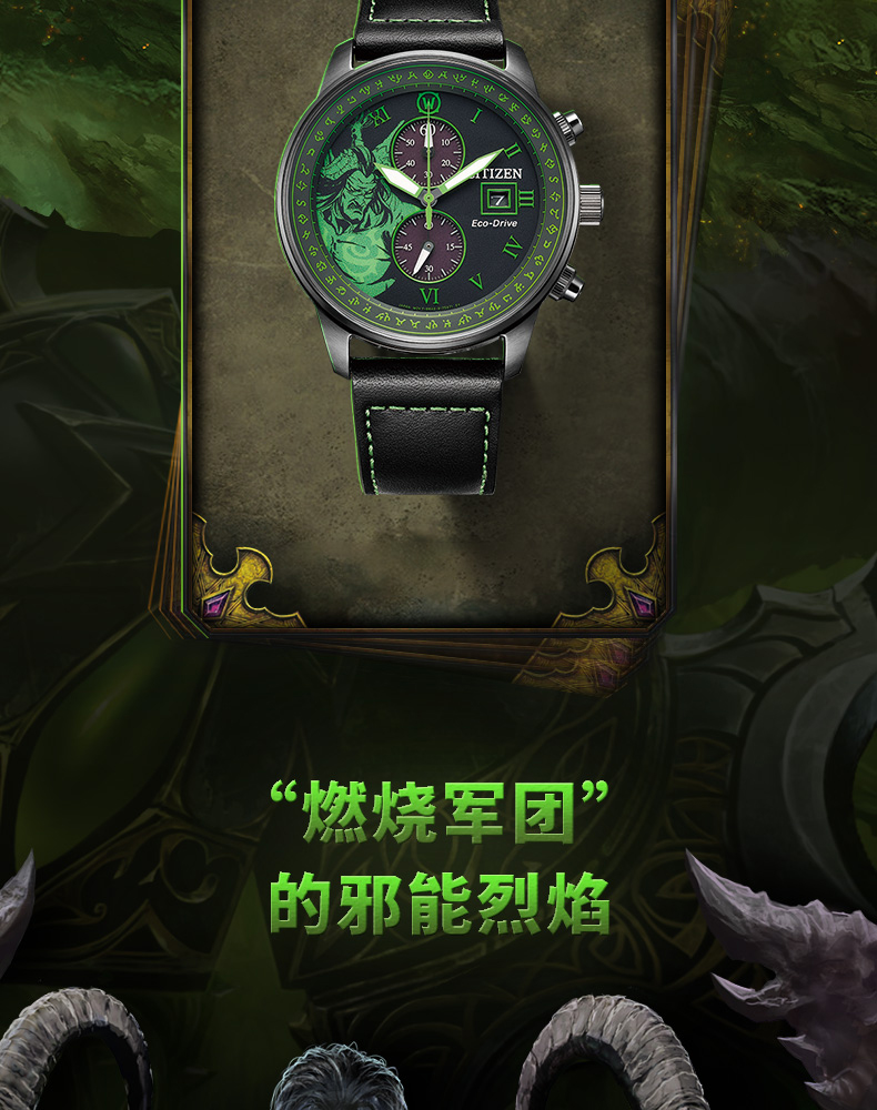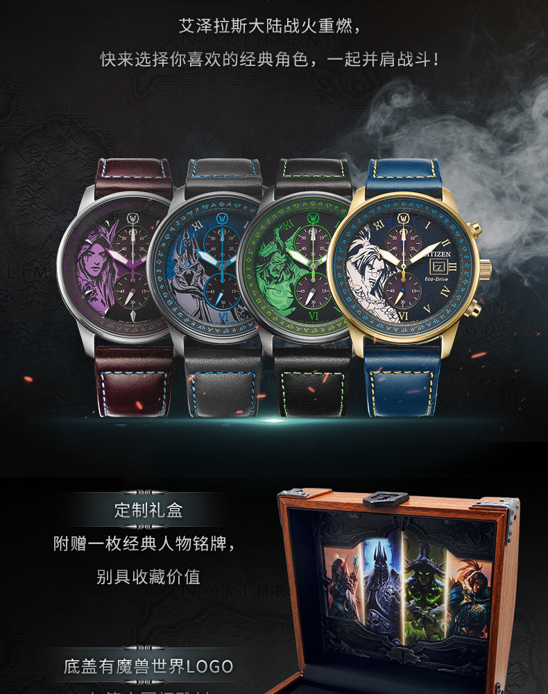 西铁城魔兽世界联名限量款光动能手表男女CA7075-05E