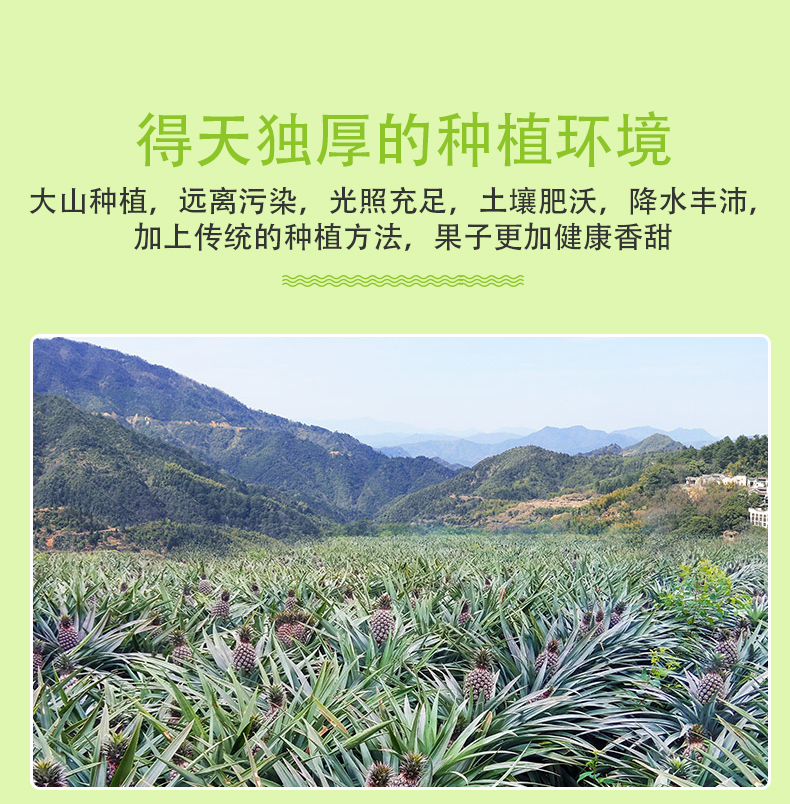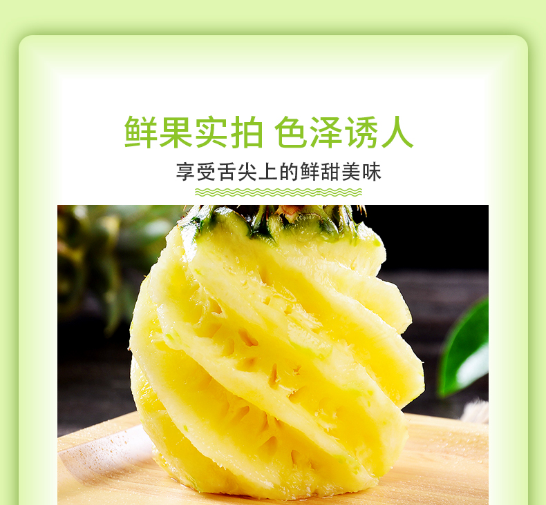 温馨提示:菠萝到货是青色表皮,需要把苹果放入箱中进行催熟,直到表皮全黄才能切开吃,生切不售后,介意到货青色慎拍