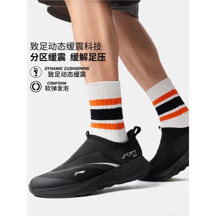李宁男子2025秋季防滑透气一脚蹬休闲鞋AGLV005-1