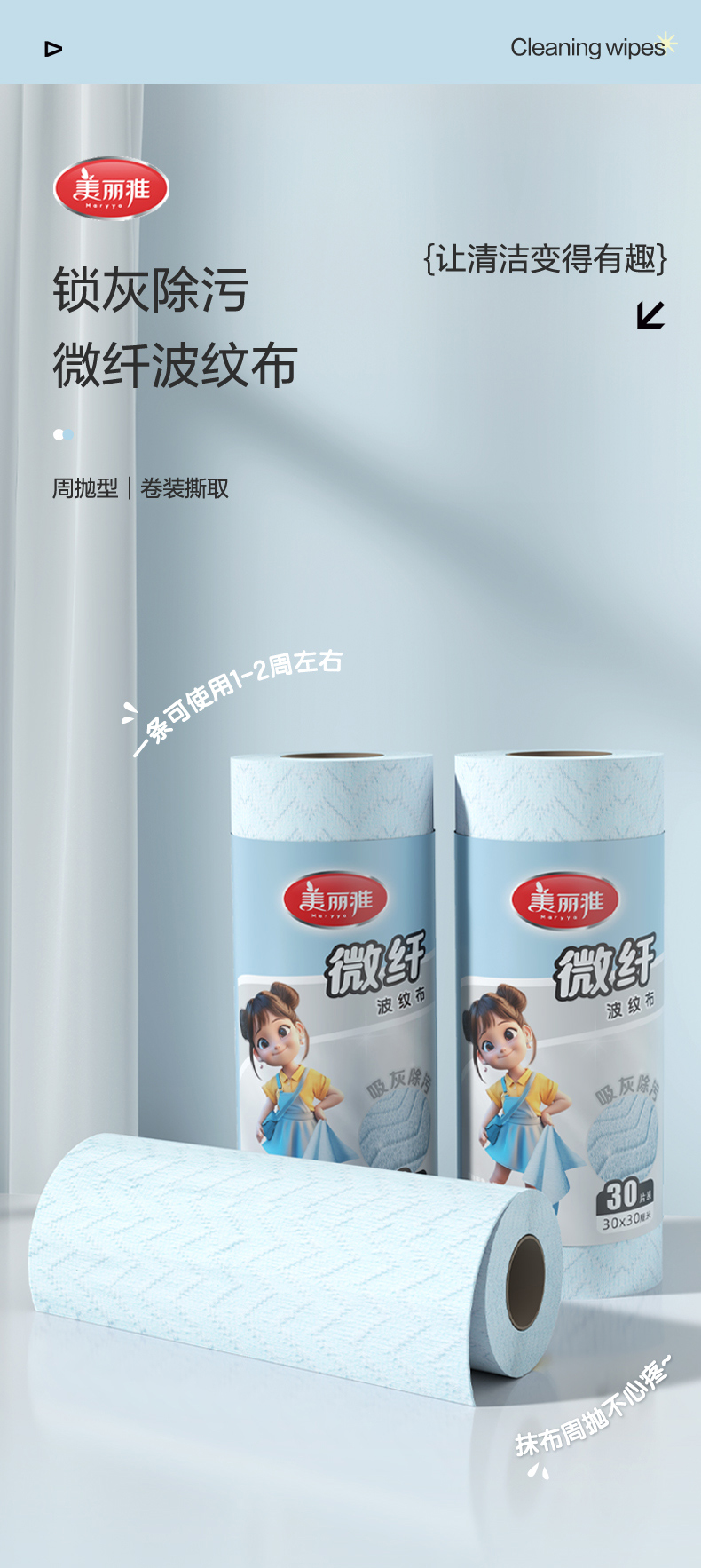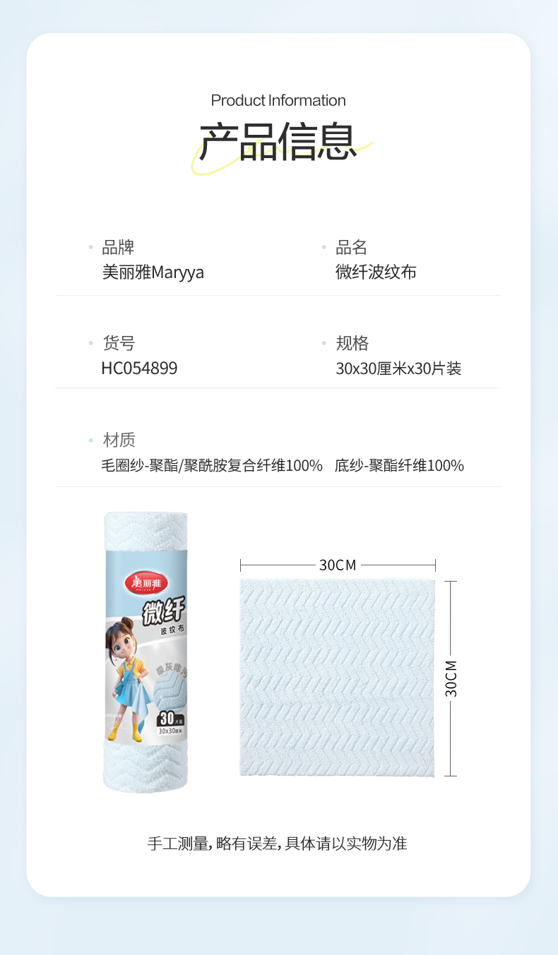 美丽雅去油吸水不掉毛抹布擦桌清洁巾厨房毛巾微纤维波纹布30片入 30*30cm