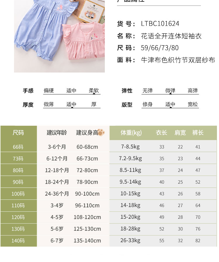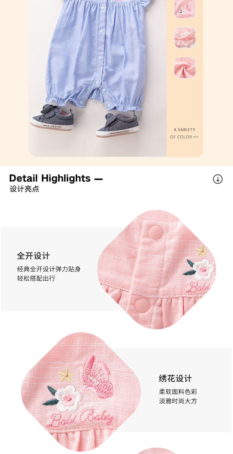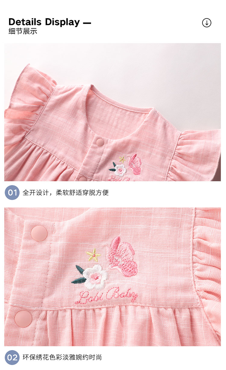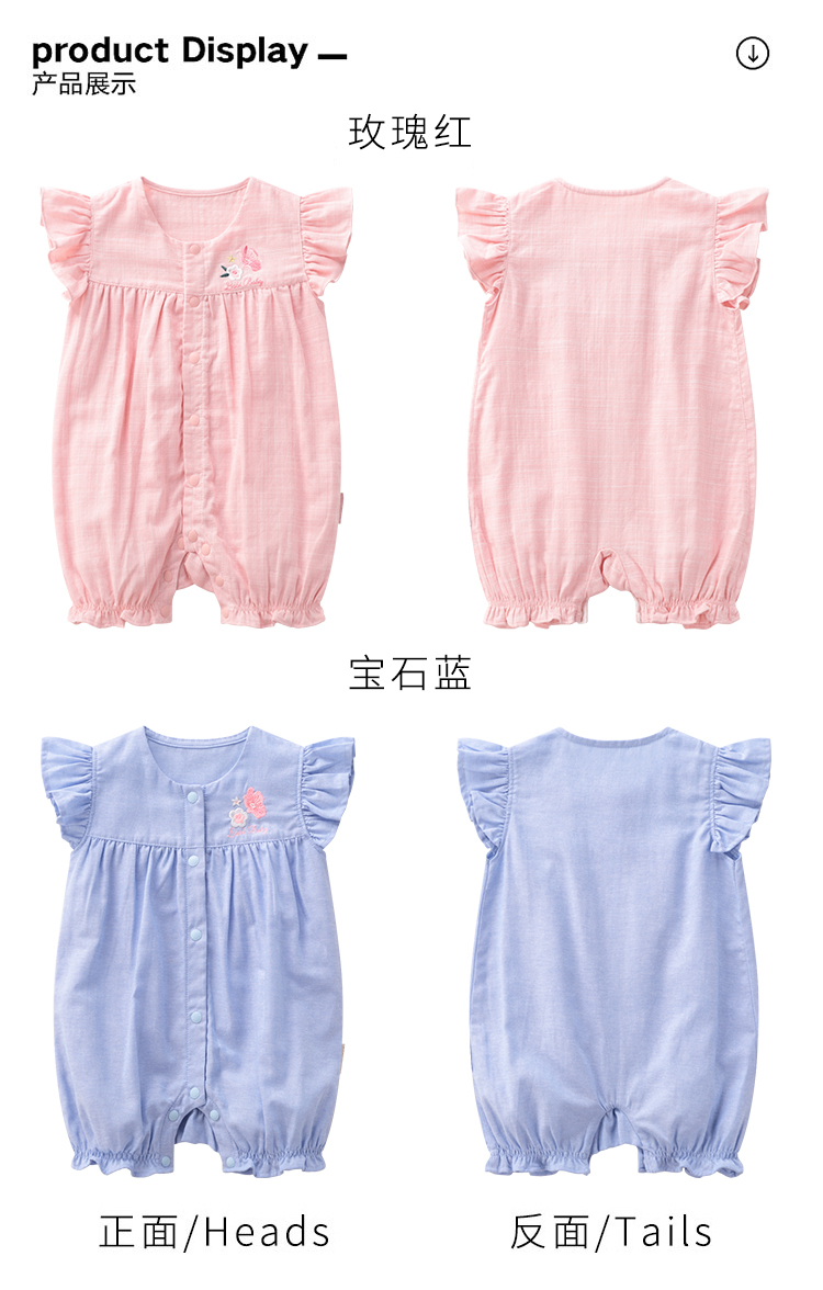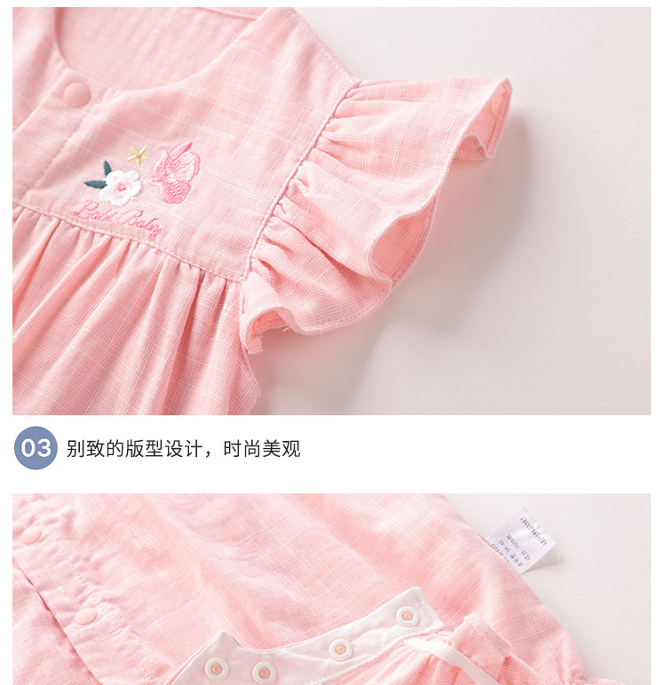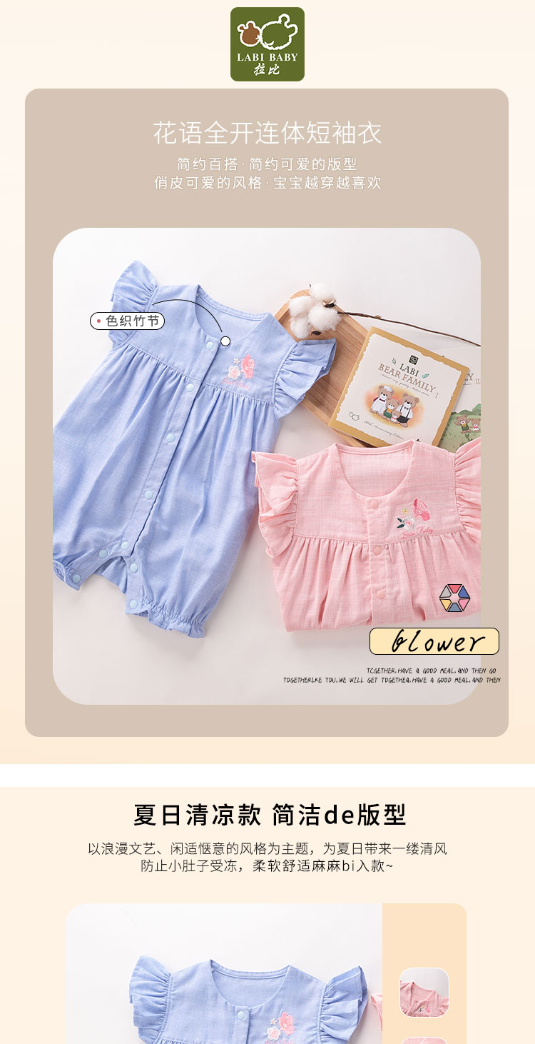 拉比-童衣类(夏)D0花语全开连体短袖衣玫瑰红