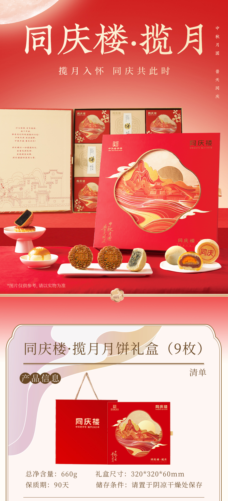 【售罄勿拍】同庆楼 揽月月饼礼盒660g 中秋月饼礼盒装 九饼九味 送礼送长辈 匠心制作 72小时发货