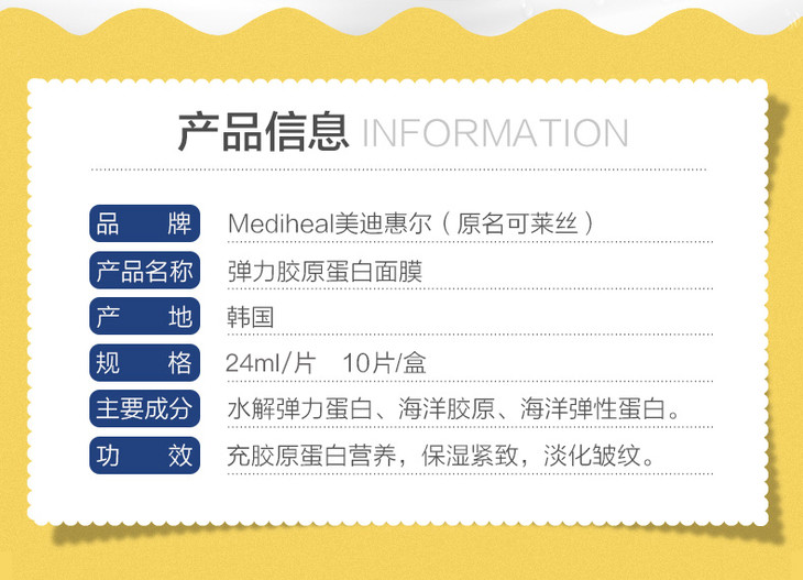 【海关保税直发】韩国美迪惠尔-胶原蛋白面膜/黄色胶原蛋白/10片-会员5折